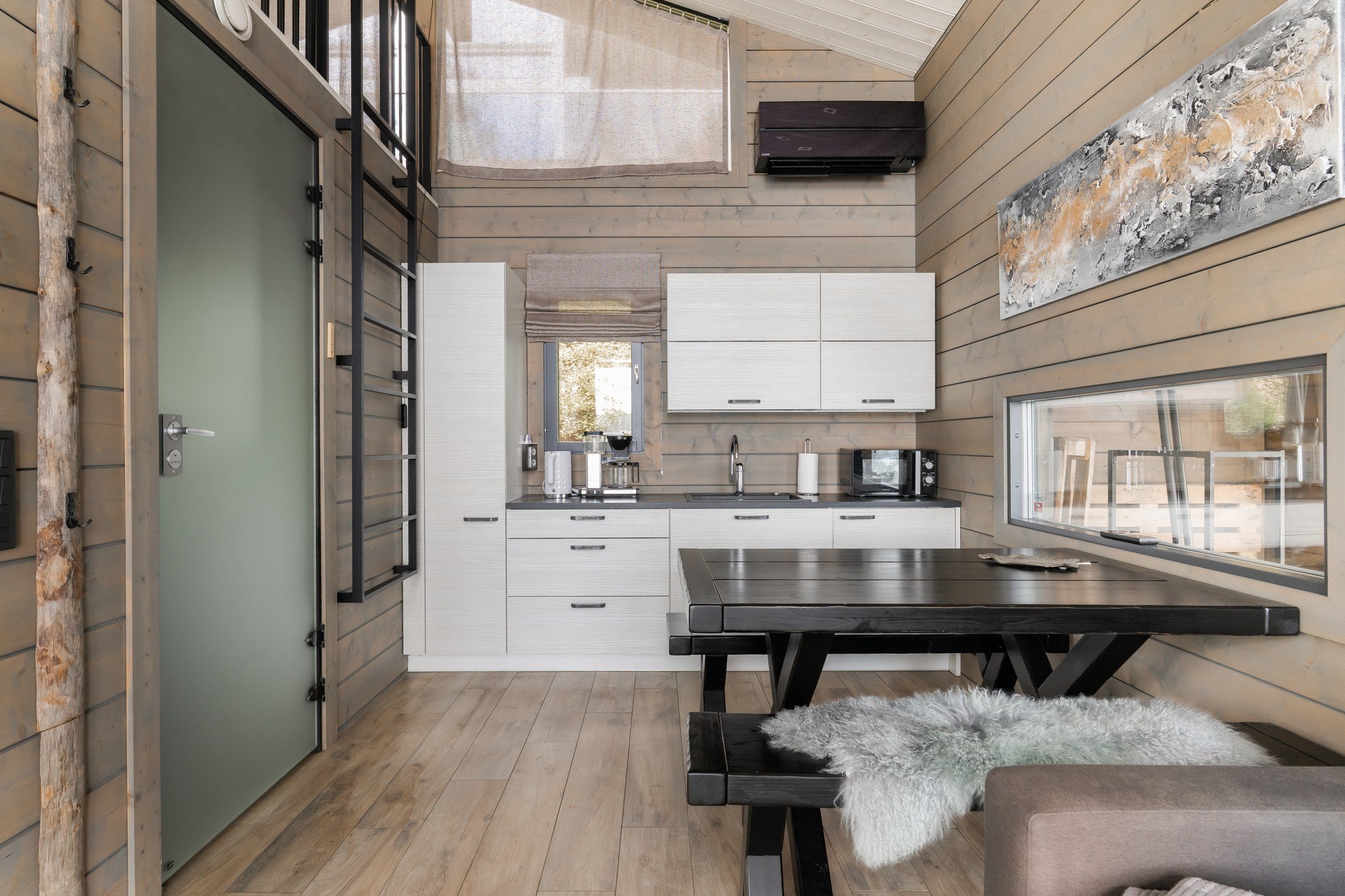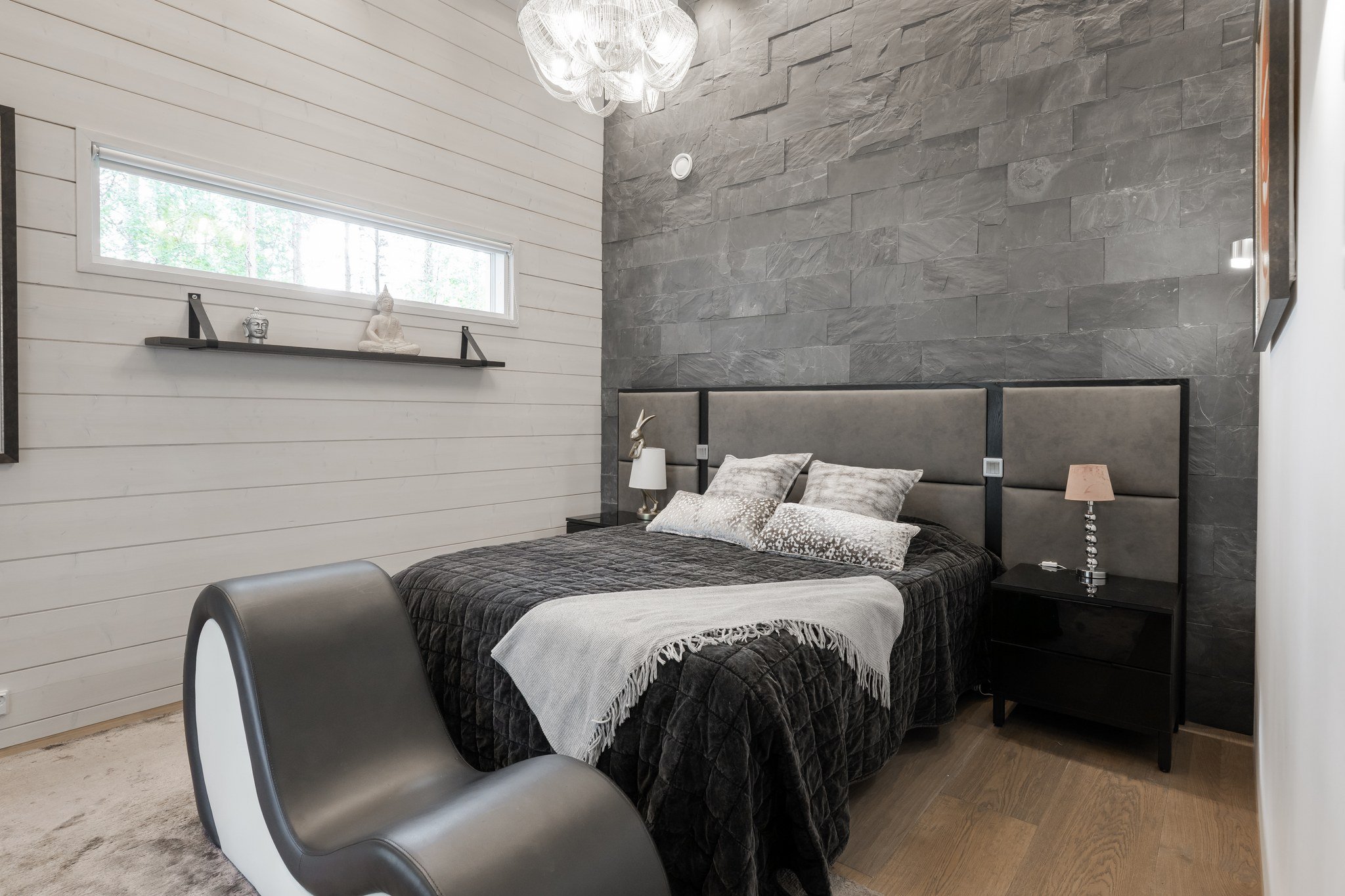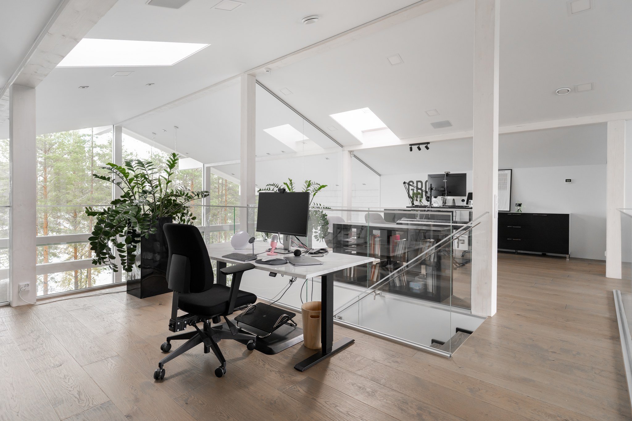 Neljän makuuhuoneen lisäksi talossa on tilava kaksiosainen työtila, joka sopii erinomaisesti etätyöskentelyyn. Alakerran viihdeosaston ytimenä toimii lounge ja baaritiski, josta on suora pääsy vapaa-ajan tiloihin. Spa-osastotolla on amme kattosuihkulla ja sauna, jotka tarjoavat rentoutumishetkiä kiireisen päivän päätteeksi.