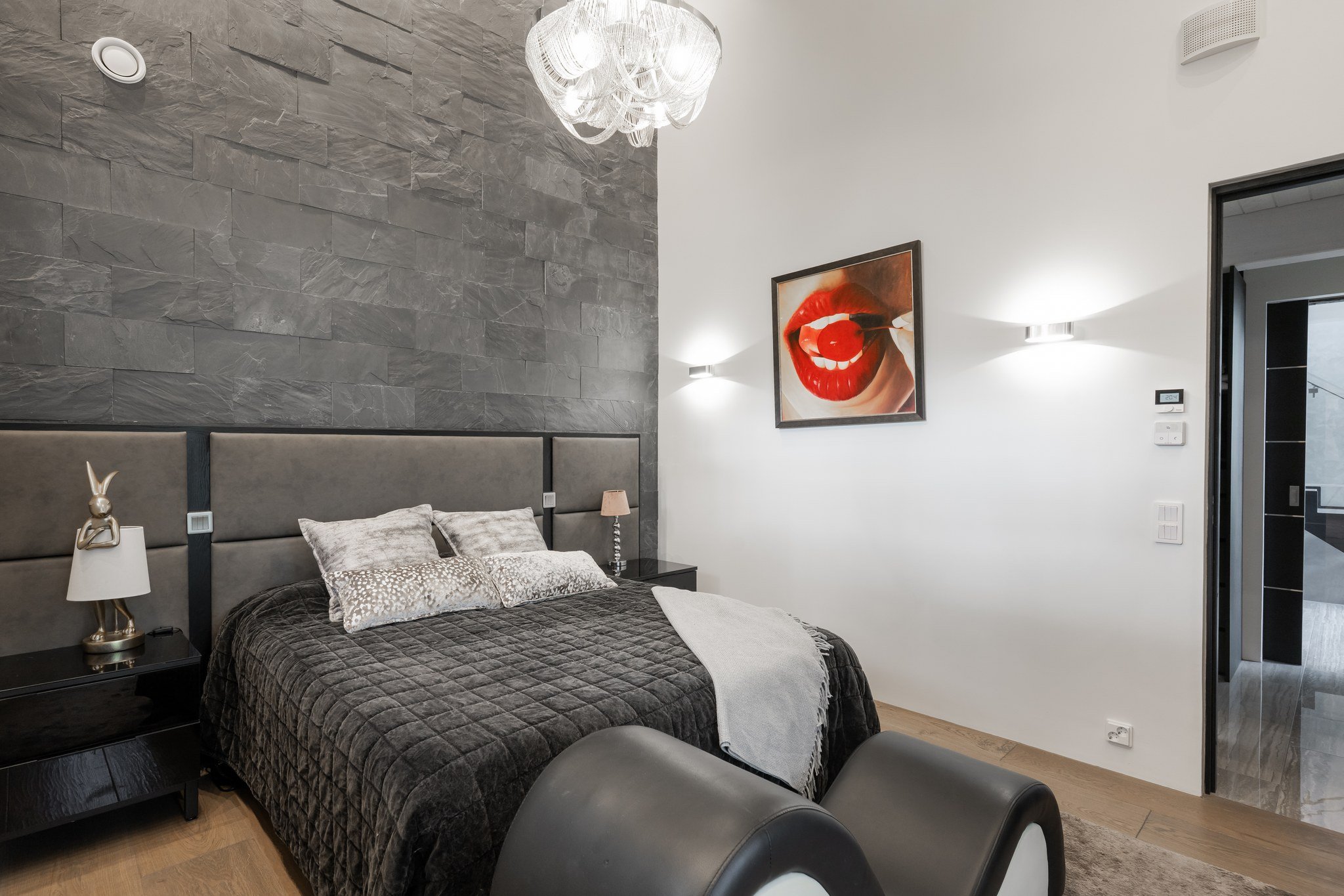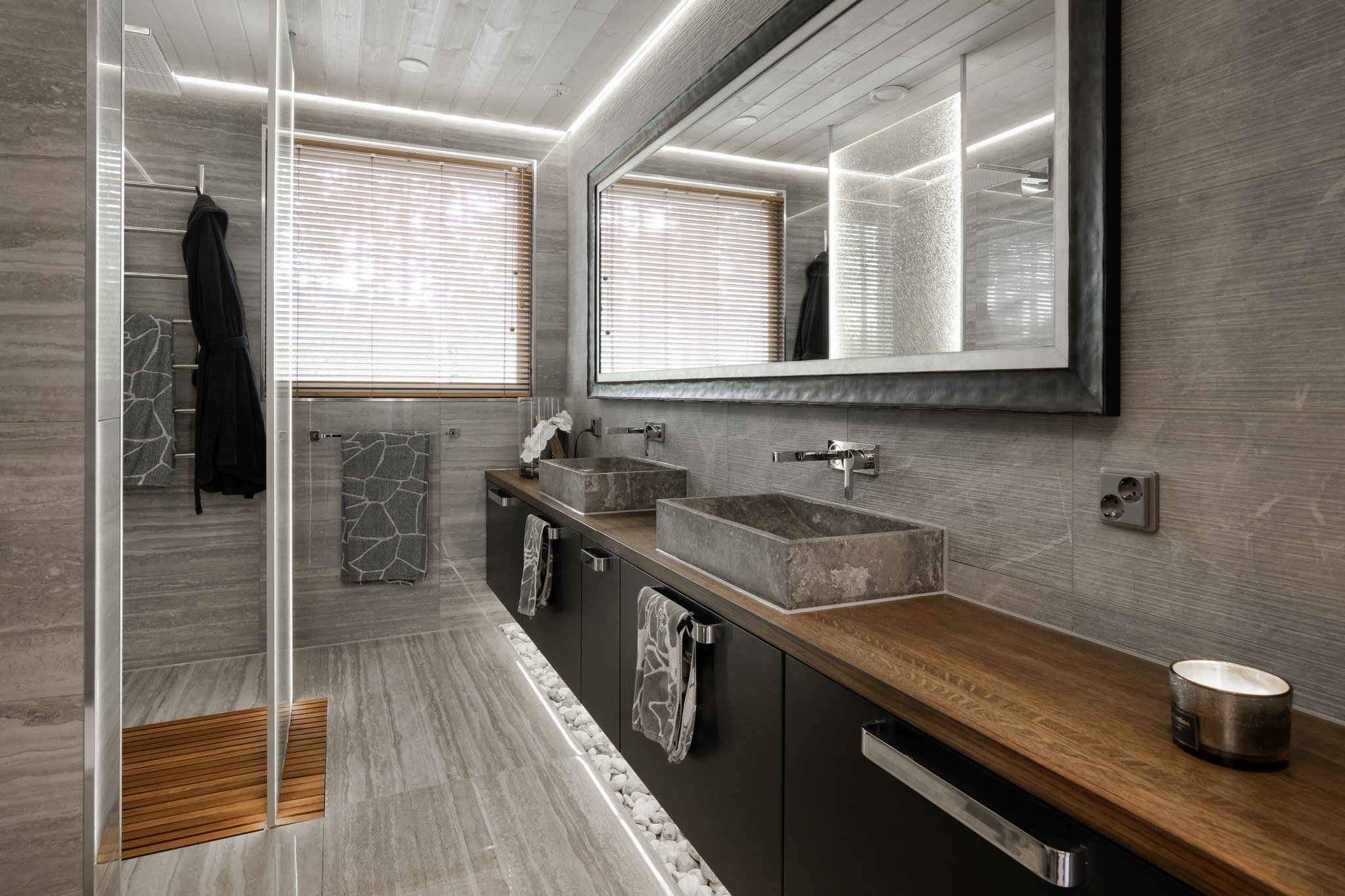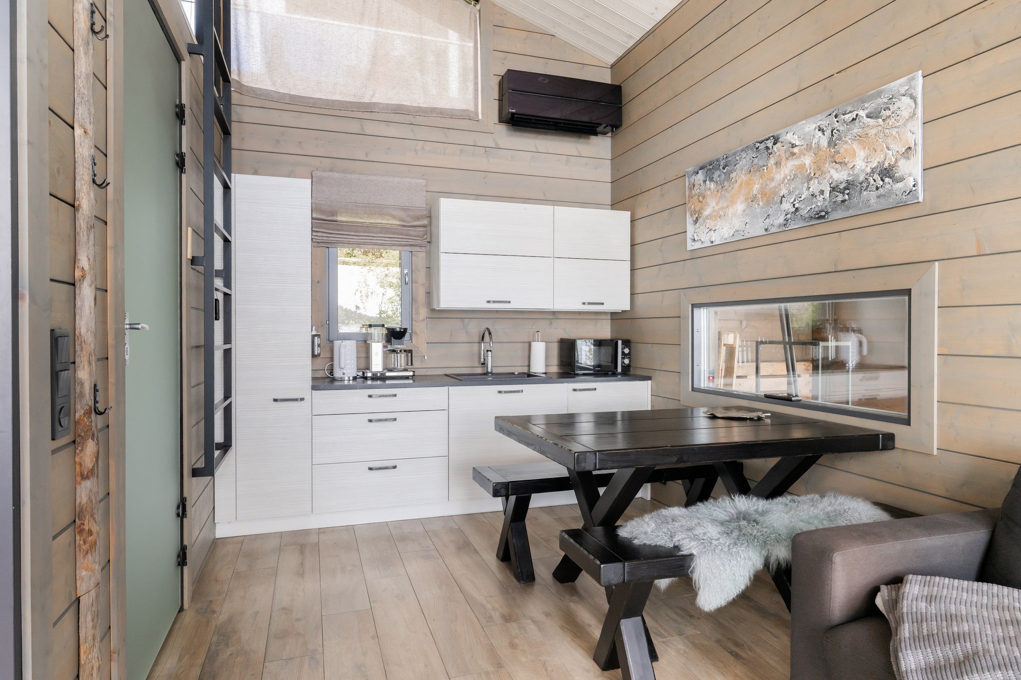 Neljän makuuhuoneen lisäksi talossa on tilava kaksiosainen työtila, joka sopii erinomaisesti etätyöskentelyyn. Alakerran viihdeosaston ytimenä toimii lounge ja baaritiski, josta on suora pääsy vapaa-ajan tiloihin. Spa-osastotolla on amme kattosuihkulla ja sauna, jotka tarjoavat rentoutumishetkiä kiireisen päivän päätteeksi.