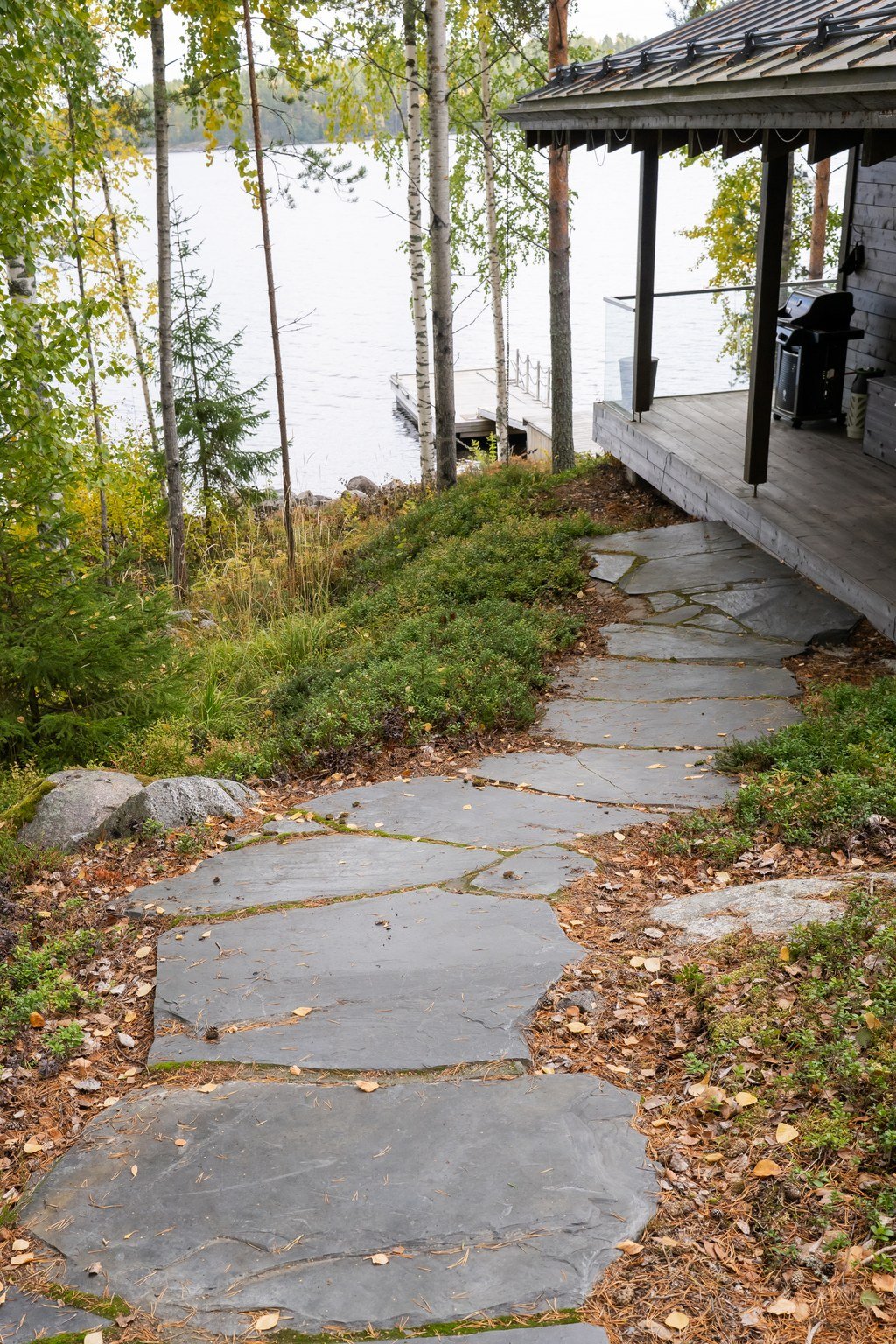 Oma ranta ja laituri poijuineen tarjoavat mahdollisuuden veneilyyn, uimiseen ja rentoon oleskeluun aivan kotiovella. Pihapiiri on suunniteltu helppohoitoiseksi ja isot terassialueet ovat täydelliset kesäiltojen viettoon.