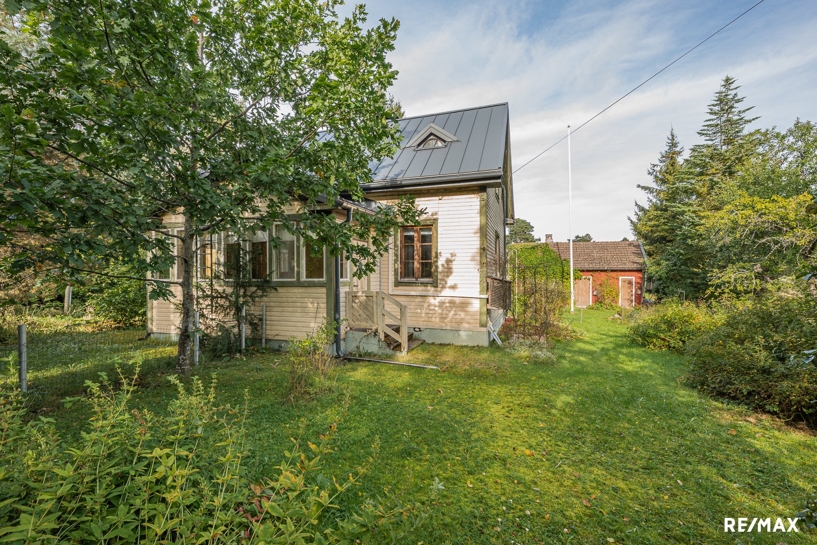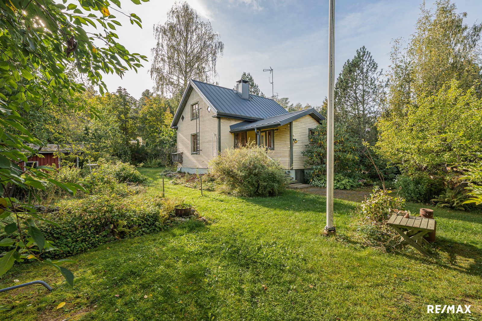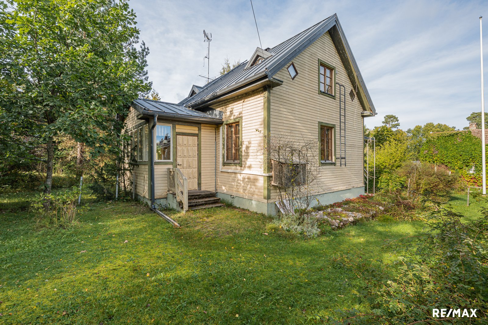 Rakennus on rakennettu vuonna 1939 ja laajennusosa on valmistunut 1985. Viihtyisältä, puutarhamaiselta tontilta löytyy mm. omenapuita ja istutuksia sekä talousrakennus, jossa puulämmitteinen aitokiuas (ei ole ollut viime vuosina käytössä) ja leikkimökki.