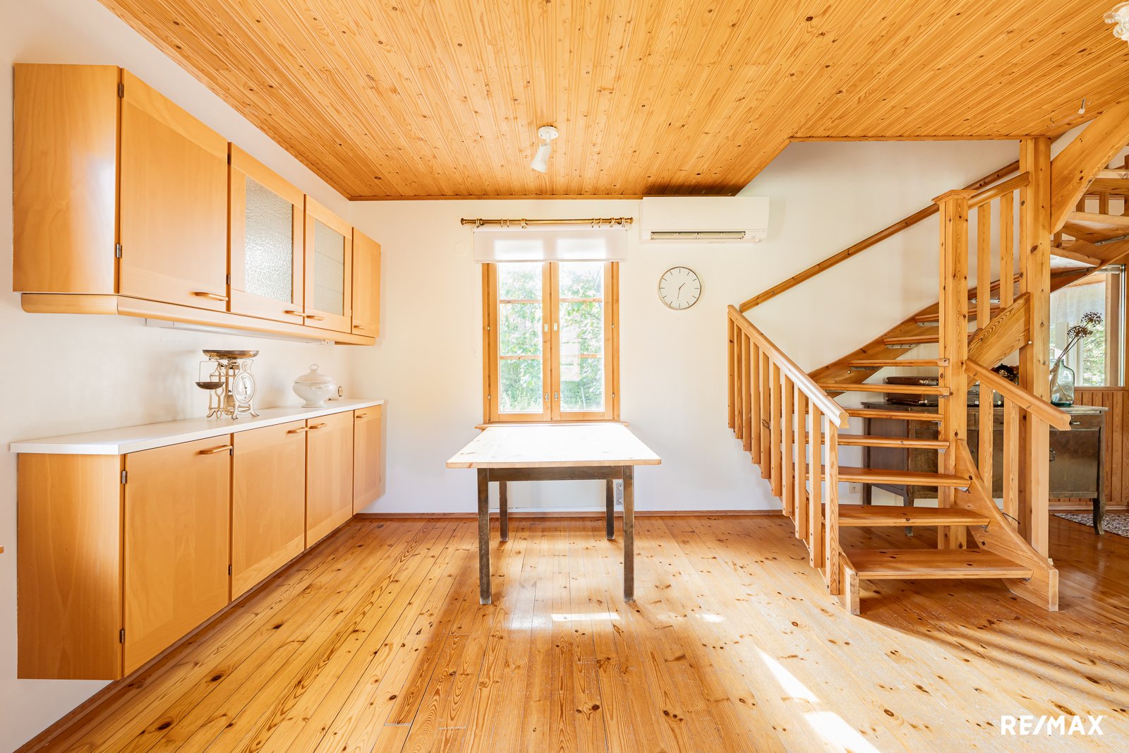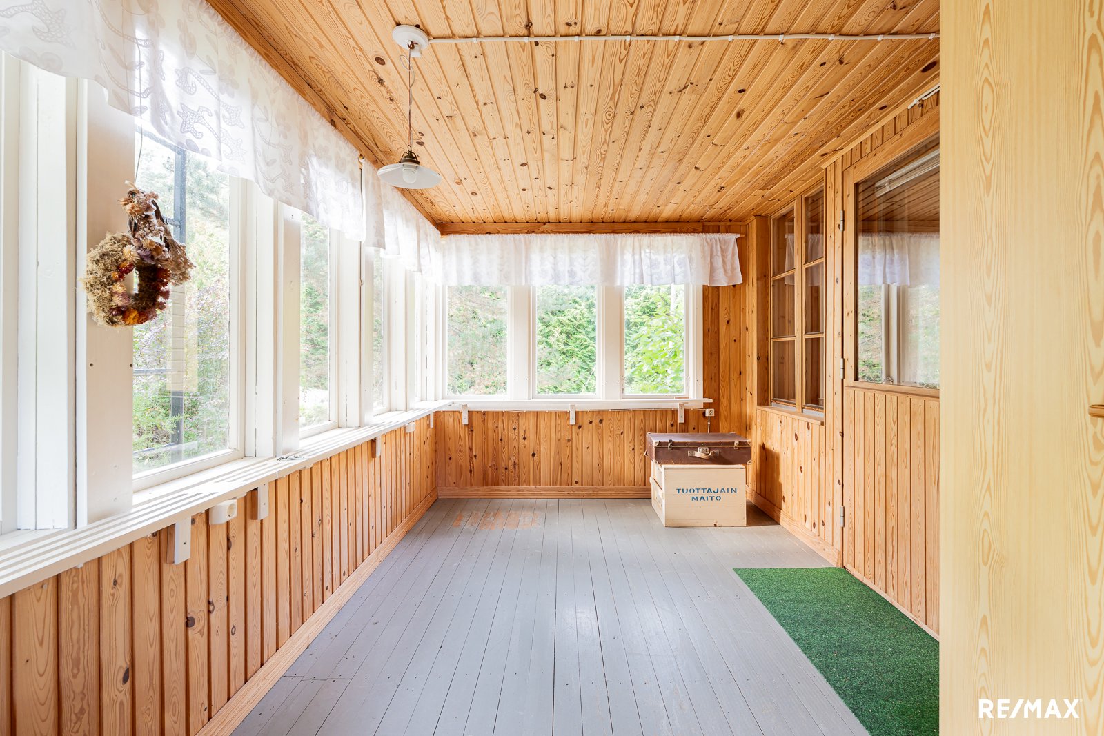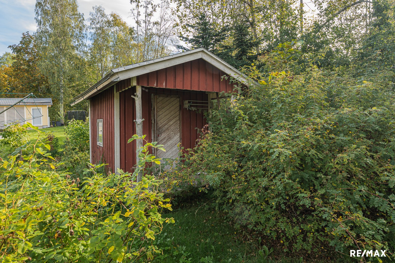 Rakennus on rakennettu vuonna 1939 ja laajennusosa on valmistunut 1985. Viihtyisältä, puutarhamaiselta tontilta löytyy mm. omenapuita ja istutuksia sekä talousrakennus, jossa puulämmitteinen aitokiuas (ei ole ollut viime vuosina käytössä) ja leikkimökki.