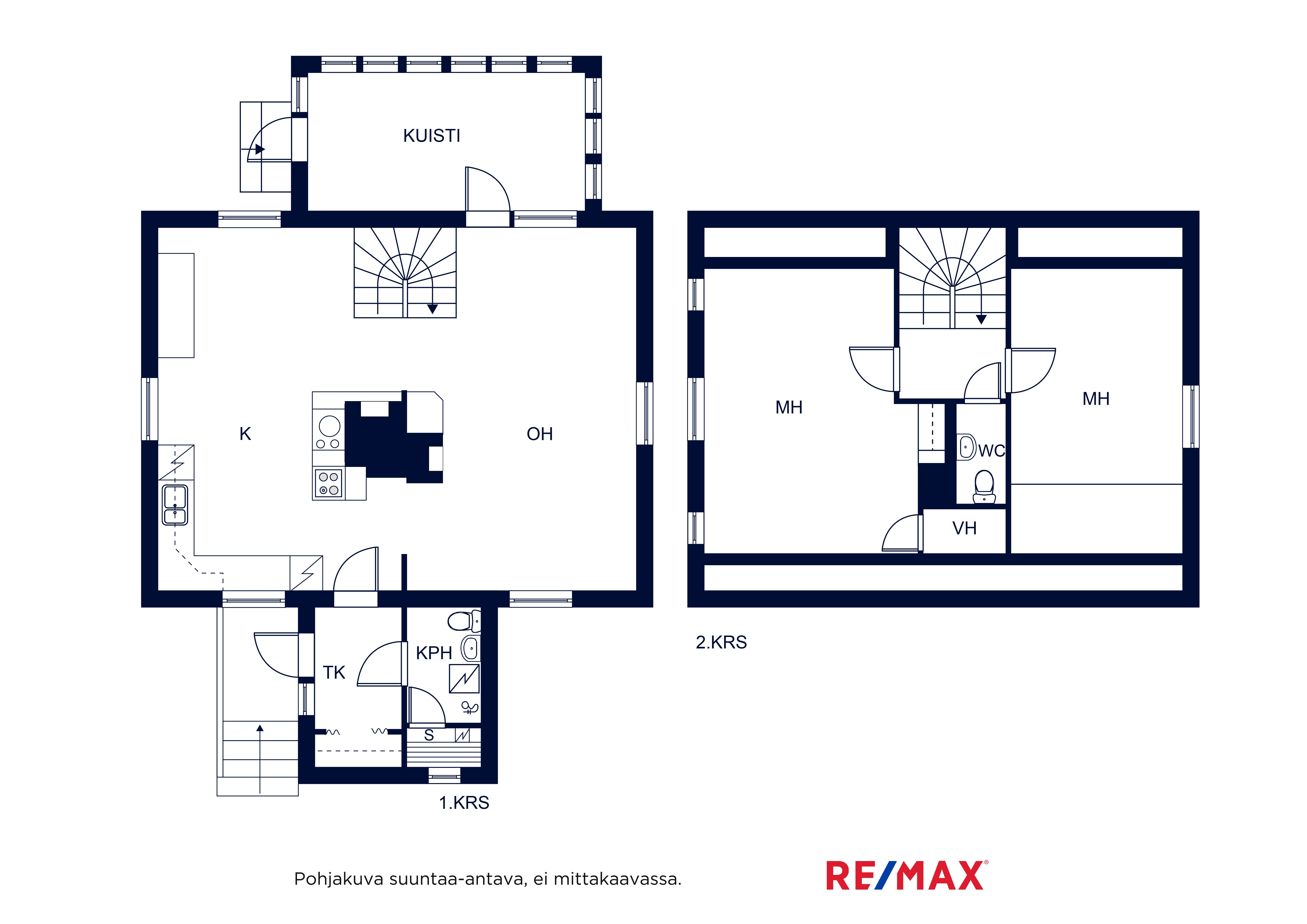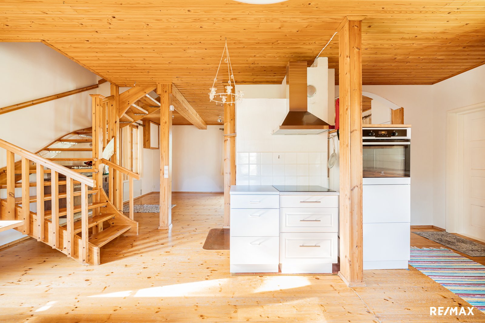 Talon tilat sijoittuvat kahteen tasoon siten, että sisääntulo kerroksesta löytyvät tupakeittiö ja tilava olohuone, josta käynti kuistille - joka ollut nykyisellä omistajalla kesähuoneena ja kylpyhuone, wc ja sauna. Yläkerrasta löytyvät kodin kaksi makuuhuonetta. Tästäkokonaisuudesta löytyy vanhan ajan charmia!
