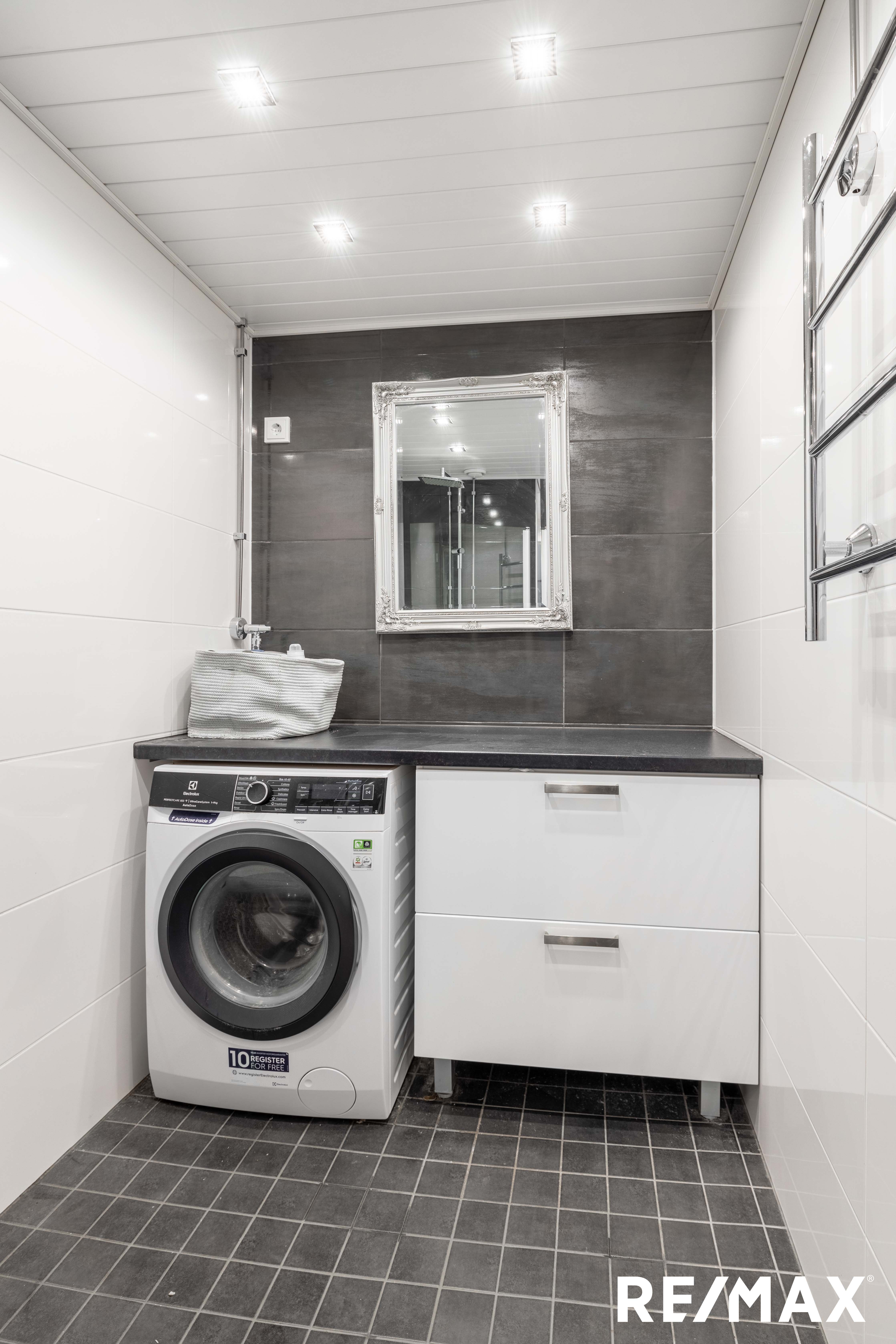 Pesutupa, urheiluvälinevarasto, kellarikomero, askarteluhuone, jäähdytetty kellari ja mankeli