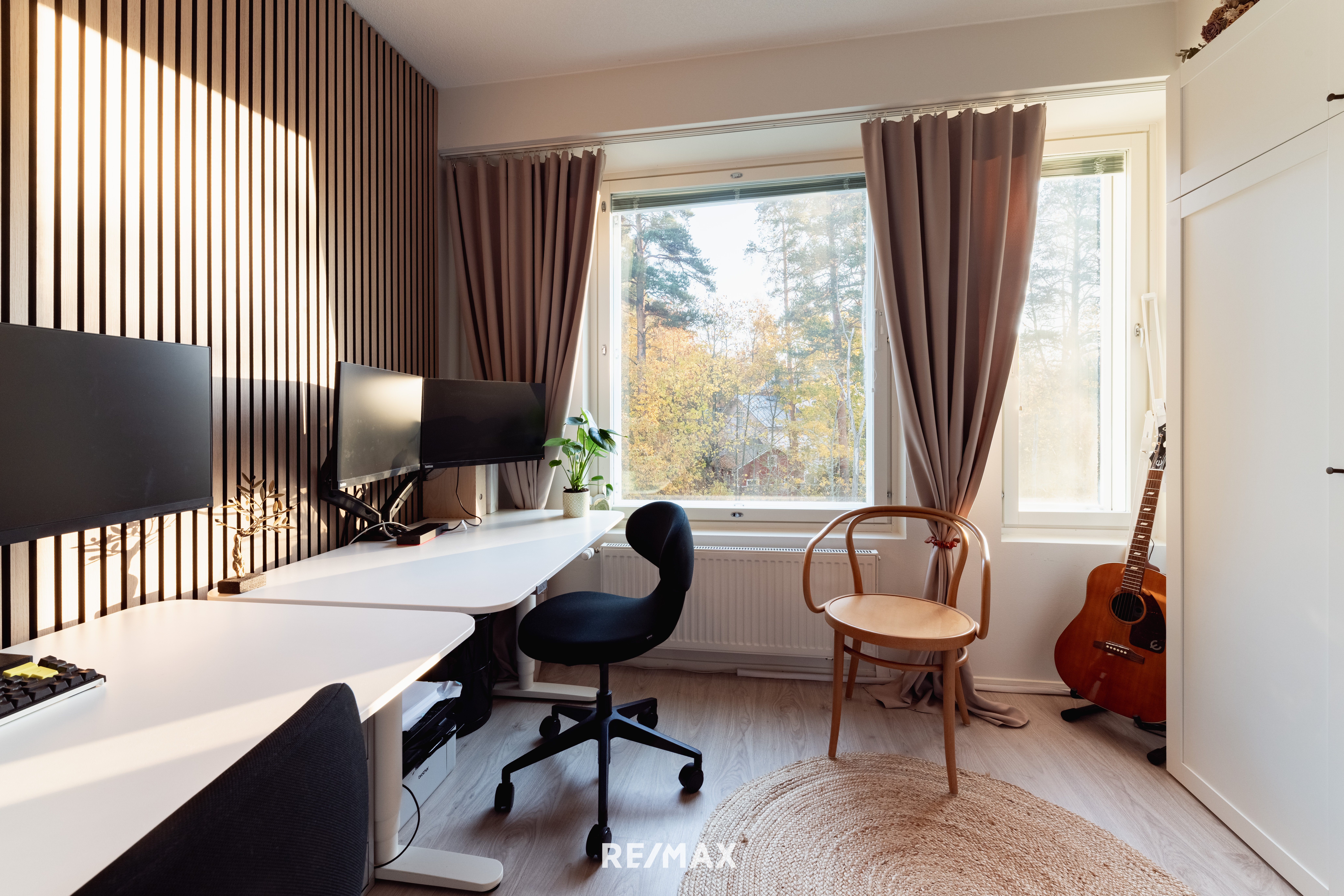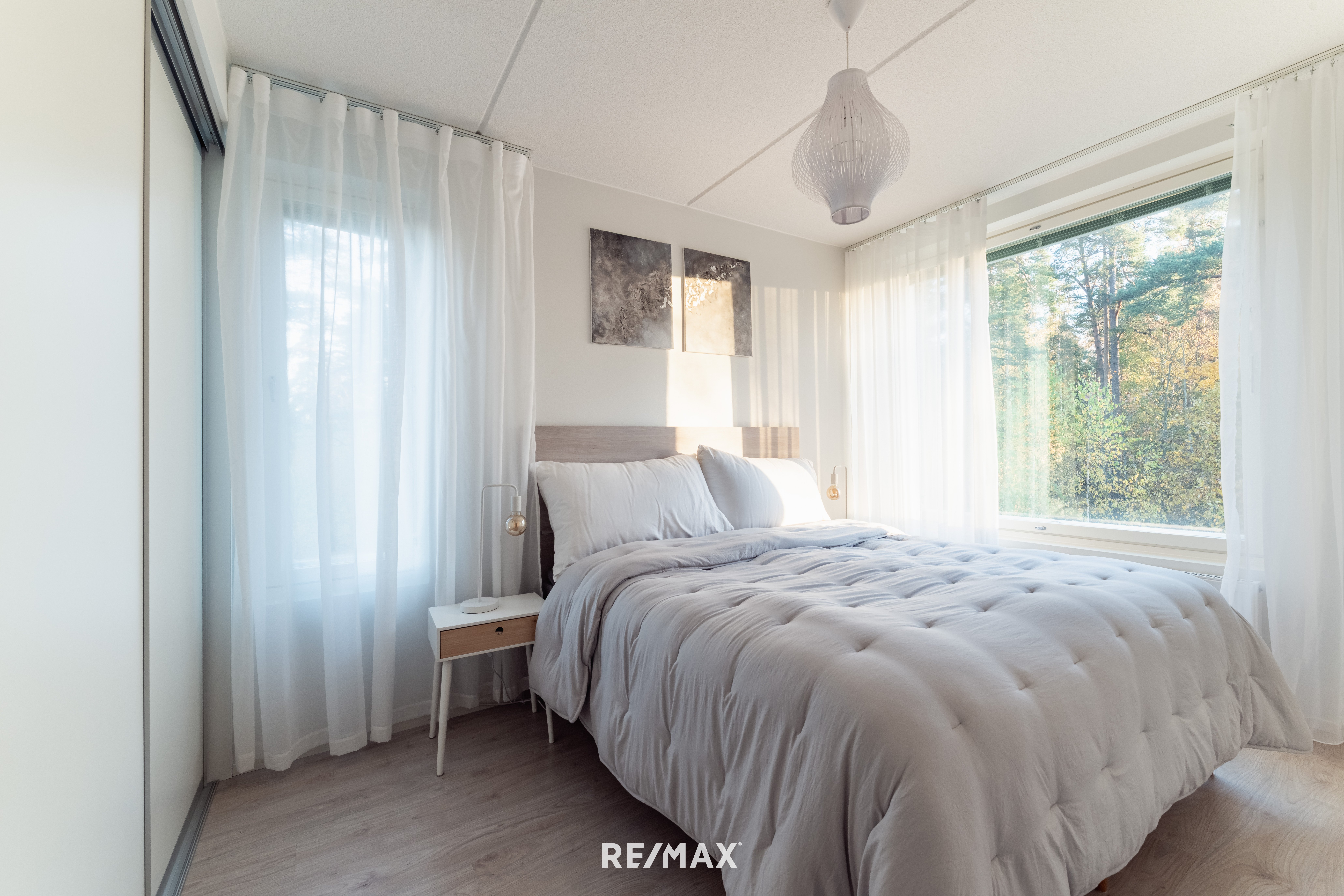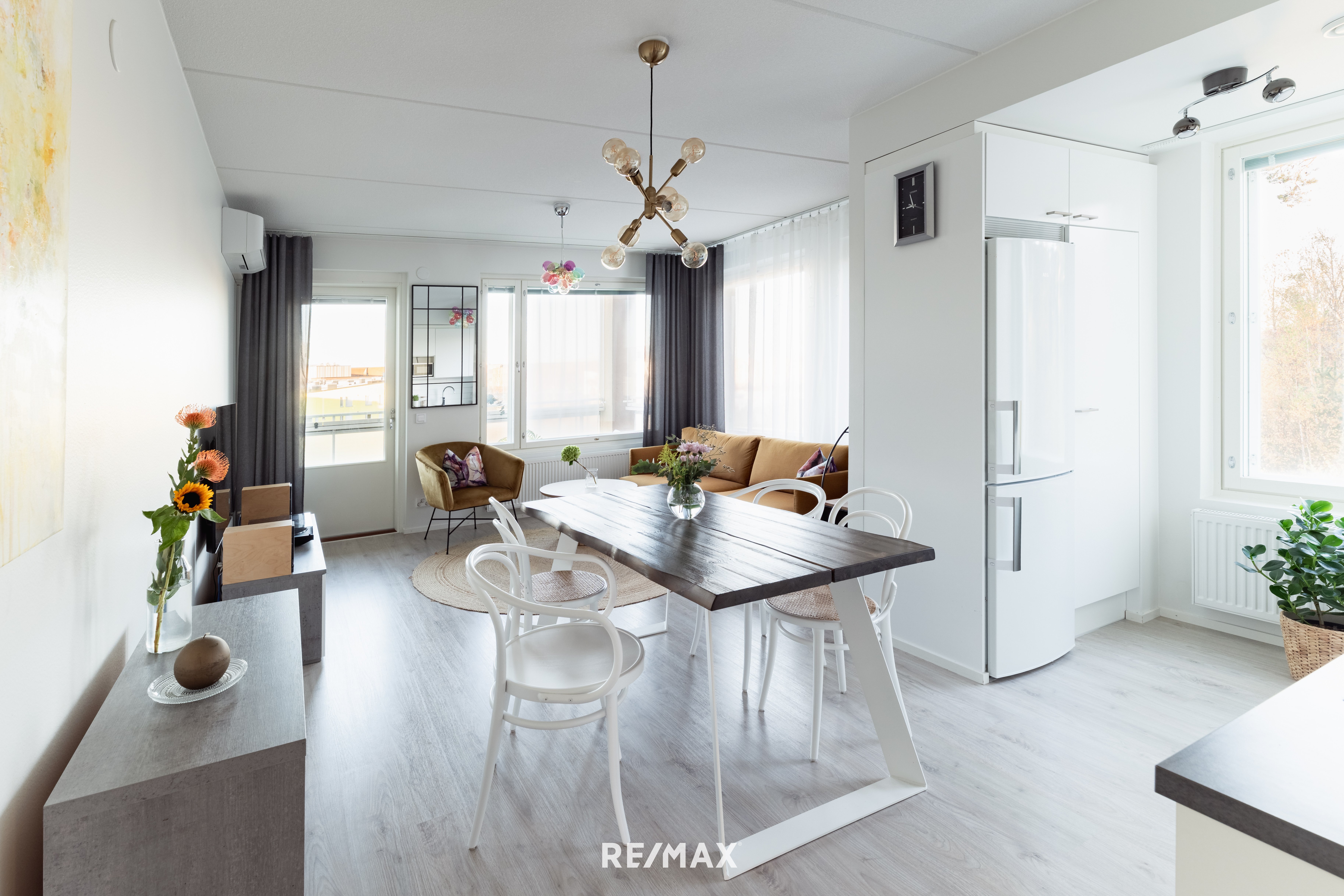 Tämä valoisa läpitalon huoneisto sijaitsee rauhallisen talon ylimmässä kerroksessa, tarjoten yksityisyyttä ja viihtyisyyttä ilman yläkerran naapureita. Asunto on taloyhtiön parhaalla paikalla ylimmän kerroksen kulmassa, joka on myös kauimpana autotiestä. Ikkunoista on vehreät näköalat jokiniemen metsikköön/puistoon. Useat ikkunat tuovat luonnonvaloa eri vuorokaudenaikoina ja tekevät tilasta miellyttävän ja avaran. Avoin pohjaratkaisu yhdistää tilat luontevasti, ja runsas säilytystila helpottaa arjen järjestelyä. Tänne voit muuttaa huoletta ja nauttia heti kodikkaasta tunnelmasta. Täydellinen valinta sinulle, joka arvostat valoisuutta, käytännöllisyyttä ja rauhallista sijaintia palveluiden äärellä.