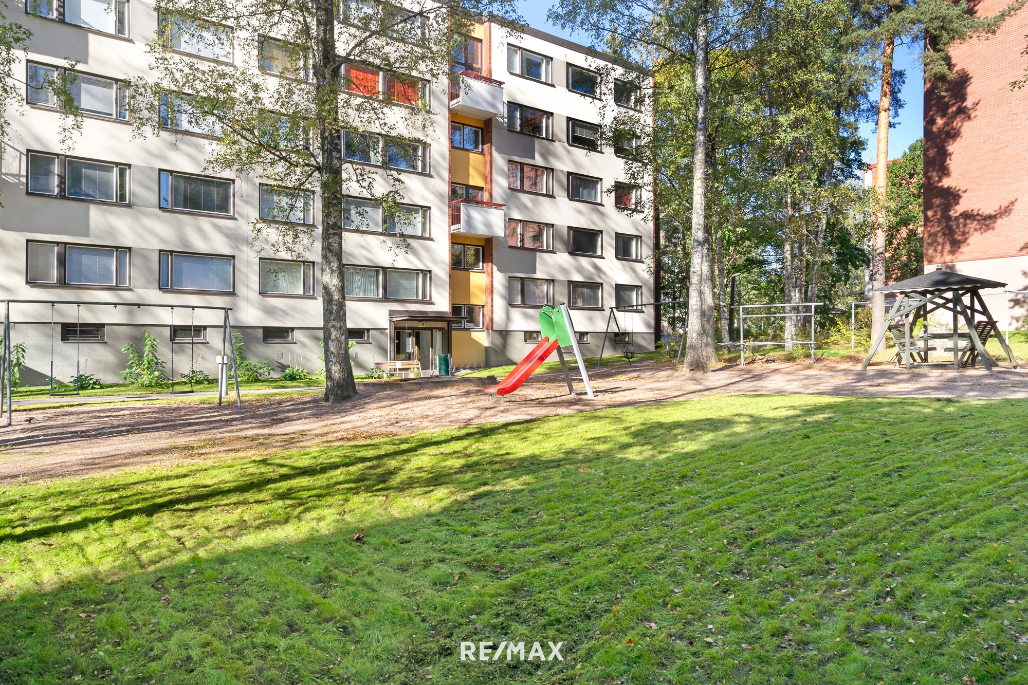 Taloyhtiö on rakennettu omalle, tilavalle tontille jolta löytyy niin leikkipaikka kuin parkkipaikkojakin. Taloyhtiön yhteisistä tiloissa asukkaita palvelevat saunat sekä uima-allas, säilytystiloja, pesutupaa ja kuivaushuoneita unohtamatta.
