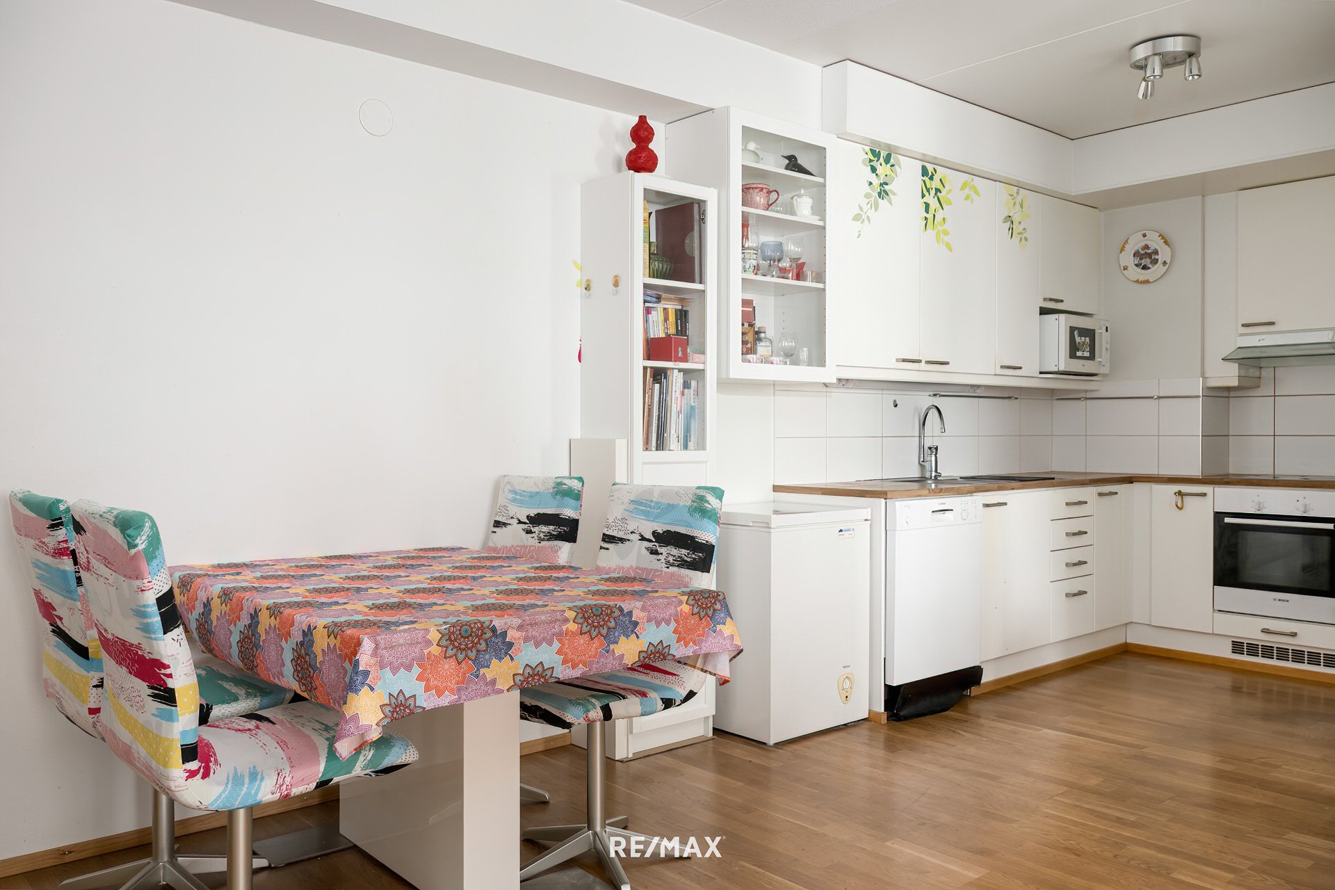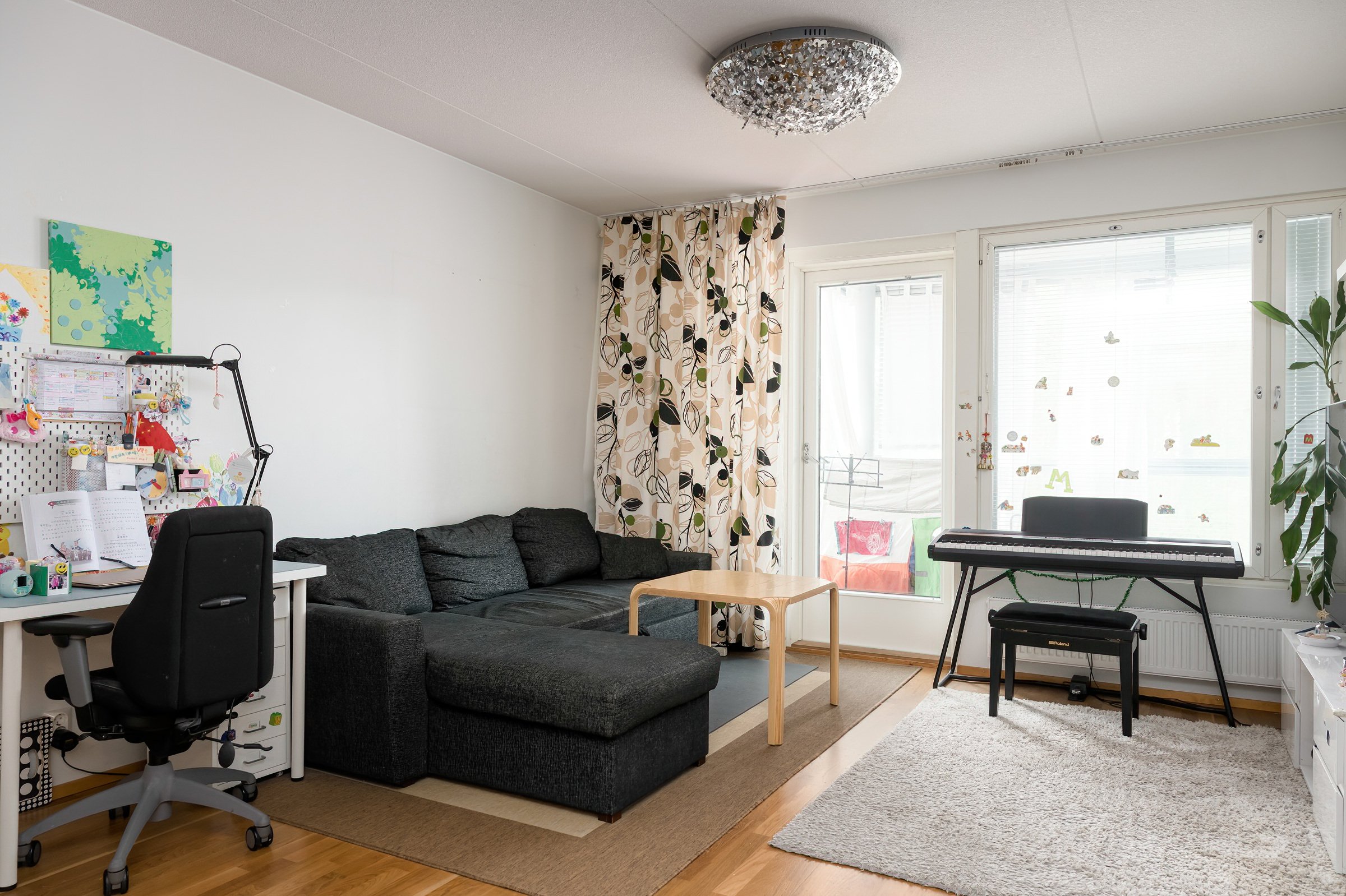 Tervetuloa tutustumaan tähän kauniiseen ja hyvin pidettyyn kotiin, jossa toimiva pohjaratkaisu, tyylikäs sisustus ja arjen mukavuudet kohtaavat. Huoneisto tarjoaa avaran olohuoneen, joka yhdistyy sulavasti ruokailutilaan ja keittiöön, luoden yhtenäisen ja valoisan kokonaisuuden.