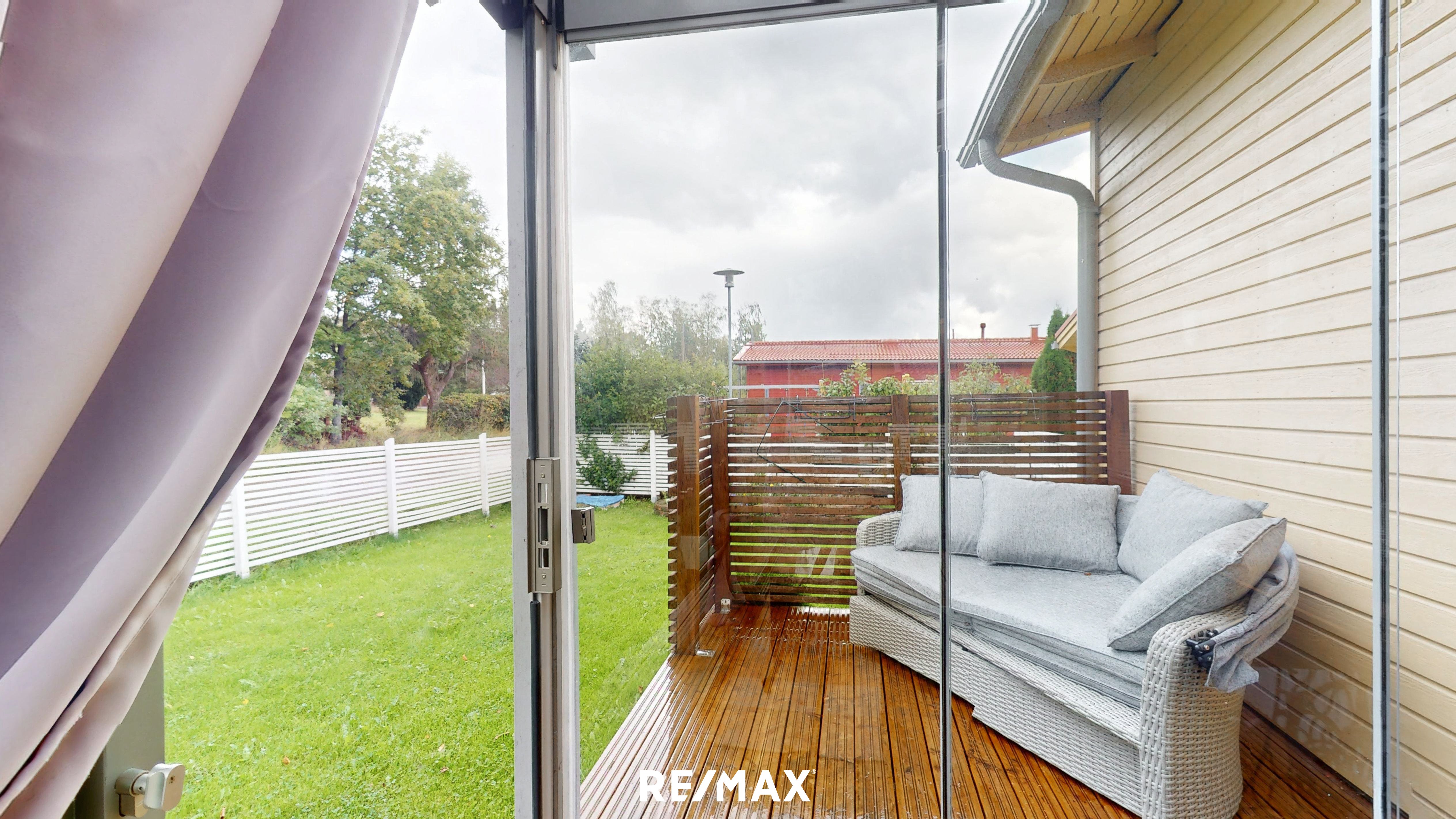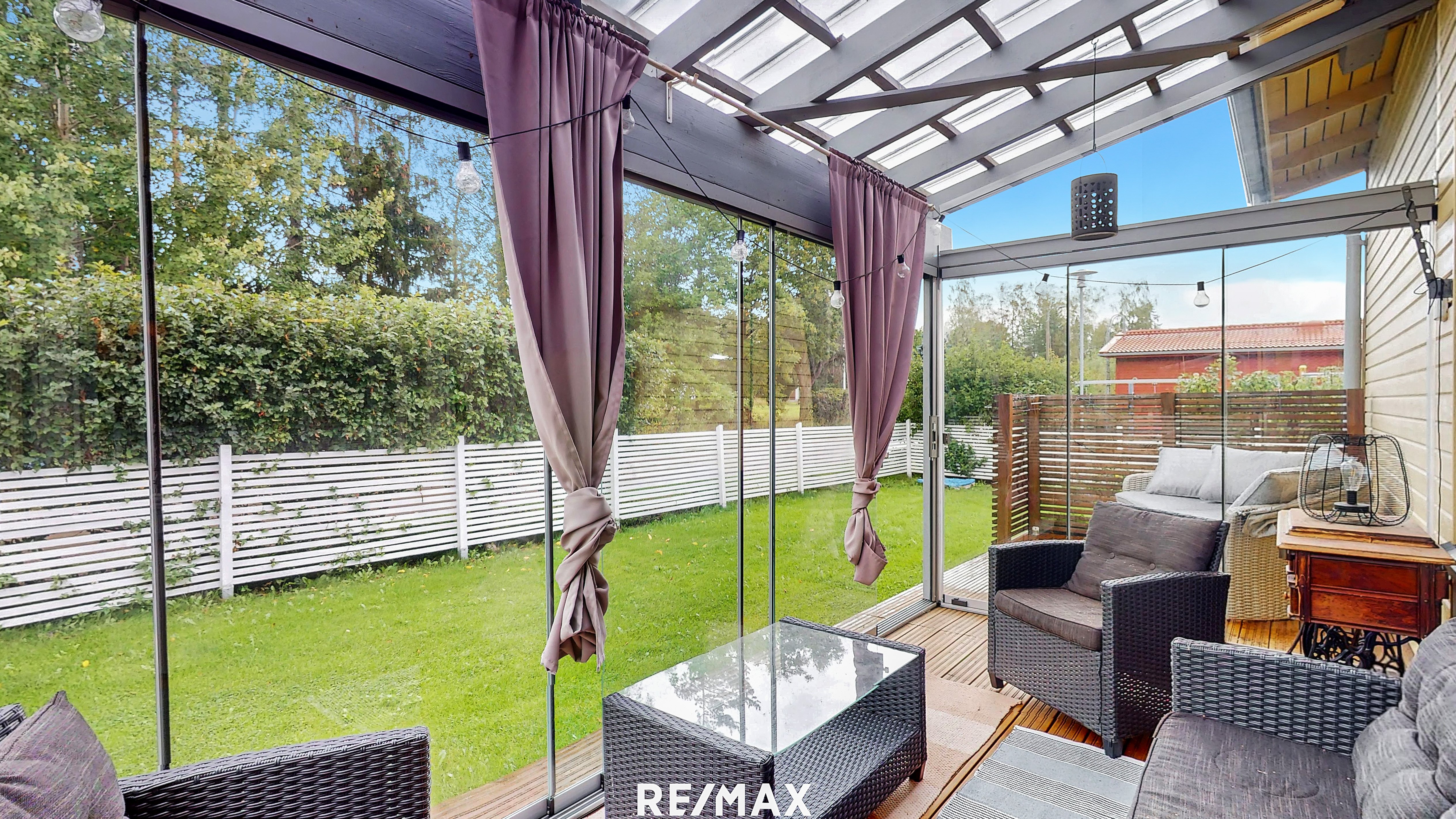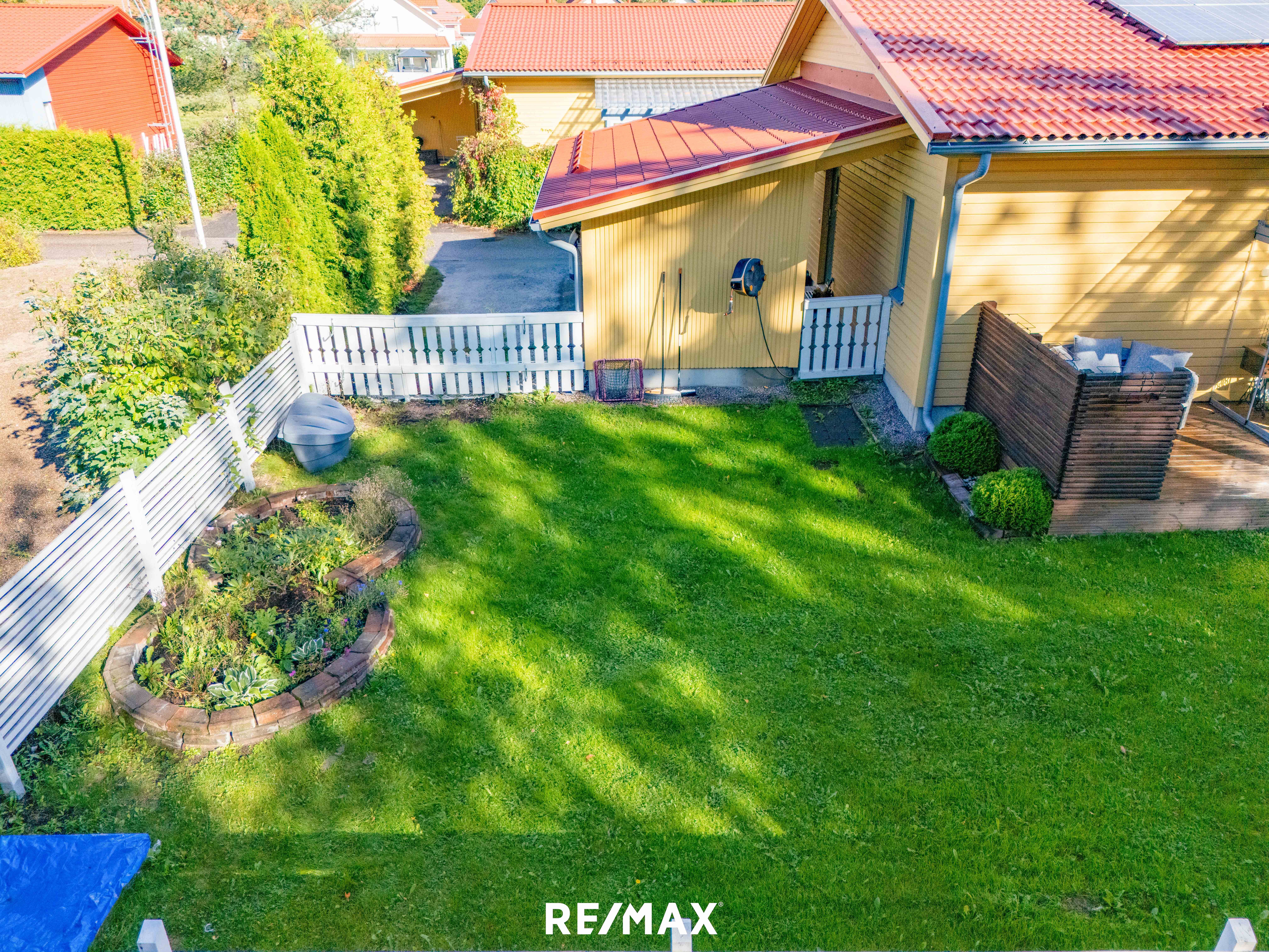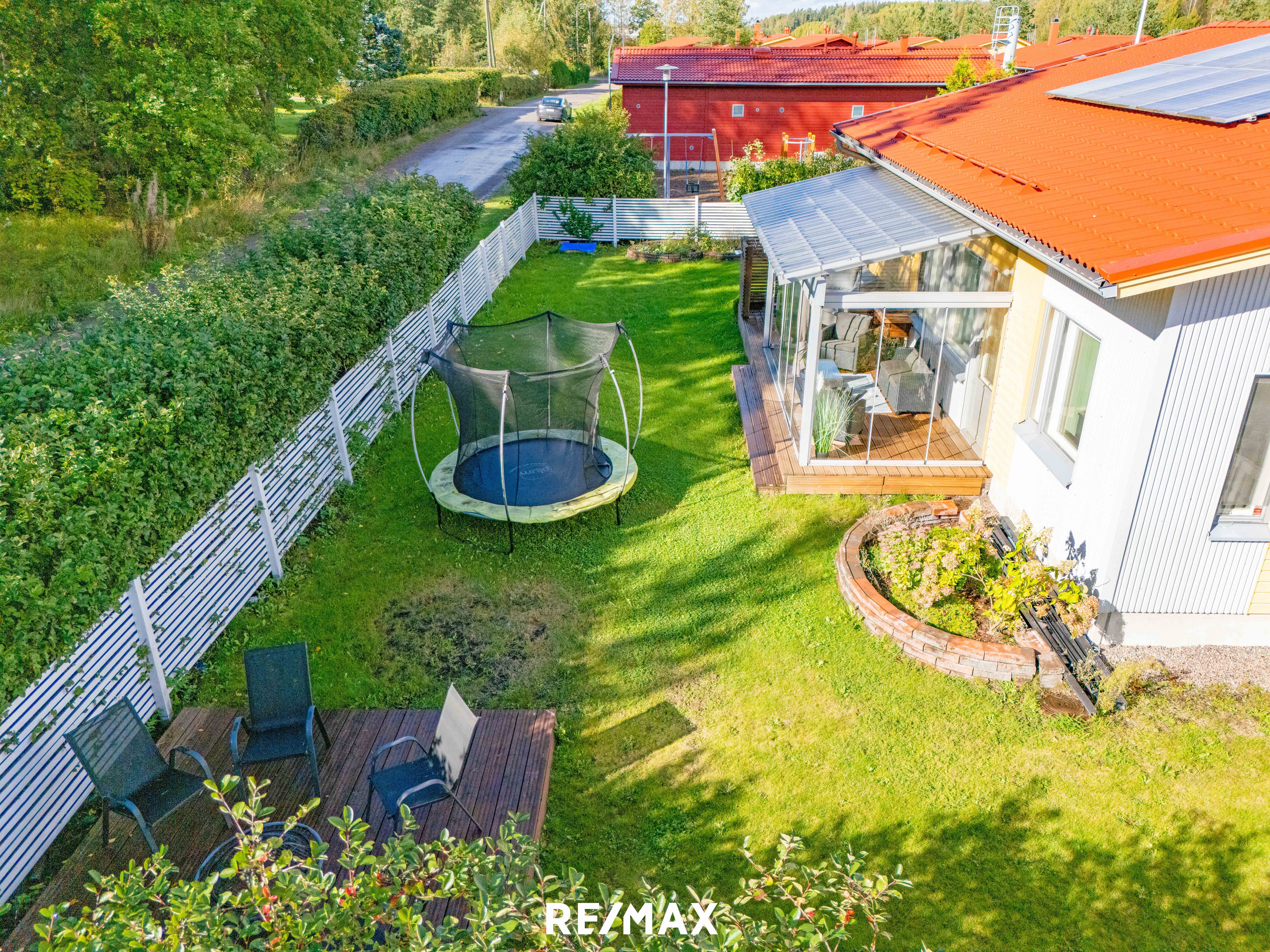 Tämä 98 m2:n valoisa ja kodikas koti sijaitsee rauhallisella pientaloalueella, jossa arki rullaa vaivattomasti. Kolme tilavaa makuuhuonetta tarjoavat jokaiselle perheenjäsenelle oman rauhan, ja olohuoneen suuret ikkunat tuovat luonnonvalon kauniisti sisään. Olohuoneesta on käynti lasitetulle terassille ja omalle isolle takapihalle – täydellinen paikka rentoutumiseen ja yhdessäoloon.