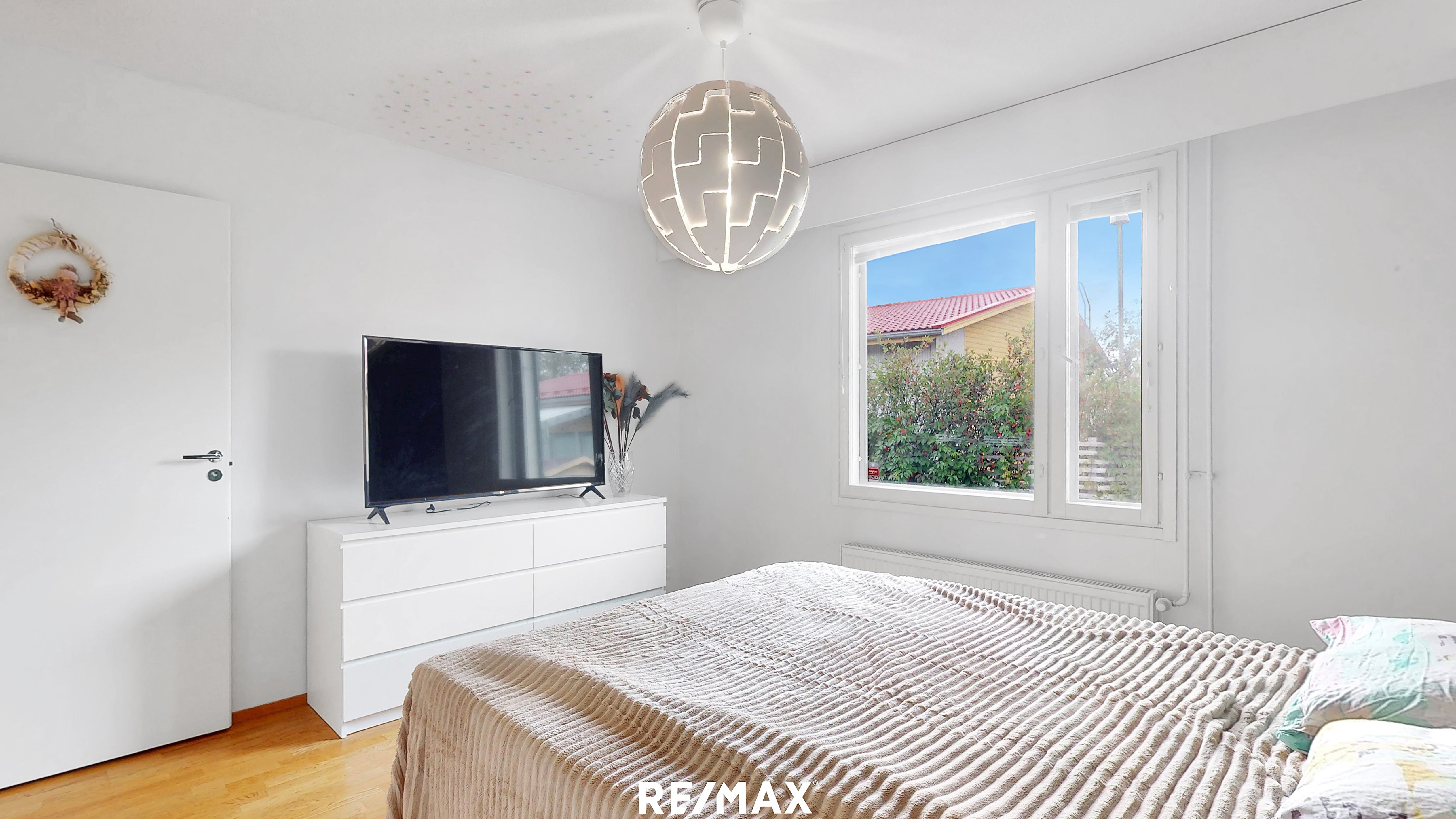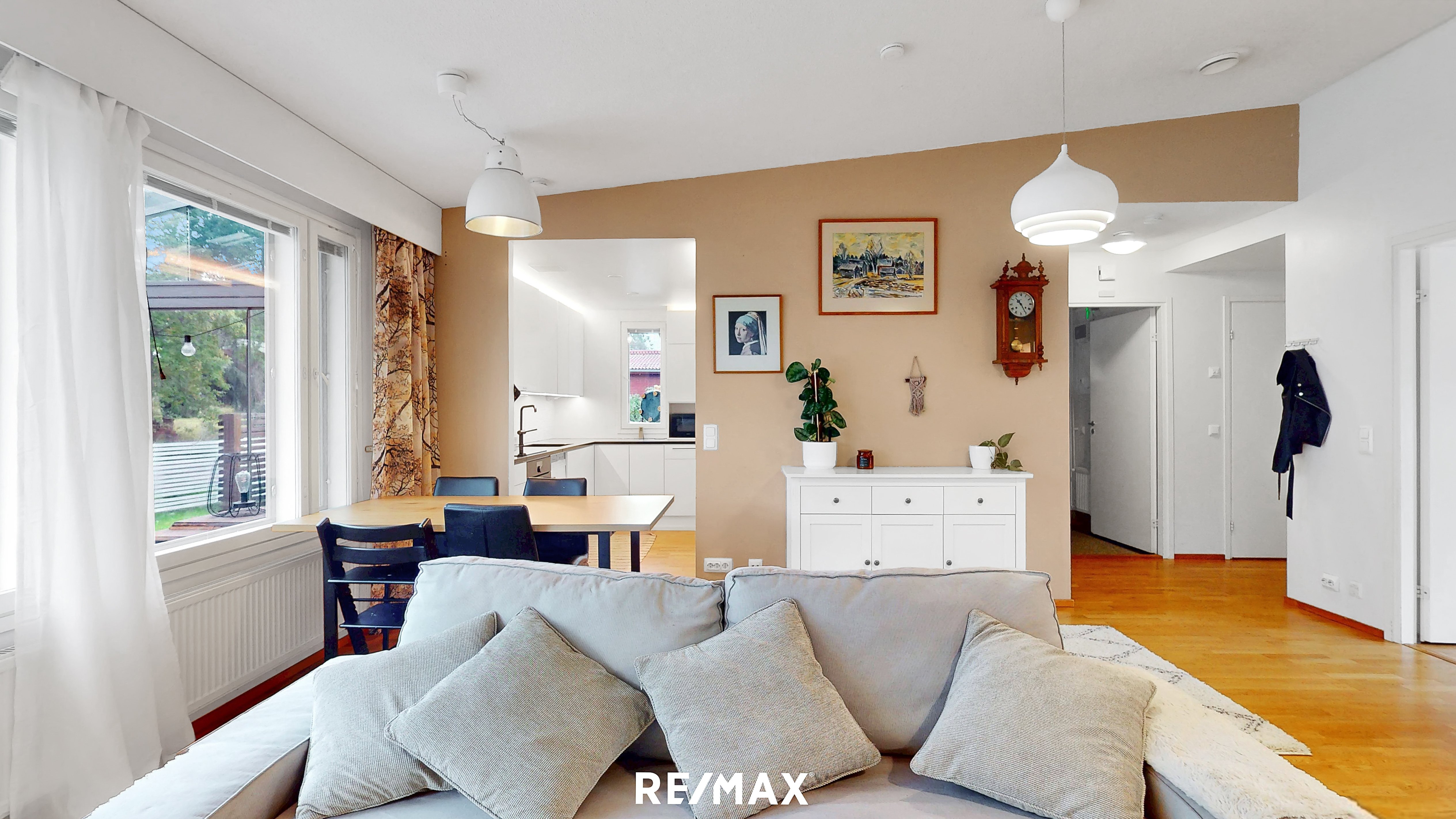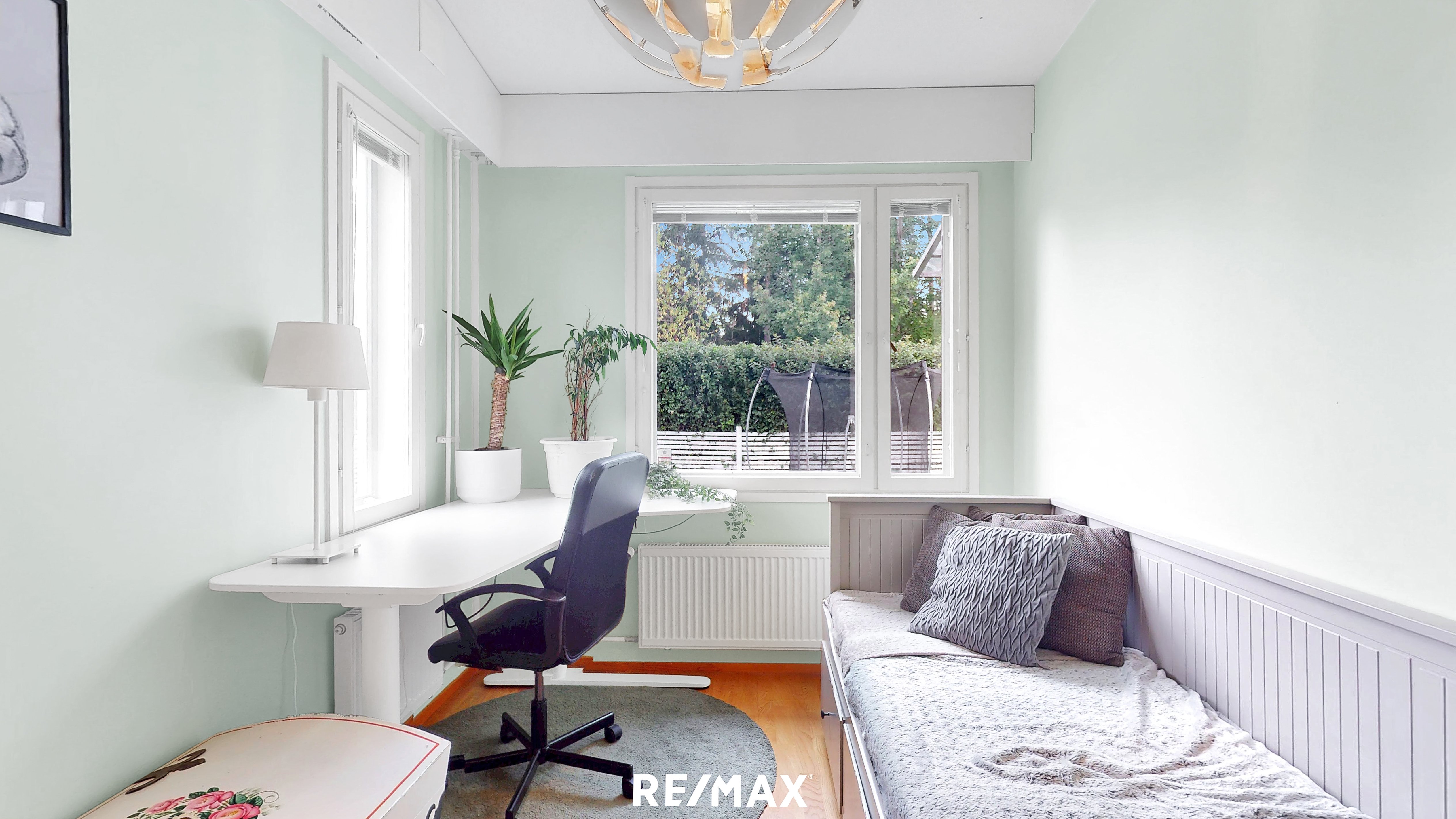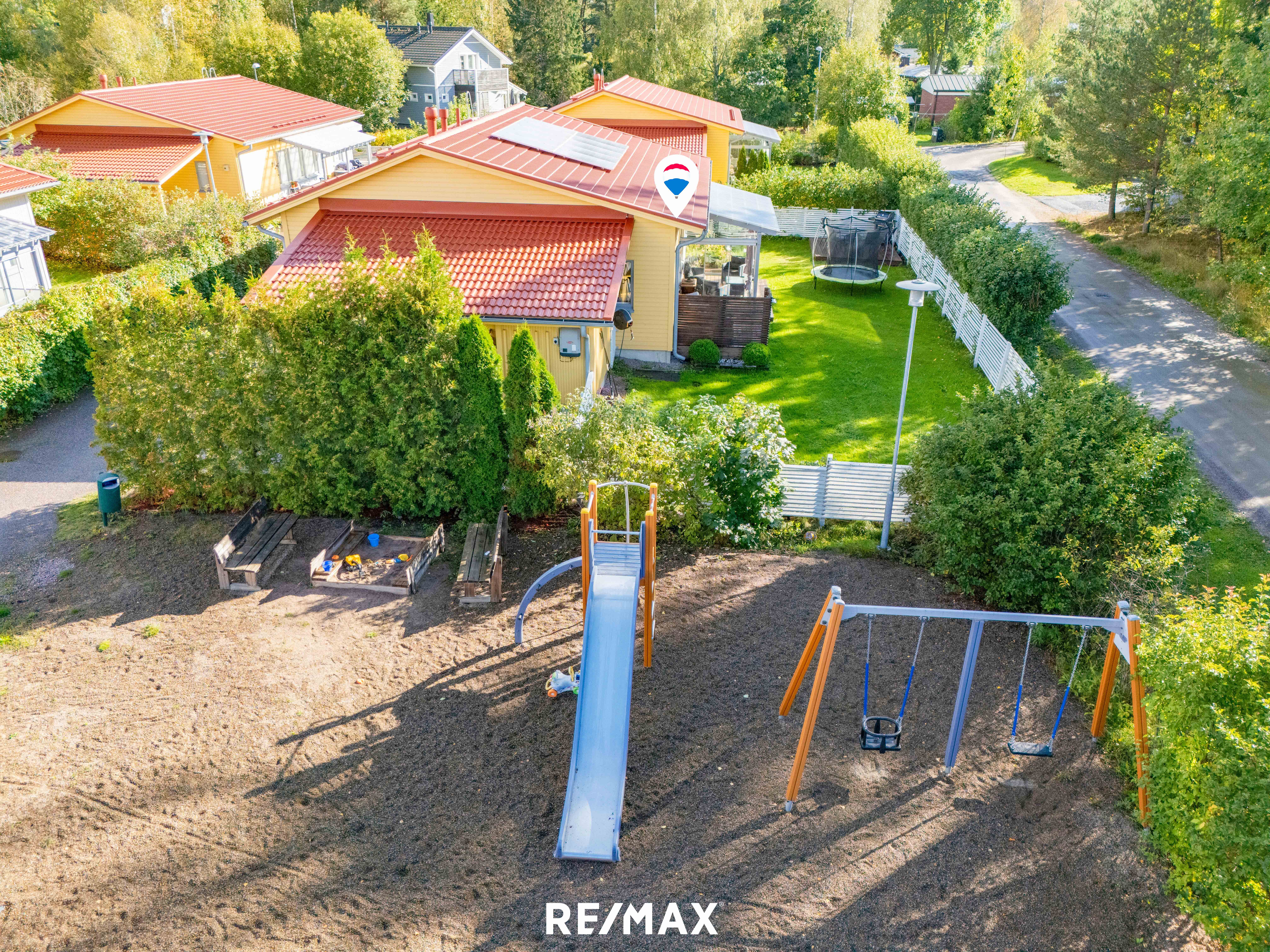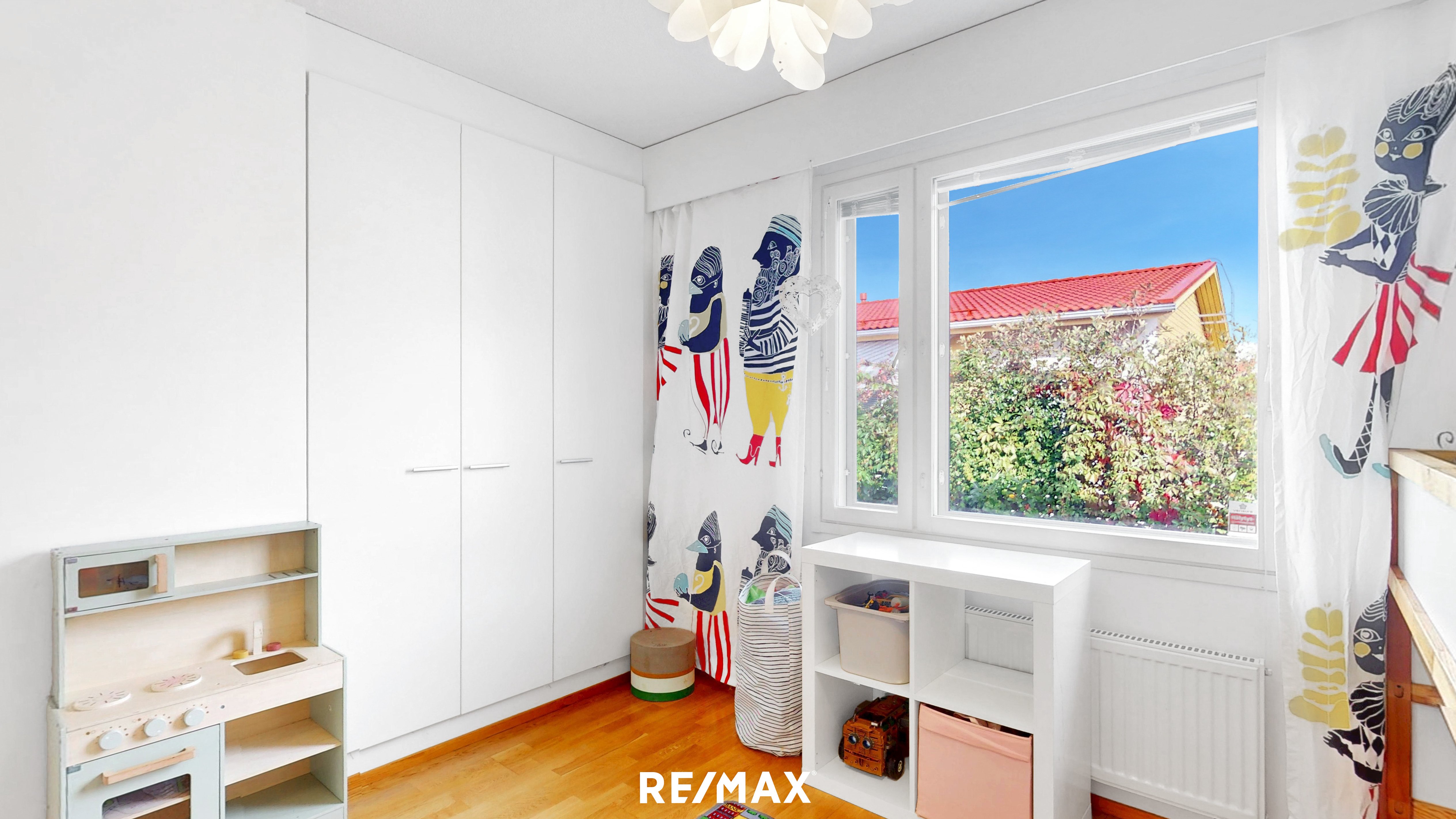 Tämä 98 m2:n valoisa ja kodikas koti sijaitsee rauhallisella pientaloalueella, jossa arki rullaa vaivattomasti. Kolme tilavaa makuuhuonetta tarjoavat jokaiselle perheenjäsenelle oman rauhan, ja olohuoneen suuret ikkunat tuovat luonnonvalon kauniisti sisään. Olohuoneesta on käynti lasitetulle terassille ja omalle isolle takapihalle – täydellinen paikka rentoutumiseen ja yhdessäoloon.