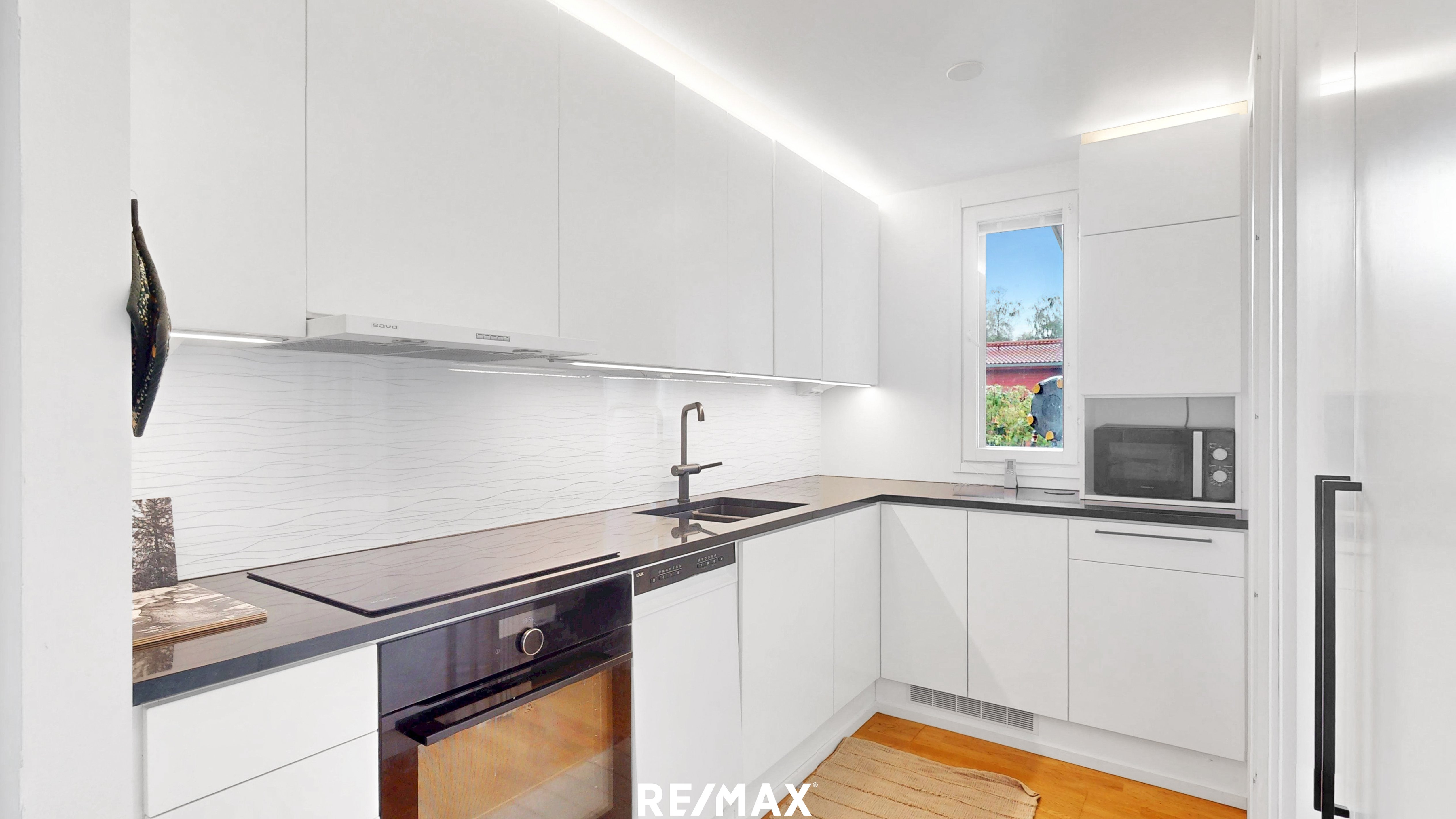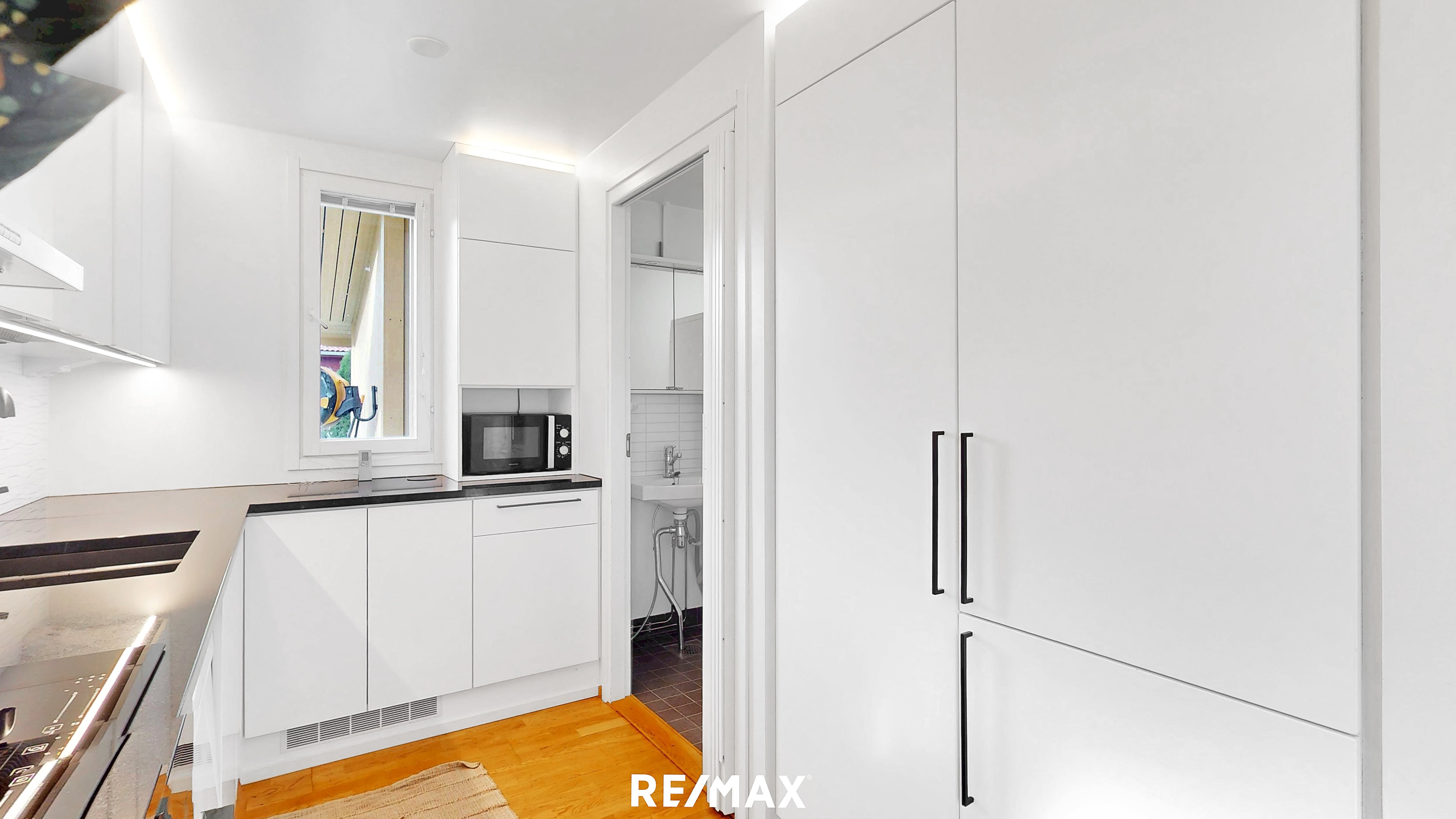 Tyylikäs vaaleasävyinen keittiö on hiljattain remontoitu. Kivitasot sekä modernit kodinkoneet viimeistelevät kokonaisuuden ja tekevät ruoanlaitosta nautinnollista. Keittiö yhdistyy olohuoneeseen muodostaen avaran ja toimivan kokonaisuuden. Oman saunan lämpö kutsuu rentoutumaan päivän päätteeksi, ja kodinhoitotila tekee arjen pyörittämisestä sujuvaa. Erilliset WC:t lisäävät asumismukavuutta, ja säilytystilaa löytyy runsaasti vaatehuoneesta sekä sisäänkäynnin yhteydessä olevasta eristämättömästä varastosta.