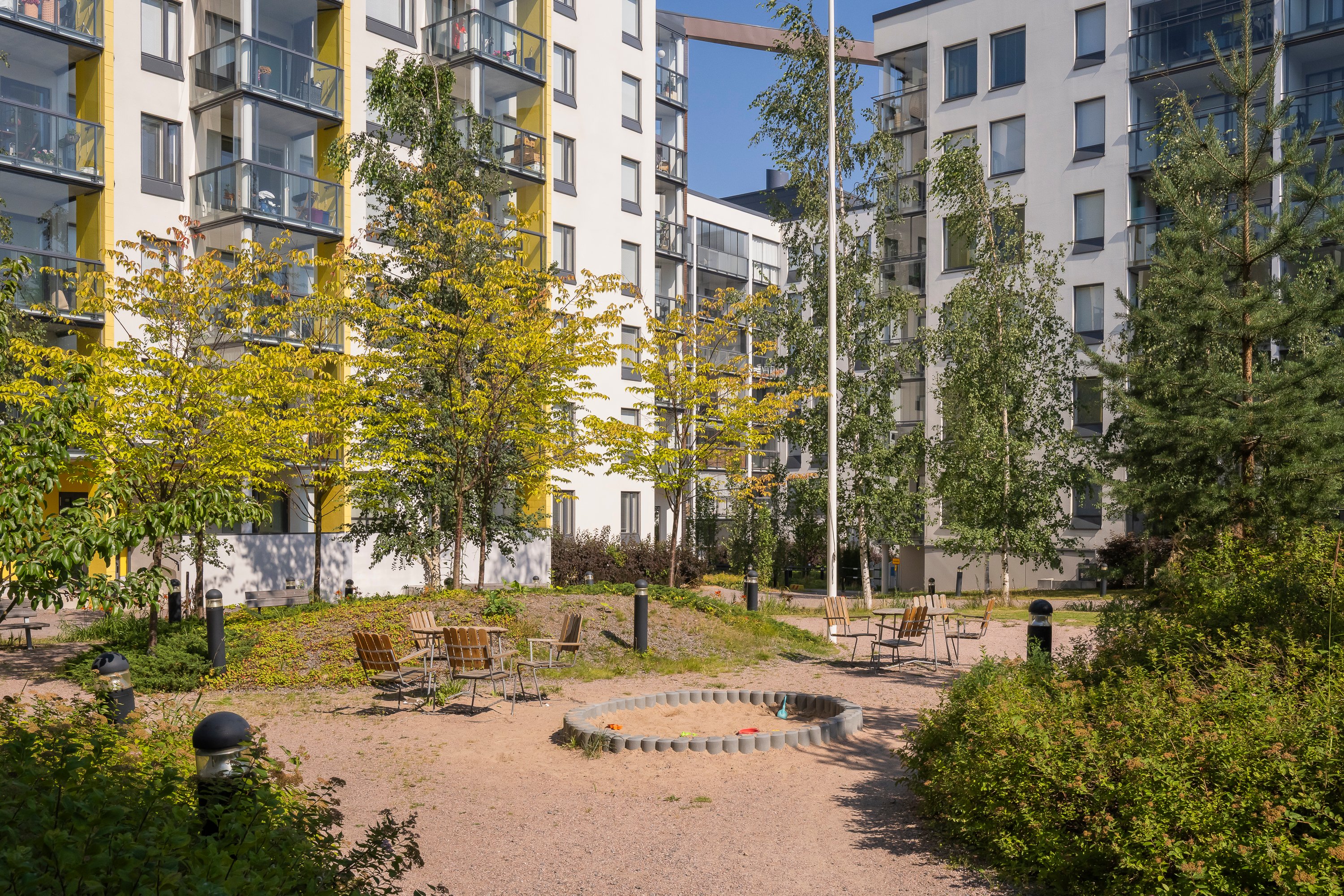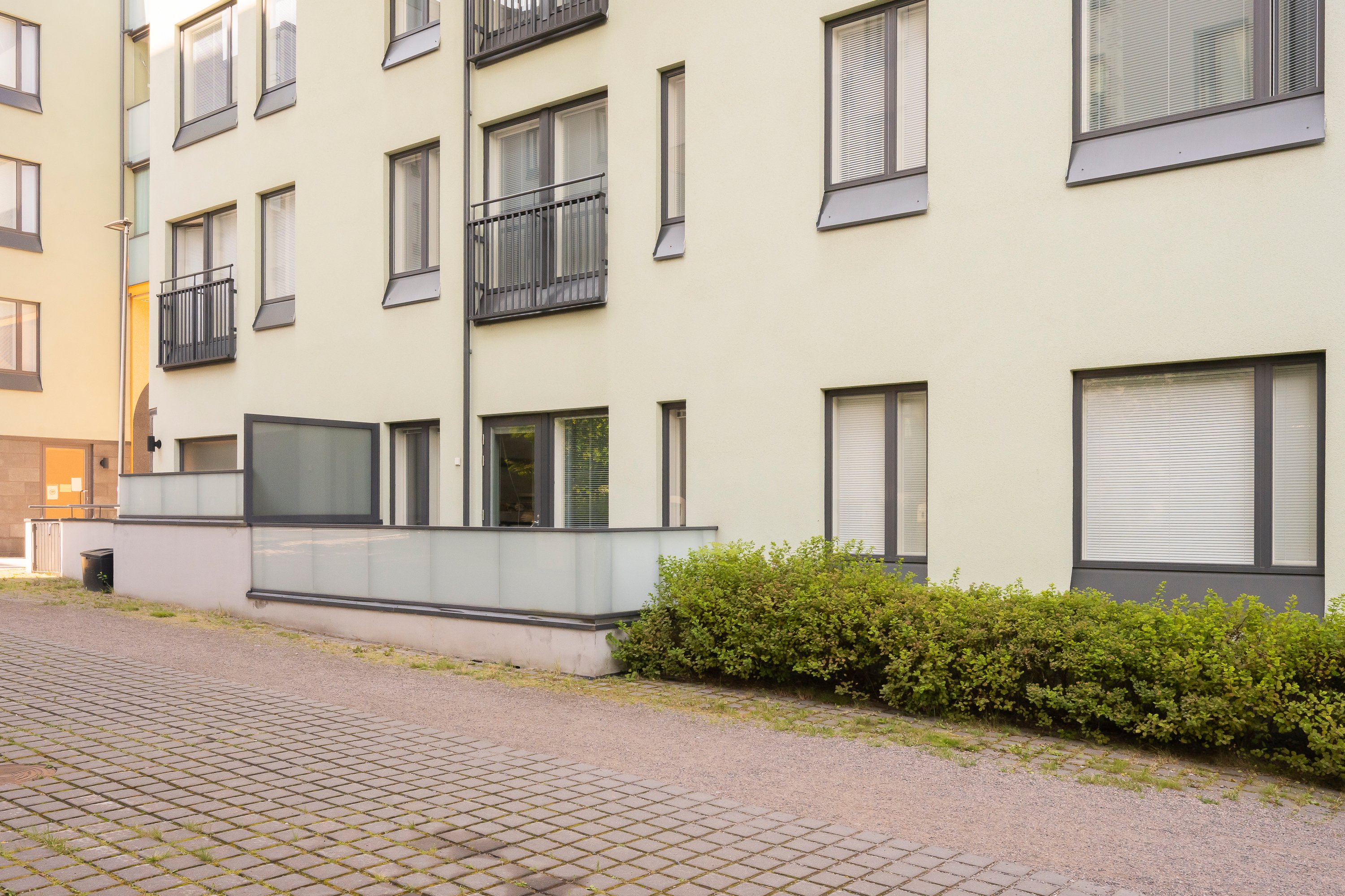 Taloyhtiössä on suojaisa piha-alue, joka tuo lisämukavuutta arkeen: rauhallisuus, oma terassi, mahdollisuudella nauttia ulkoilmasta.
