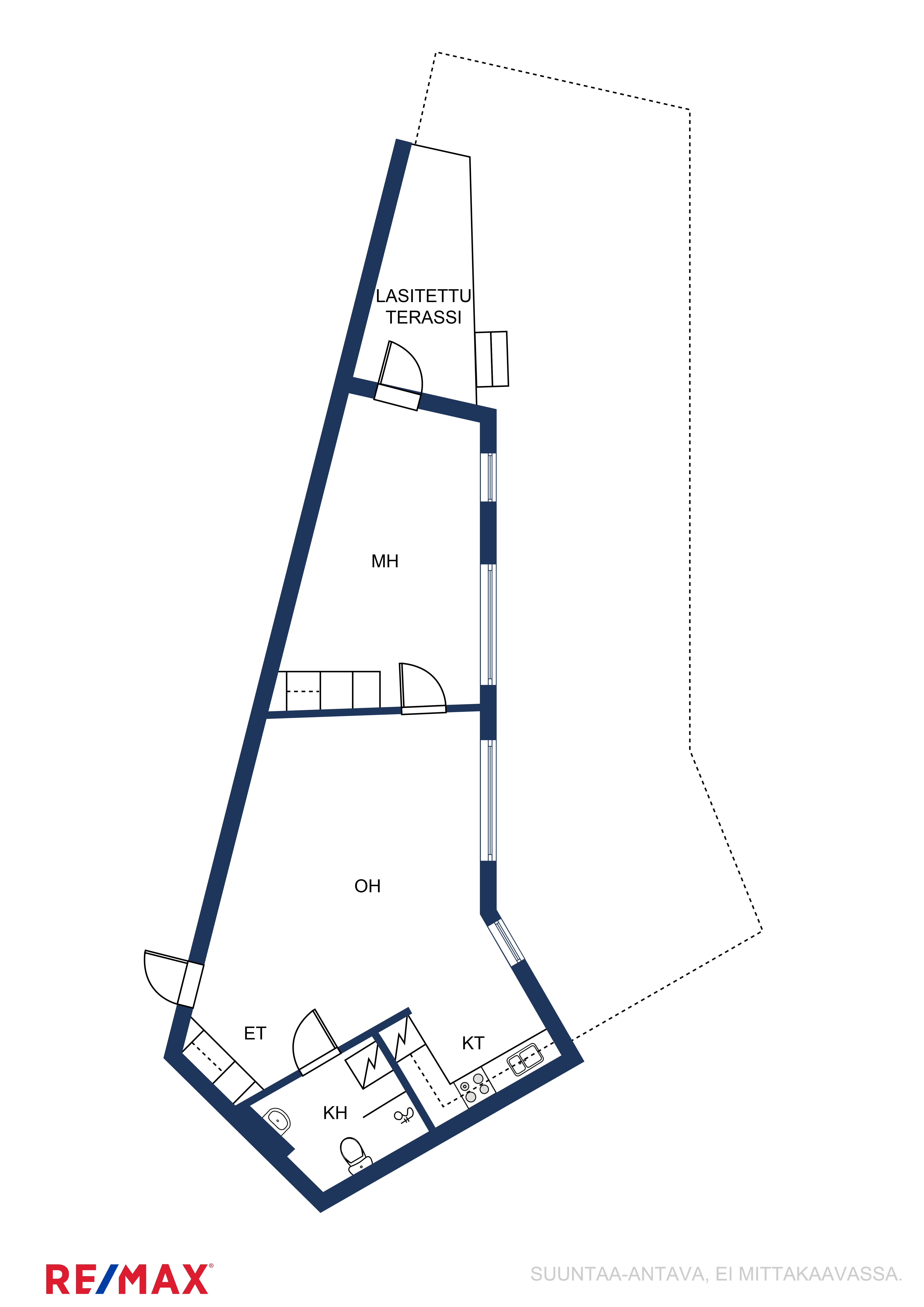 Asunto sijaitsee ensimmäisessä kerroksessa ja sen 54,5 neliötä tarjoavat mukavasti tilaa elämiseen. Asunnon lattiat ovat kaunista laminaattia, ja keittiö on varusteltu nykyaikaisilla laitteilla, kuten jääkaappipakastimella, erillisellä uunilla ja astianpesukoneella. Kylpyhuoneessa on tyylikkäät laatoitetut pinnat sekä liitäntä pesukoneelle. Asuntoon kuuluu lasitettu terassi ja pieni piha-alue.