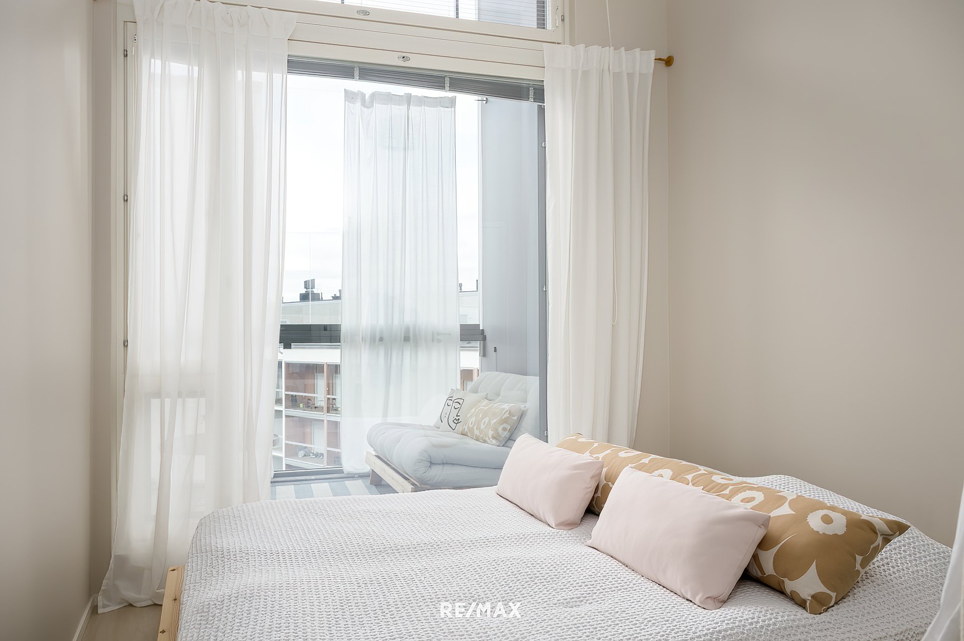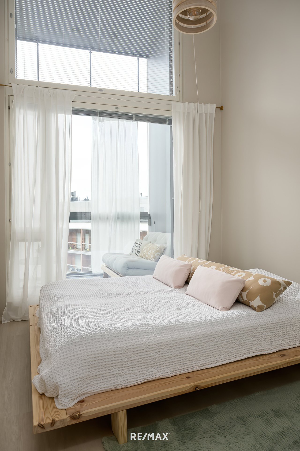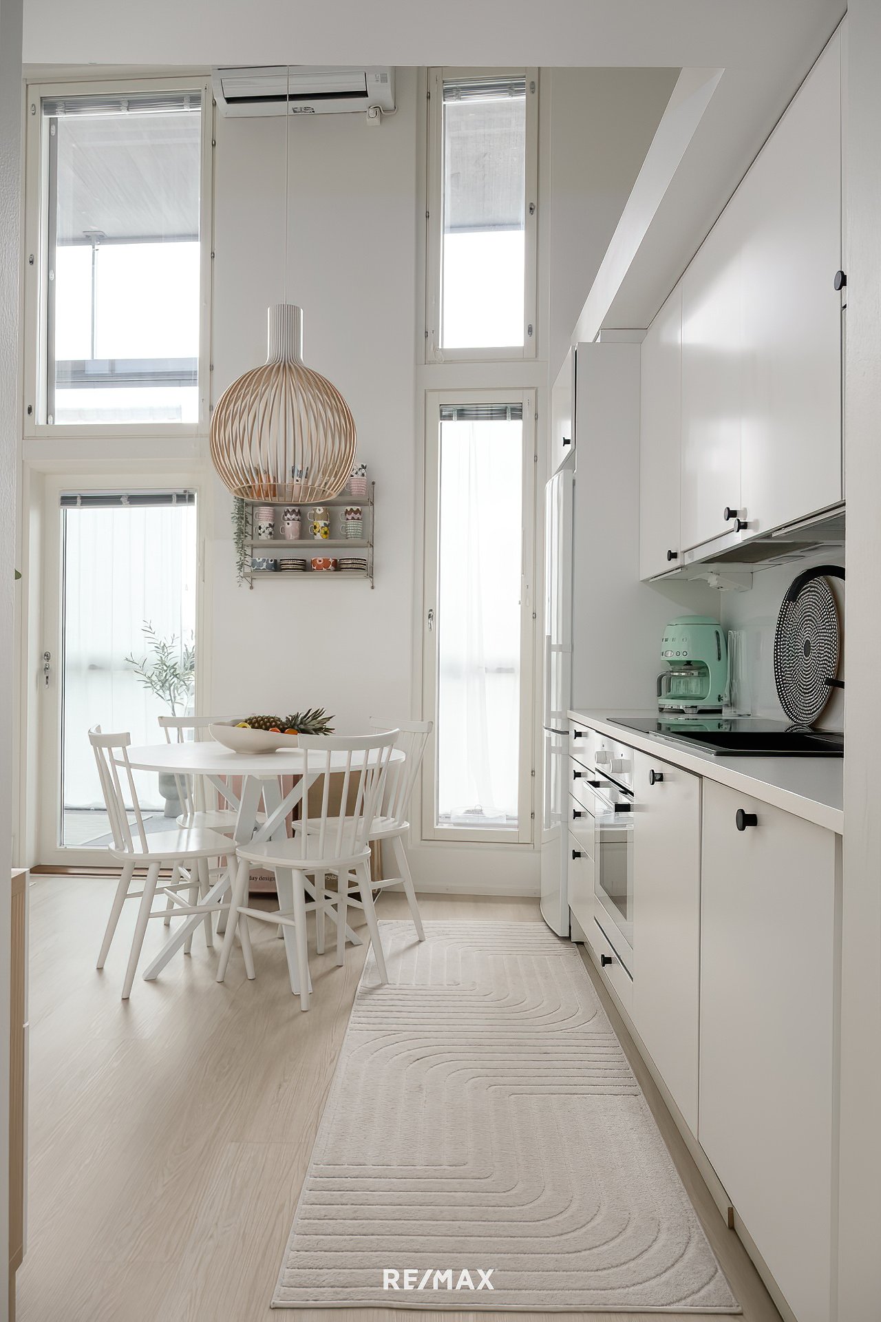 Tässä vuonna 2022 valmistuneessa modernissa kerrostalokodissa yhdistyvät tyylikäs skandinaavinen suunnittelu, laadukkaat materiaalit ja nerokas tilankäyttö. Huoneiston pohjaratkaisu on avara ja valoisa – avokeittiö ja olohuone muodostavat yhtenäisen tilan, josta on käynti lasitetulle parvekkeelle.