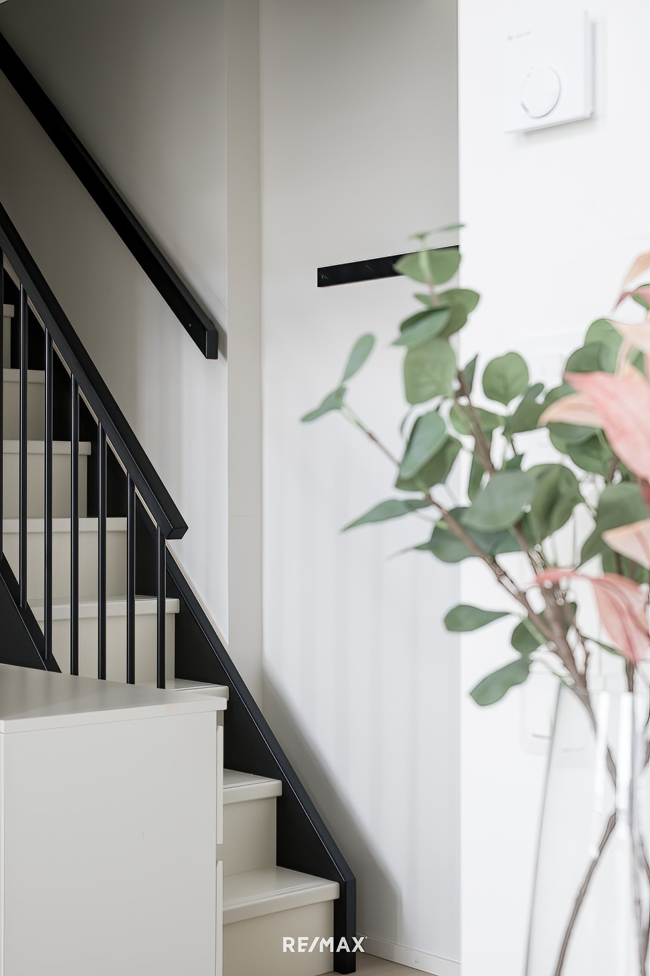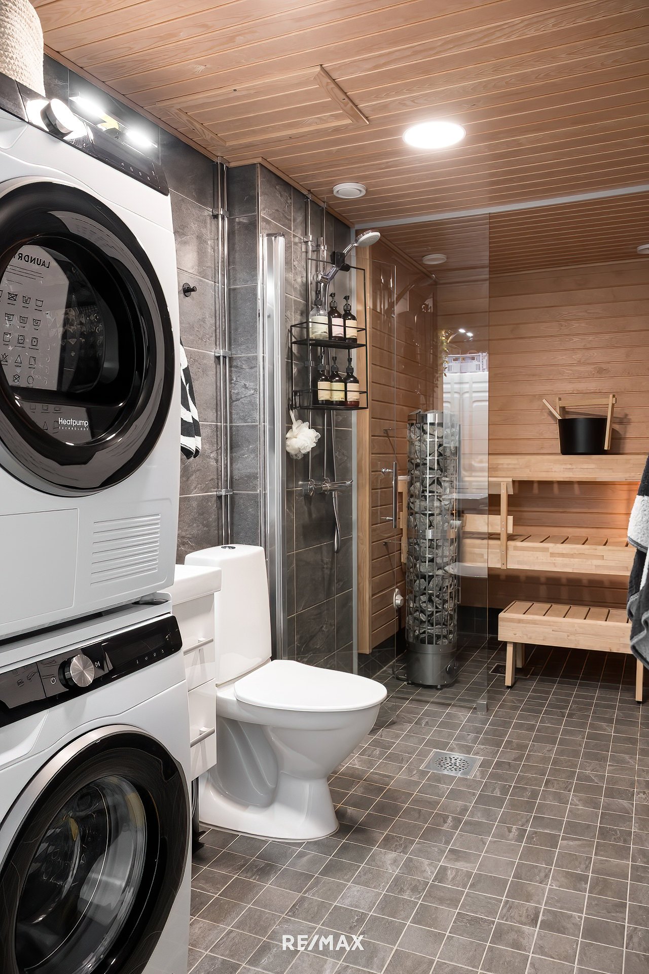 Huikea huonekorkeus ja tyylikäs parvi tuovat kotiin näyttävyyttä ja lisäävät sen monikäyttöisyyttä – parvi soveltuu erinomaisesti esimerkiksi työtilaksi, vierashuoneeksi tai oleskelunurkkaukseksi. Oma sauna viimeistelee asumismukavuuden ja tarjoaa mahdollisuuden nauttia arjen luksuksesta omassa kodissa.