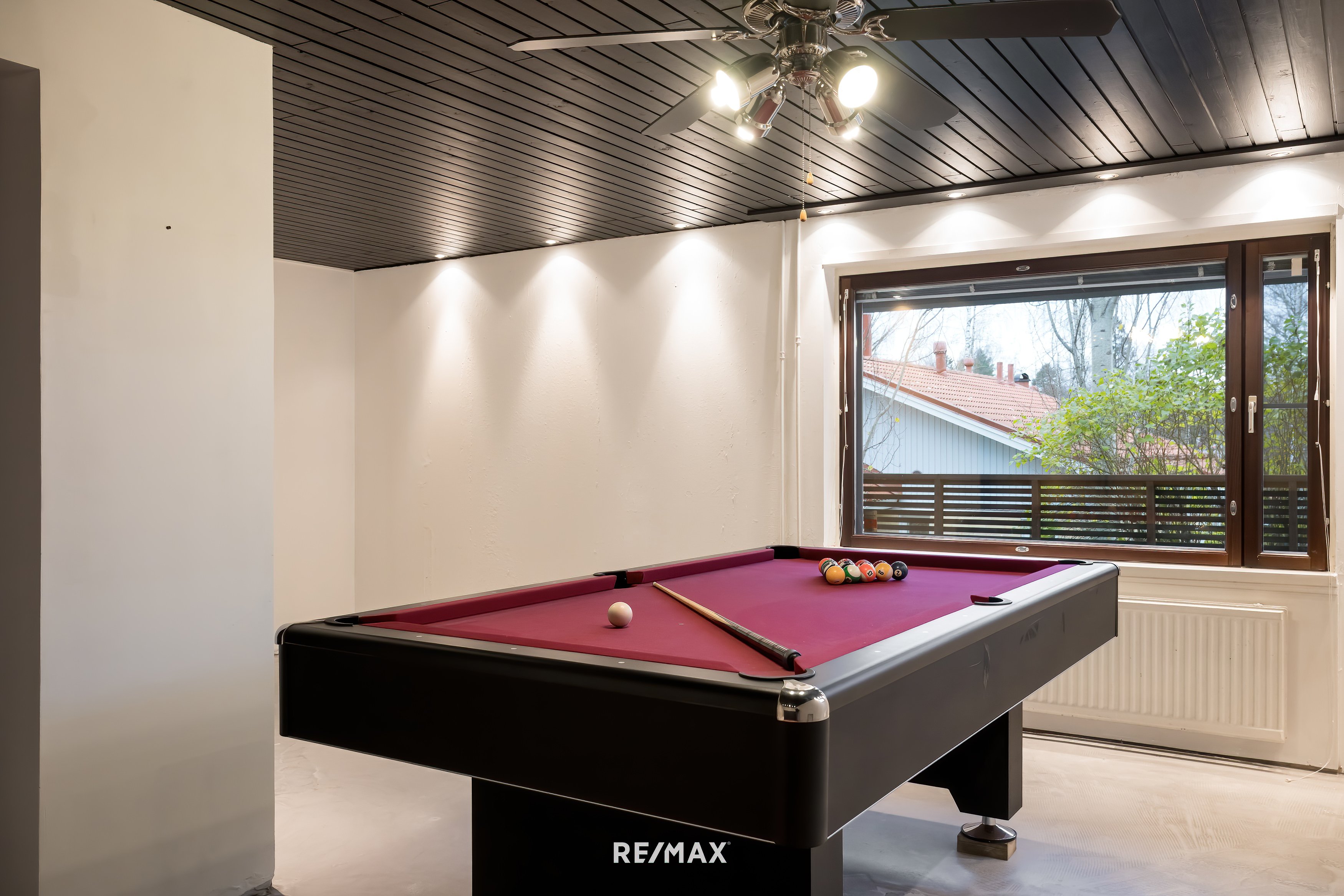 Kolme makuuhuonetta tarjoavat perheenjäsenille oman sopen rentoutua. Ajattoman vaalea, vuonna 2016 remontoitu keittiö kutsuu kokkailemaan ja kokoontumaan yhdessä. Avarassa olohuoneessa persoonallisen kaunis takka luo tunnelmaa talvi-iltoihin ja alakerran takkahuone puolestaan johdattaa saunan ja pesutilojen puolelle. Koti tarjoaa myös monipuolisia tiloja harrastuksille ja yhdessäololle: askarteluhuone ja oma viihde-/biljardihuone antavat mahdollisuuksia niin leppoisille peli-illoille kuin luovuuden hetkille. Kaksi erillistä wc:tä molemmissa kerroksissa on käytännöllinen arjen kiireessä. Päivän päätteeksi voit hurauttaa auton talliin ja pihaan mahtuu silti vielä kaksi autoa.