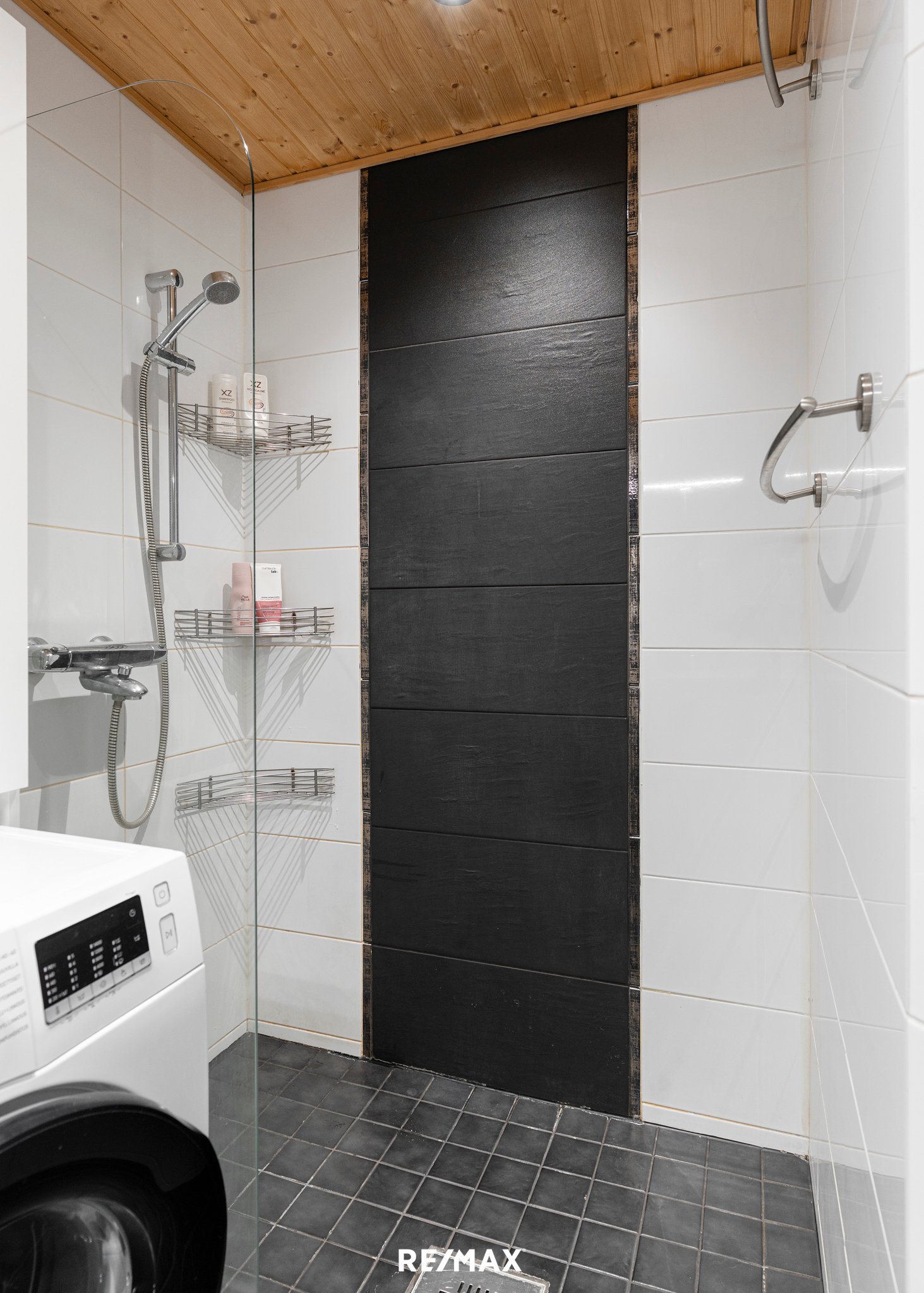 Kylpyhuone on remontoitu ja siellä on runsaasti säilytystilaa. Myös saunan pintoja on osin päivitetty. Ilmojen viiletessä mikä onkaan mukavampaa kuin oma sauna?