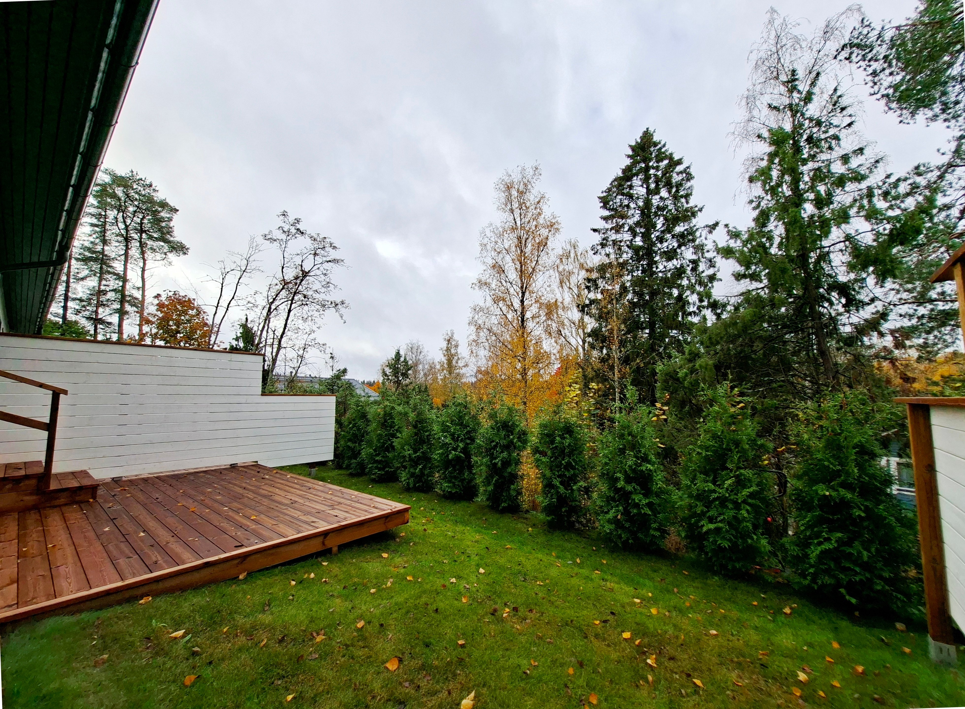 Olohuoneesta avautuvat kauniit näkymät vehreään ympäristöön, ja terassi tarjoaa mukavan paikan nauttia ulkoilmasta. Sauna on varustettu Harvian tornikiukaalla ja lasiseinällä. Sadesuihku kylpyhuoneessa tietenkin.