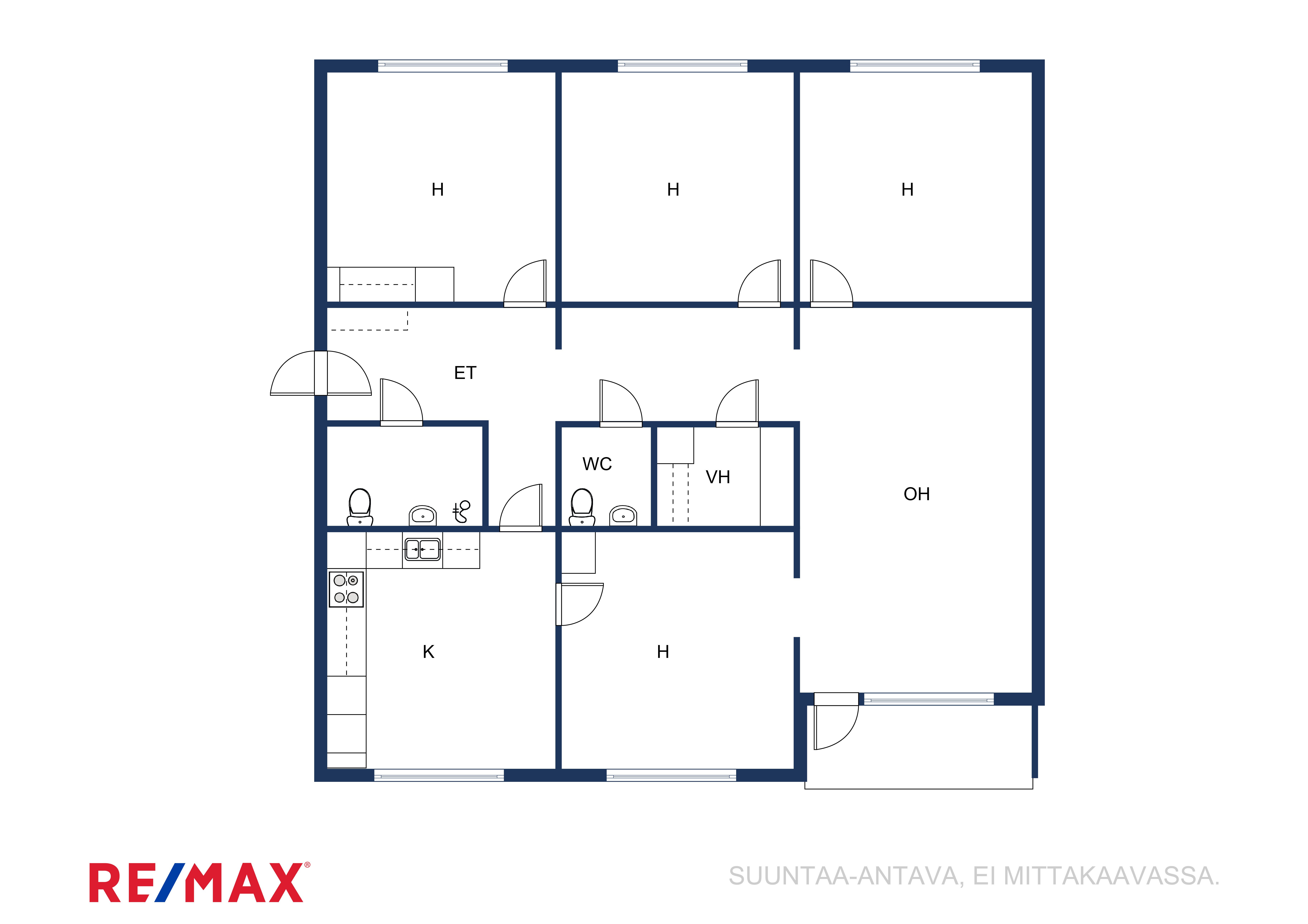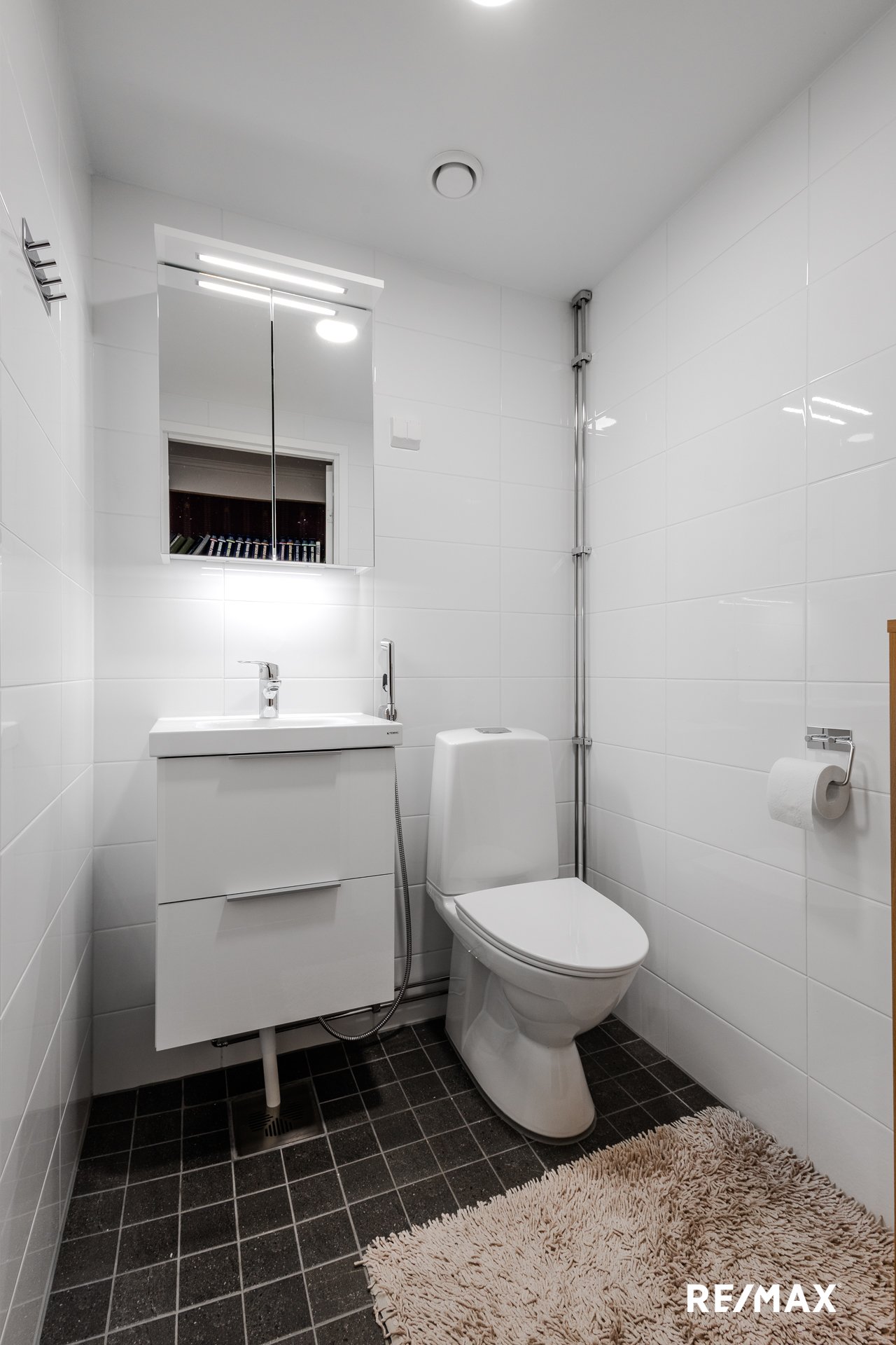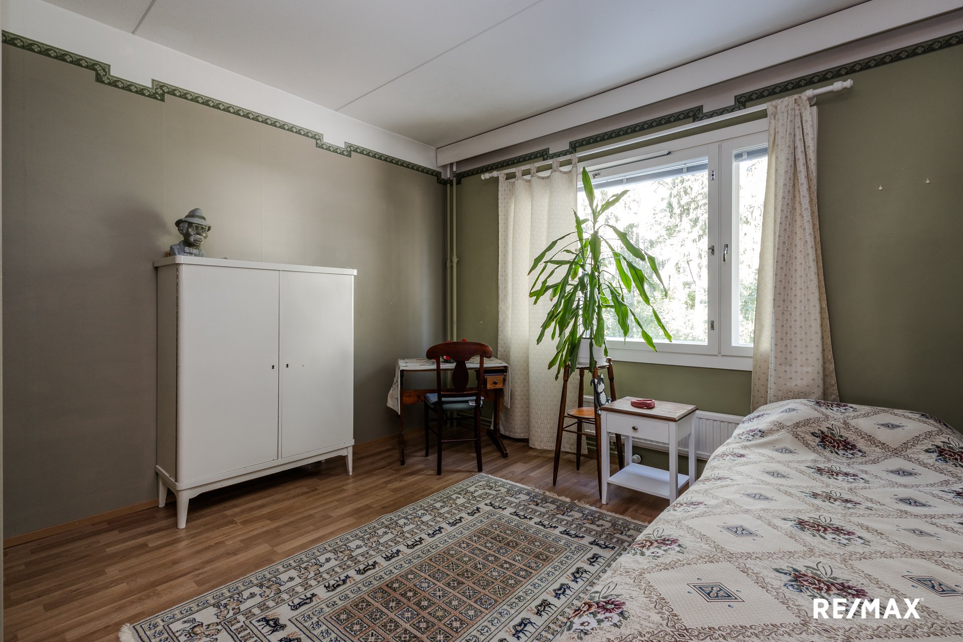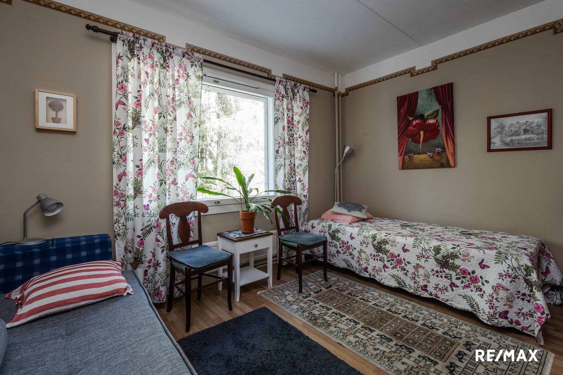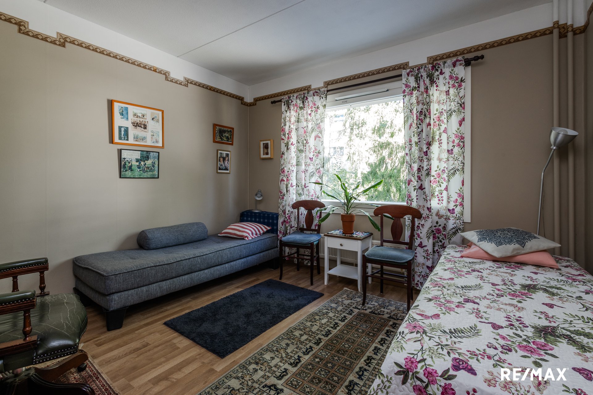 Asunnossa on kolme makuuhuonetta, joten tilaa riittää suuremmallekin perheelle. Neljäs makuuhuoneeksikin sopiva on tällä hetkellä sisustettu ruokailuhuoneeksi. Täällä on erikseen kylpyhuone ja erillinen WC, jotka on remontoitu putkiremontin yhteydessä.