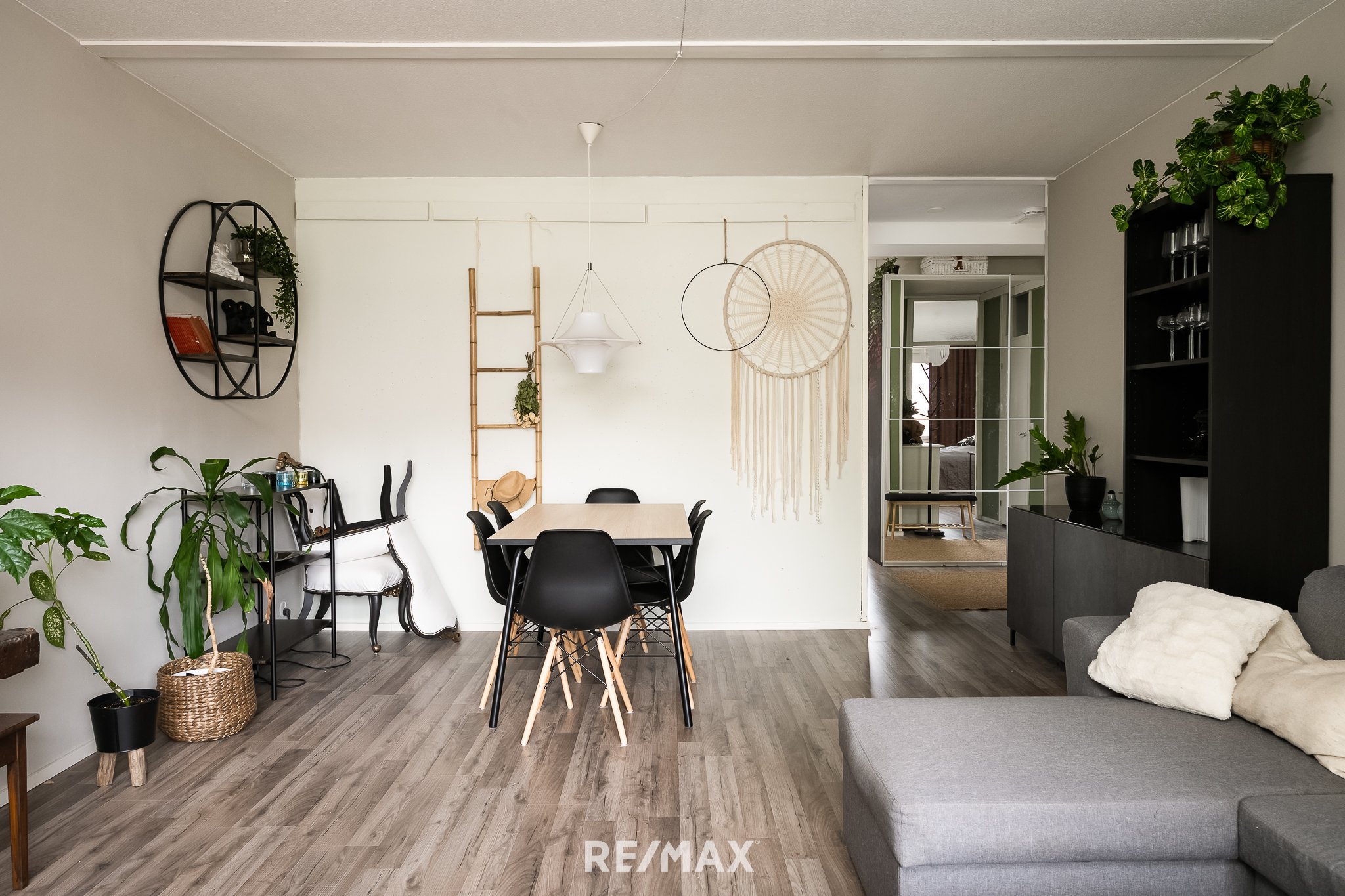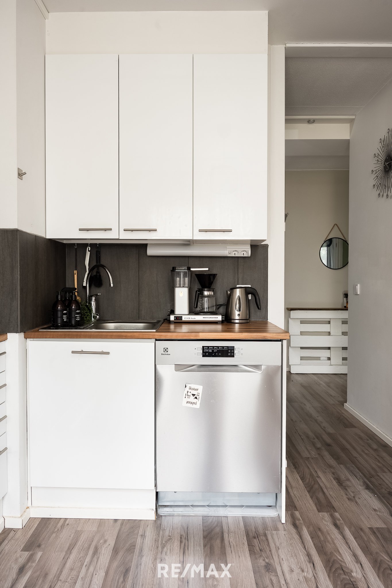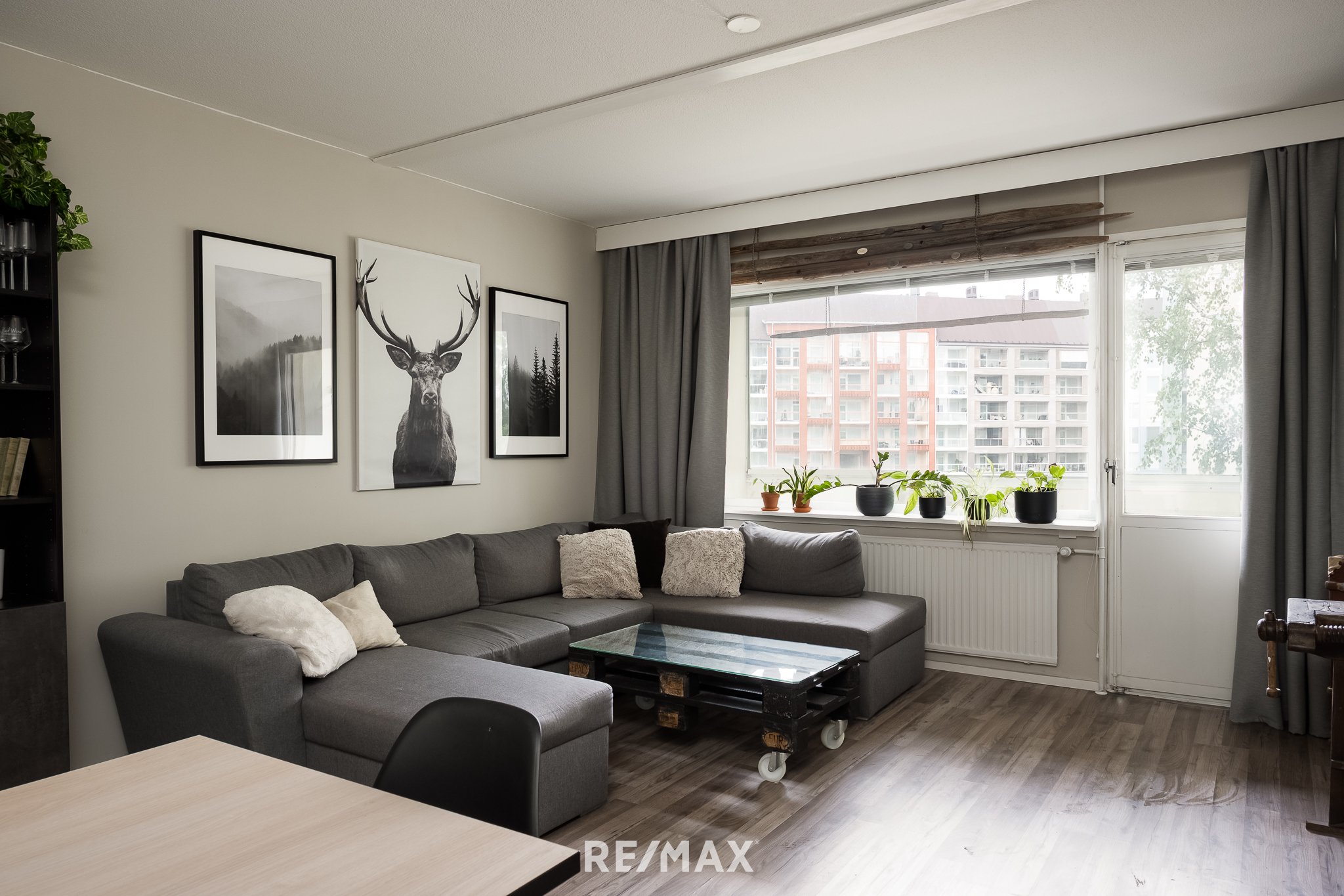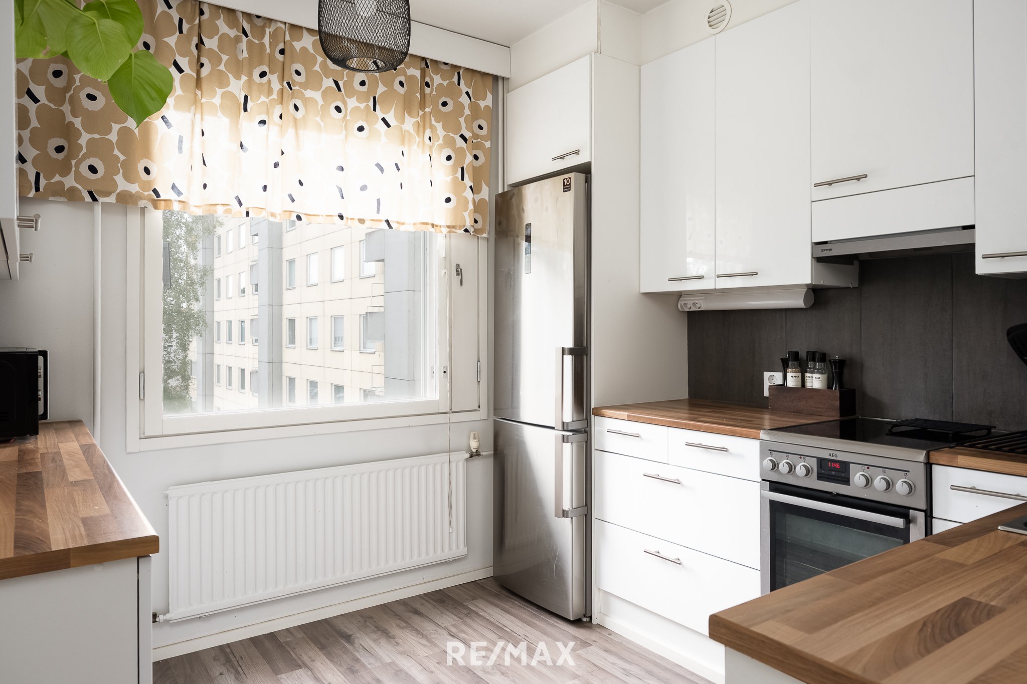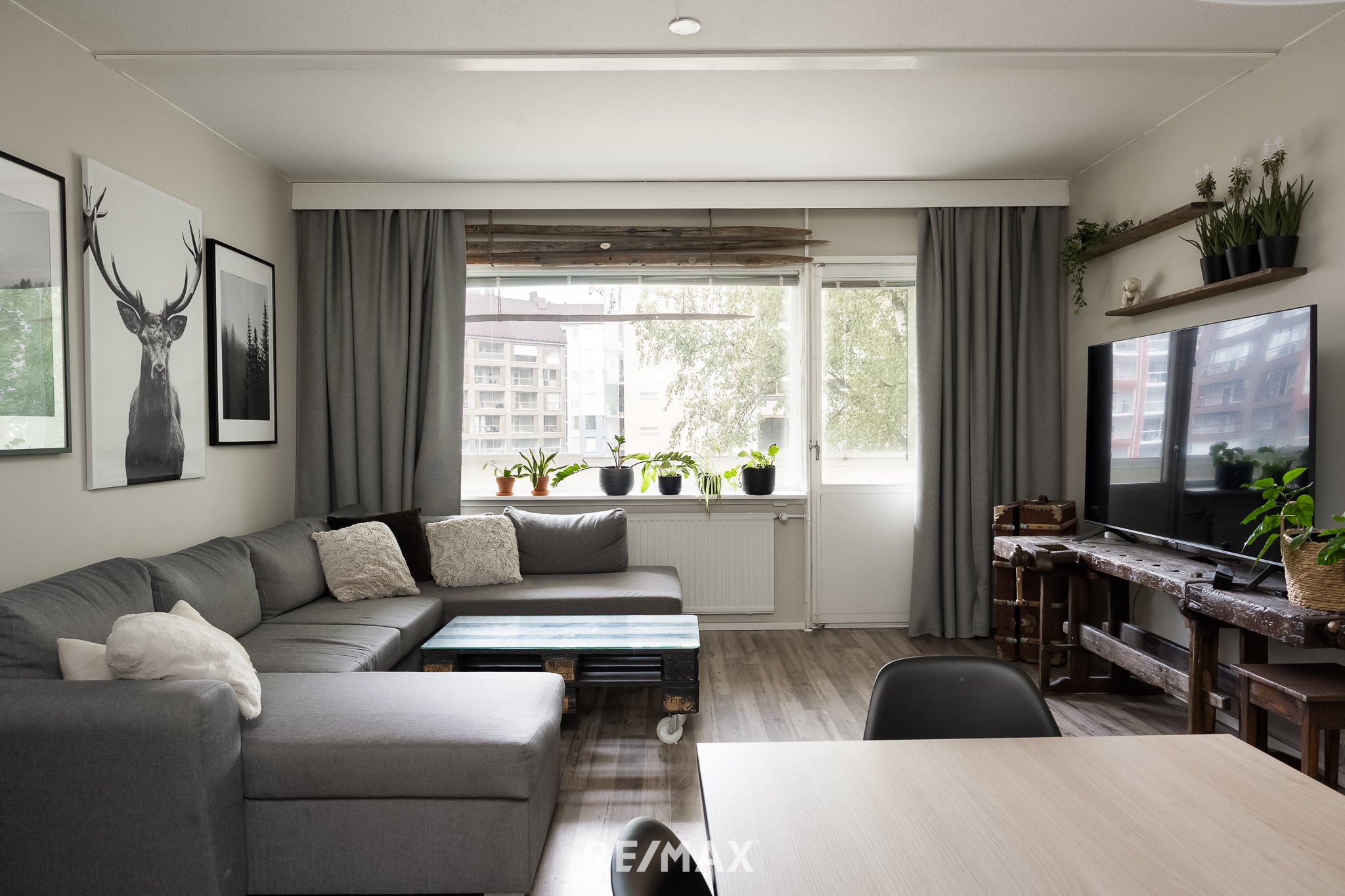 Asunto on siistissä kunnossa ja sen tilava olohuone sekä vaalea keittiö rosterisilla kodinkoneilla tekevät arjesta sujuvaa. Kylpyhuone on remontoitu putkiremontin yhteydessä ja sieltä löytyy kaikki tarvittava. Kaksi makuuhuonetta, joista toisessa vaatekaapistot, tarjoavat mukavasti tilaa perheelle tai työtilaksi.