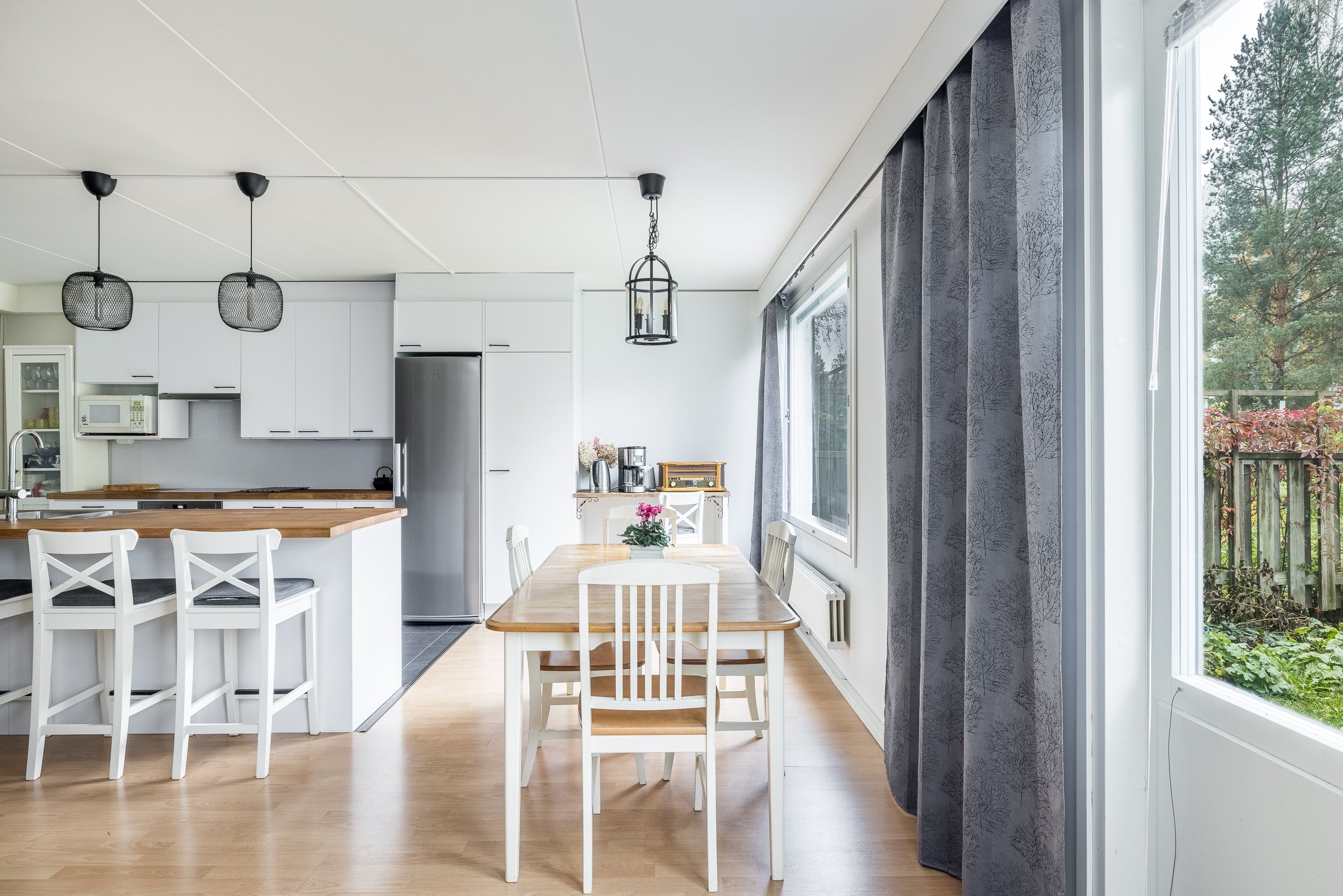 Tässä kodissa on peräti viisi hyvänkokoista makuuhuonetta, avokeittiö ja olohuone, josta kulku omalle suojaisalle takapihalle. Kodin pintoja on uusittu 2021, joten tähän kotiin voit muuttaa ilman remonttihuolia. Keittiön saareke, puutasot ja vaaleat pinnat rosterikoneineen tekevät ruoanlaitosta nautinnon.