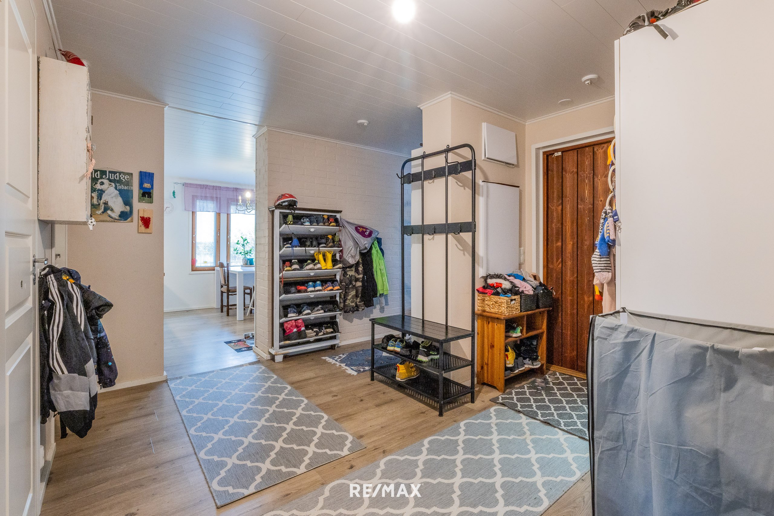 Takkahuoneeseen, eteiseen ja tuulikaappiin on teetetty vuosina 2021-2022 sisäpintojen täyskunnostus. Varaava takka. Käyntiovi pihalle.