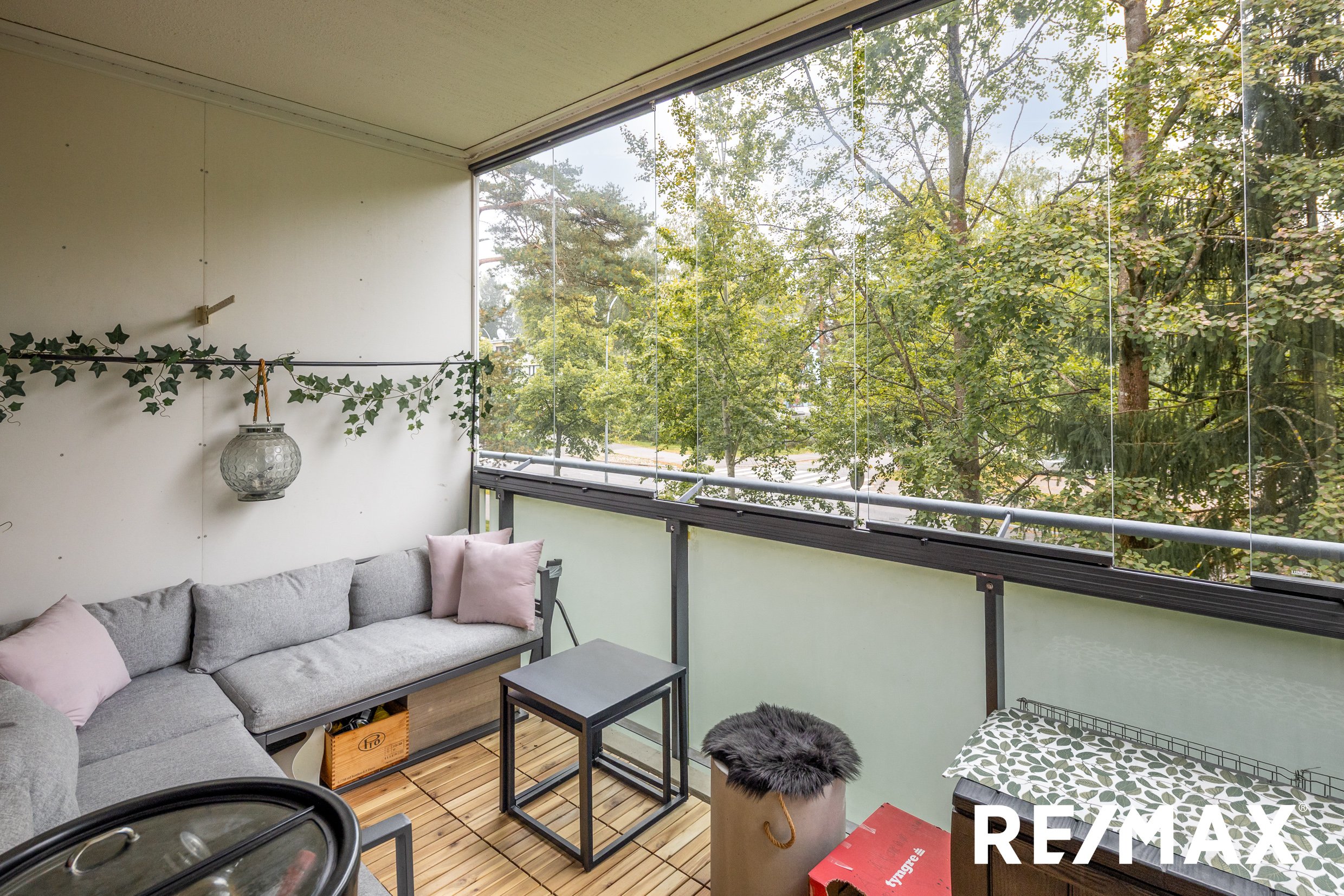 Asunto on toisessa kerroksessa ja siinä on lasitettu parveke etelään, mikä tuo runsaasti luonnonvaloa sisään. Keittiö on 10/2023 uusittu, ja sieltä löytyy modernit kodinkoneet, kuten jääkaappipakastin ja astianpesukone.