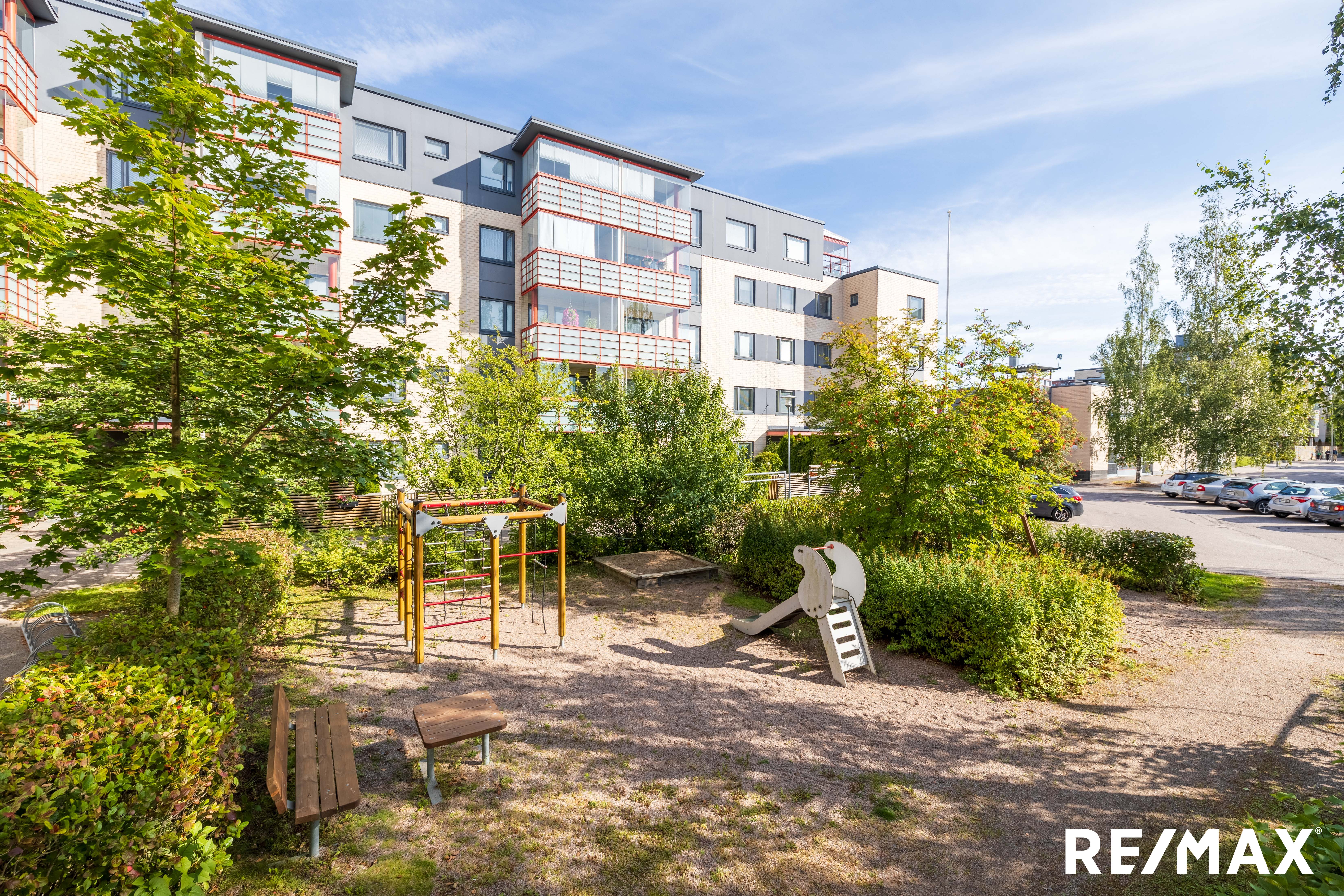 Sijainti on erinomainen, sillä kaikki tarvittavat palvelut ovat lähellä. Päiväkodit, koulut ja oppilaitokset ovat kävelyetäisyydellä, ja Myyrmäen loistavat liikenneyhteydet tekevät liikkumisesta helppoa. Bussipysäkki ja juna-asema ovat lähellä, mikä takaa sujuvat yhteydet niin Helsingin keskustaan kuin muualle pääkaupunkiseudulle.