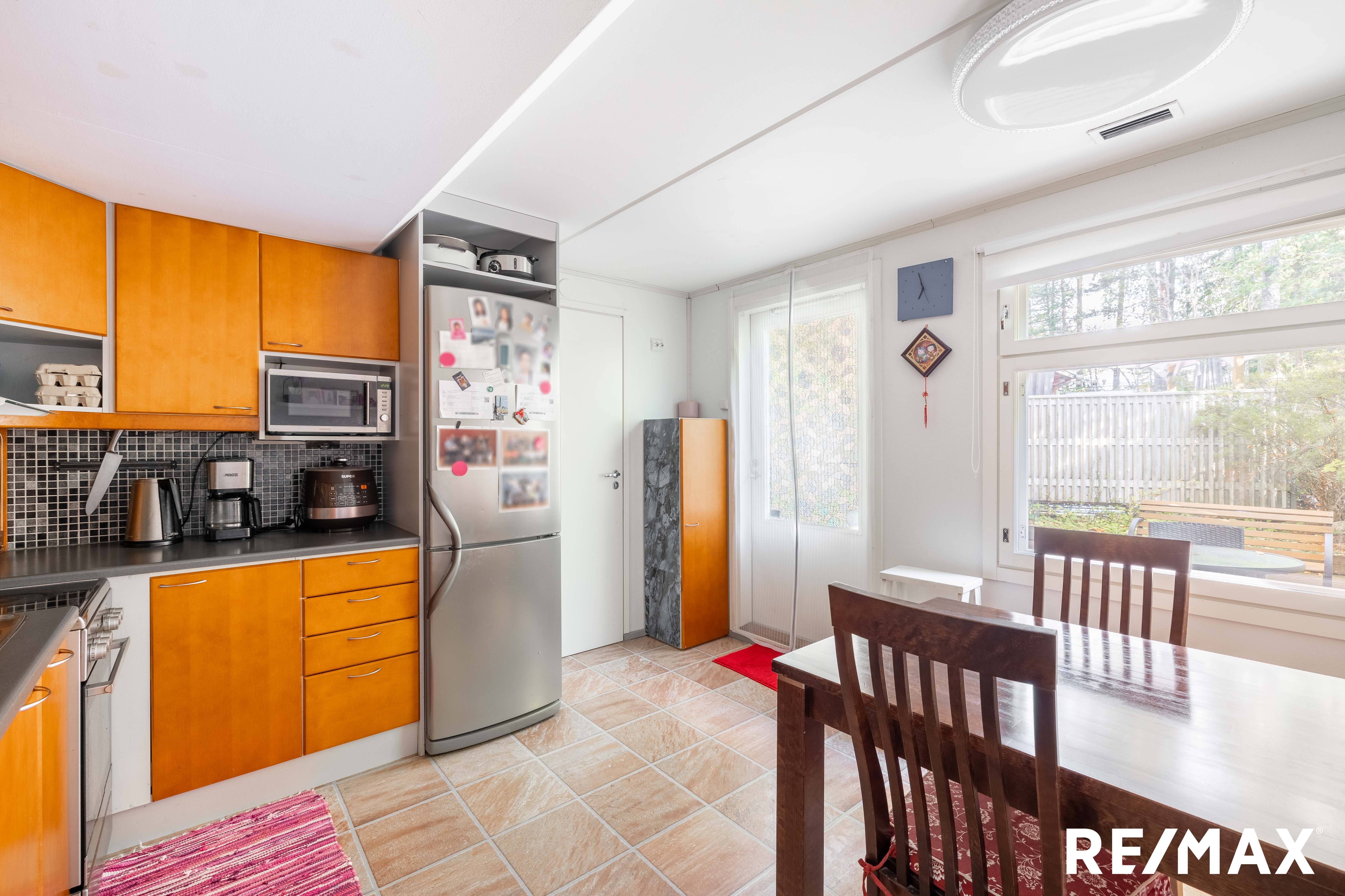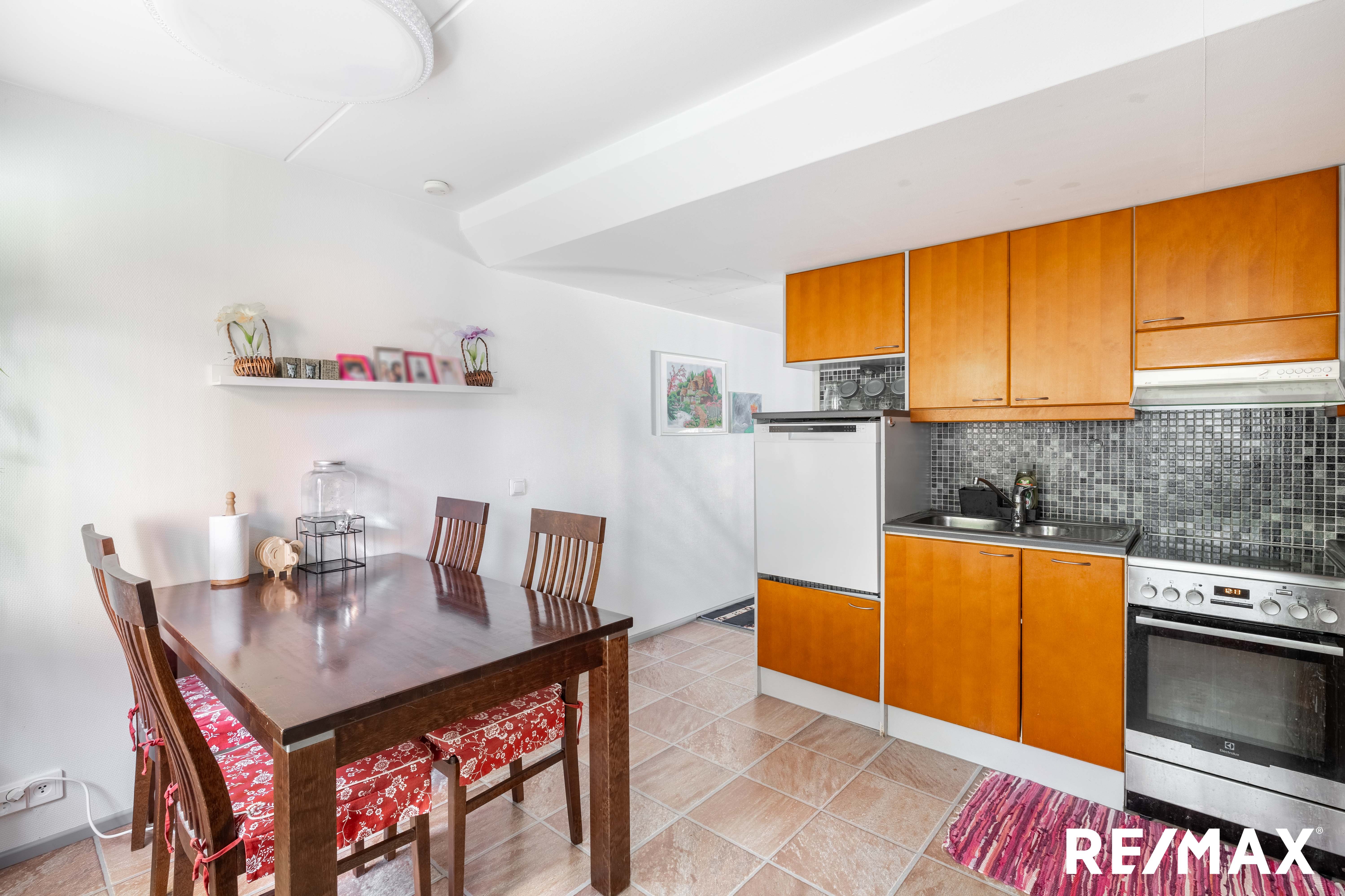 This charming terraced home is located in the quiet and desirable Pähkinärinteen area of Vantaa. The two-story apartment offers a spacious 90 square meters, with three bedrooms, a living room, a separate kitchen and a private sauna. The home is in good condition and its modern materials make it an ideal family home.