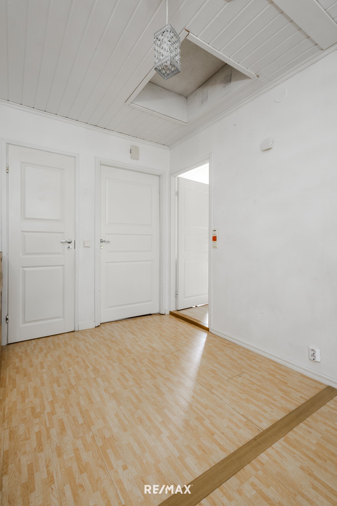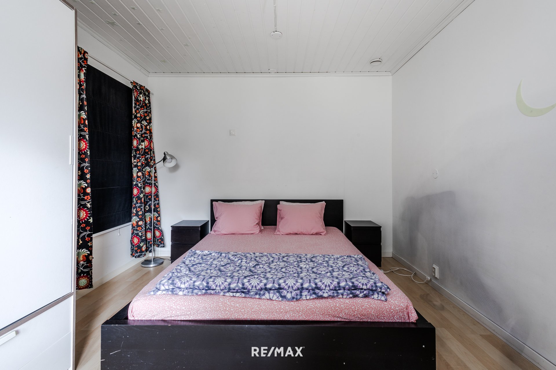 Tämä reilunkokoinen n. 123,50 m2, 4 huoneen kokonaisuus reilun kokoisella käyttöullakolla kaipaa remonttia, mutta hinta on todella kohdillaan! Pohja on käytännöllinen ja mahdollistaa monenlaiset ratkaisut asumiseen. Talosta oli aiemmin erotettu esimerkiksi vuokrakäyttöön soveltuva erillinen pieni asunto omalla keittiöllä, kylpyhuoneella ja sisäänkäynnillä. Nykyiset omistajat ovat sittemmin purkaneet ylimääräisen keittiön ja erillistä asuntoa varten rakennetun väliseinän, mutta valmiudet tähän ovat siis olemassa. Käyttöullakko voi toimia lisätilana ja se on toki lämmöneristettävissä, jos niin haluaa.