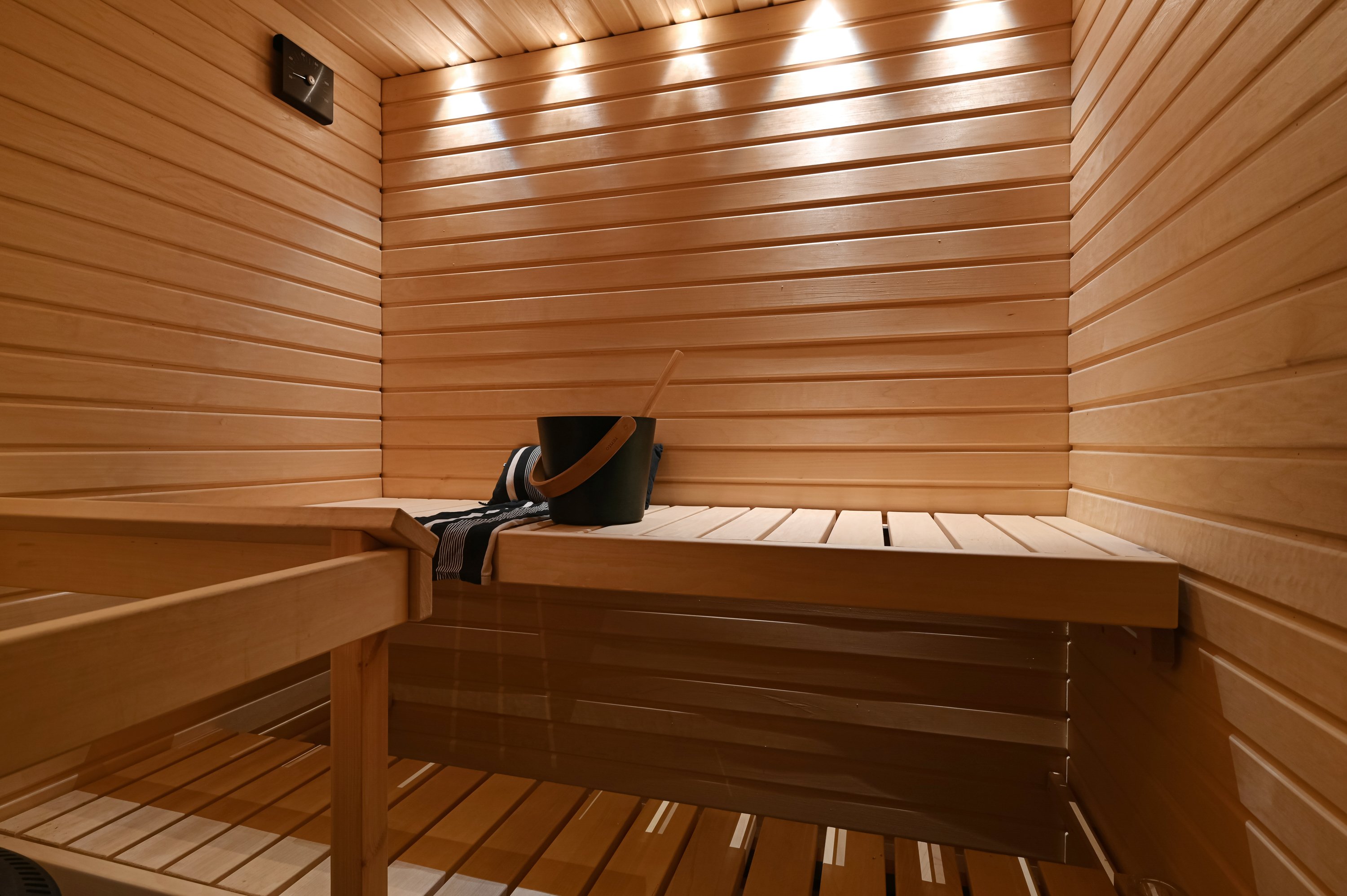 Kylpyhuone on toimiva ja hyvin suunniteltu kokonaisuus, johon mahtuu kaikki tarpeellinen – myös pesutorni. Oman saunan löylyt kruunaavat päivän ja tuovat rentouttavaa luksusta arkeen.