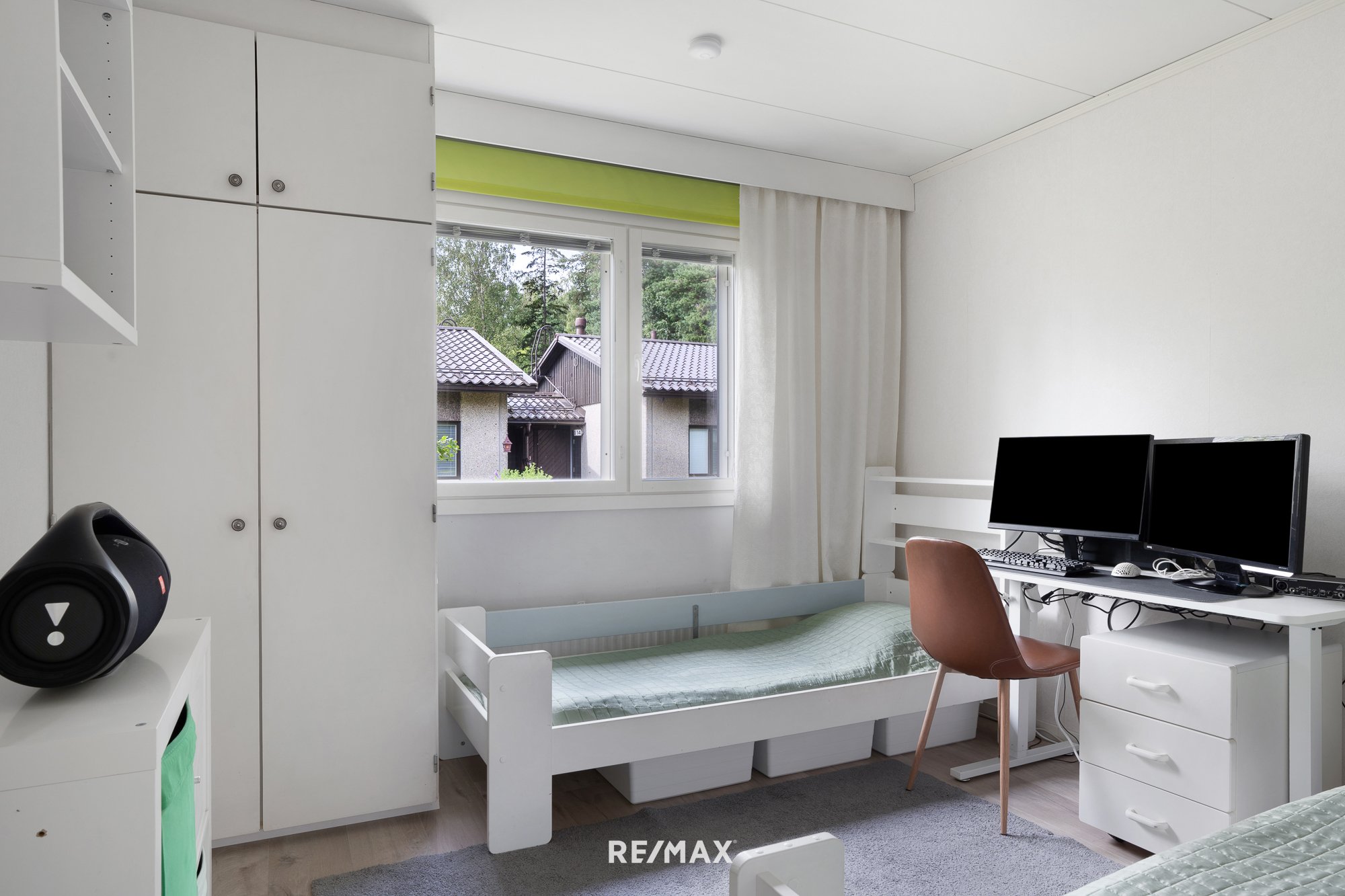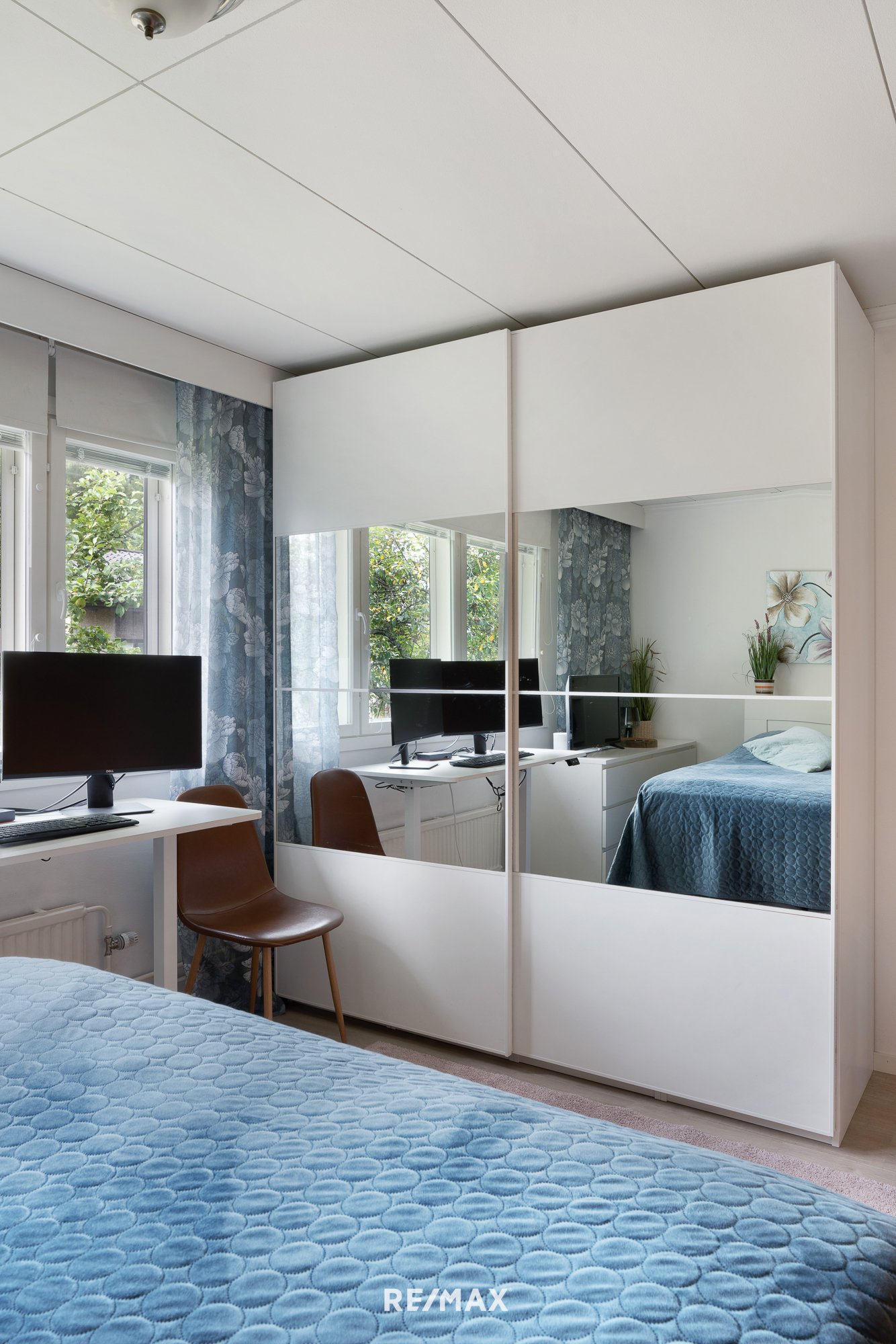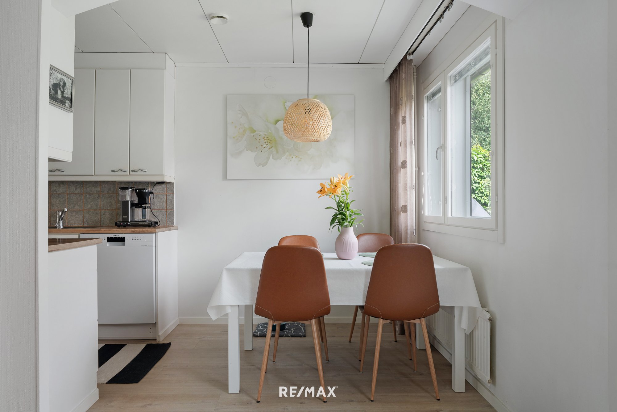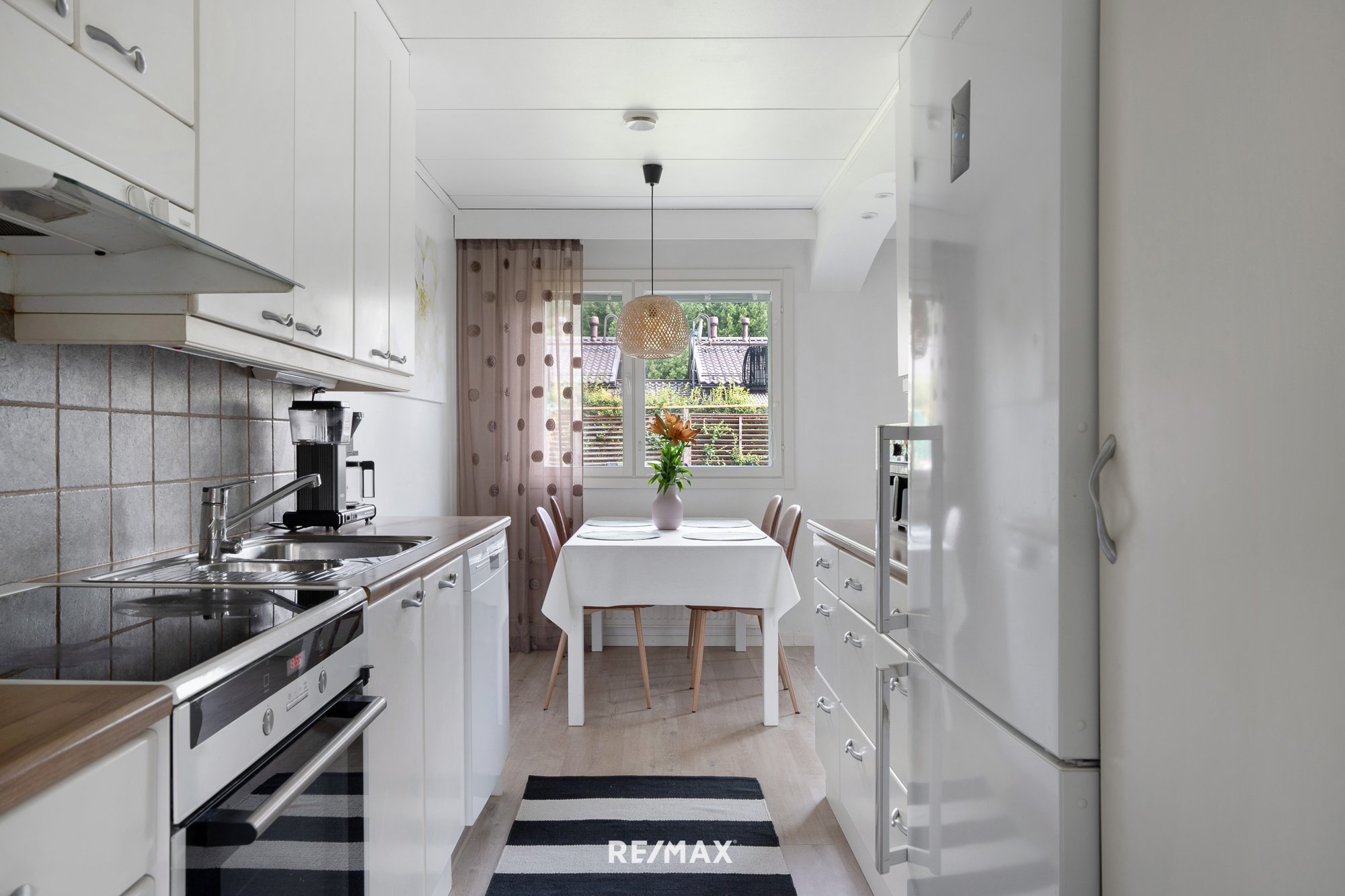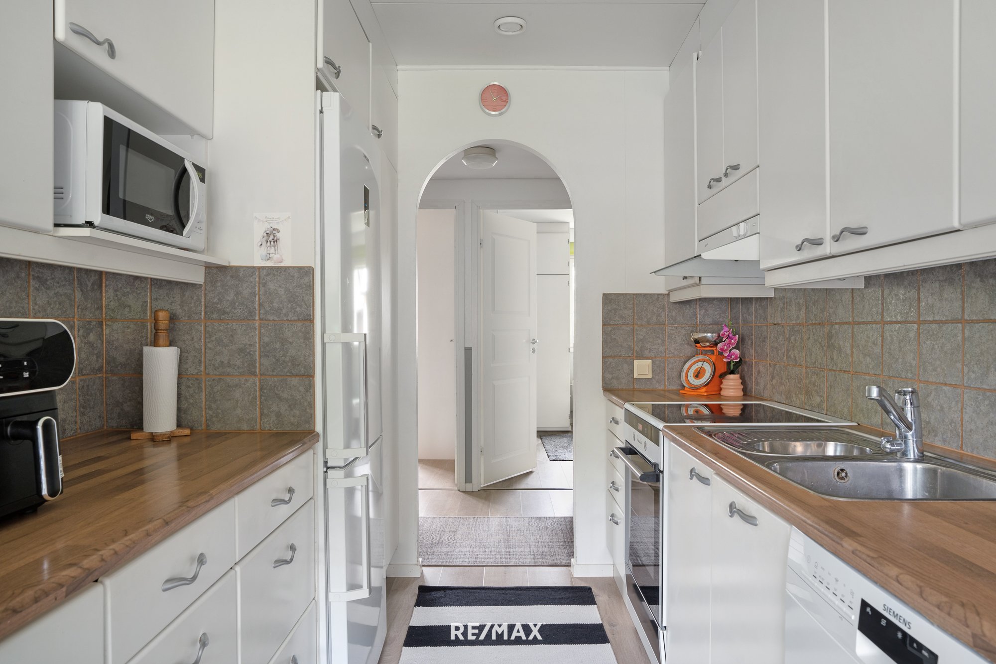 Tämä yksitasoinen, vuonna 1979 valmistunut 75m2 asunto tarjoaa mukavaa asumista rauhallisessa ja lapsiystävällisessä ympäristössä. Asunnossa on kaksi makuuhuonetta, tilava olohuone sekä kodikas keittiö, jossa on reilusti kaappi- ja työskentelytilaa sekä paikka ruokailuryhmälle. Tilava kylpyhuone saunoineen on uusittu vuonna 2019. Kaapistojen lisäksi säilytystilaa löytyy huoneistolle kuuluvasta kylmävarastosta, jonne on käynti kätevästi niin etu- kuin takapihalta.