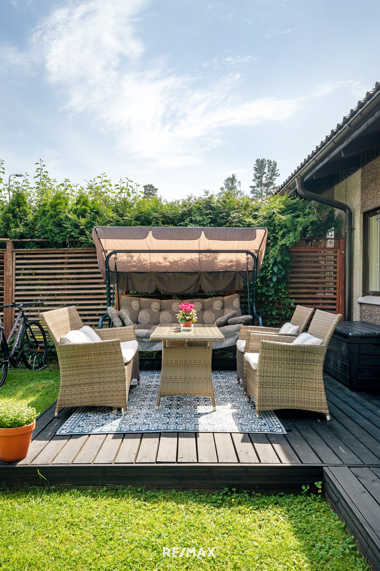 Olohuoneesta on kulku isolle, suojaisalle pihalle ja terassille, jotka tarjoavat loistavat puitteet kesäpäivien ja tunnelmallisten iltojen viettoon. Isona plussana on mahdollisuus autotallin vuokraamiseen yhtiöltä. Omalla tontillaan sijaitseva Asunto Oy Rajalatu on hyvin hoidettu yhtiö, jossa on tehty säännöllisesti tarvittavia kunnostuksia.