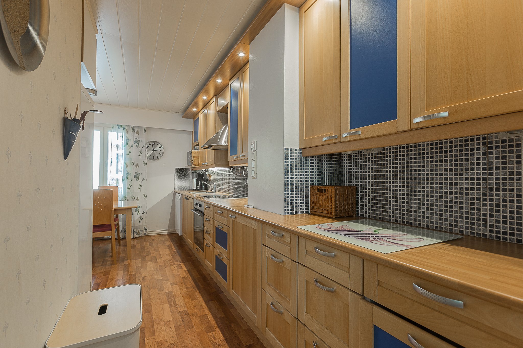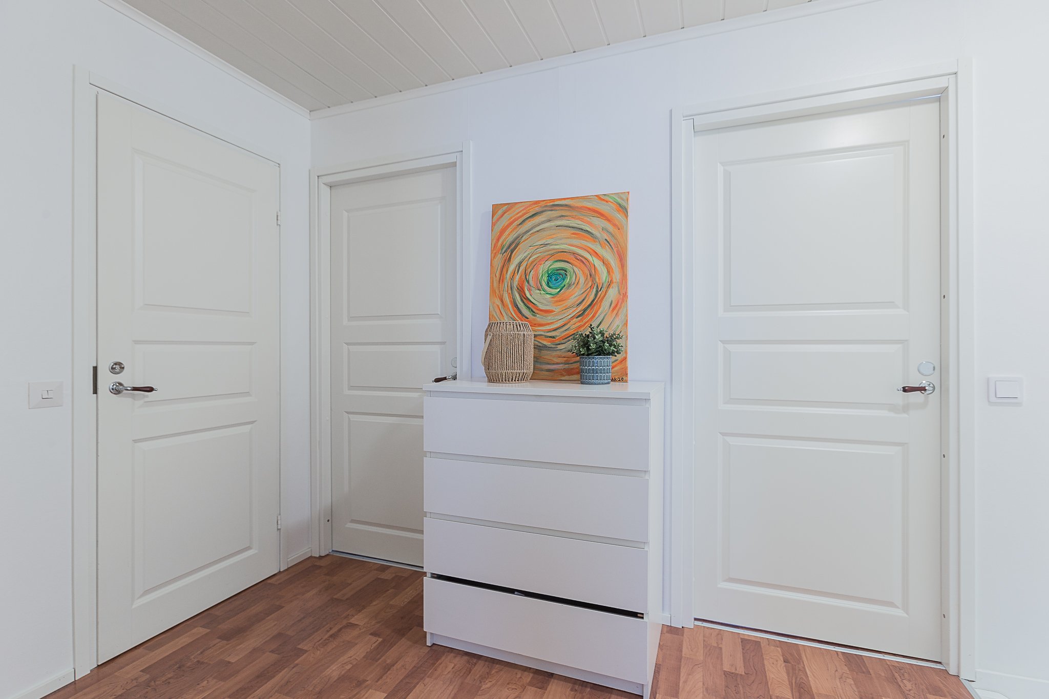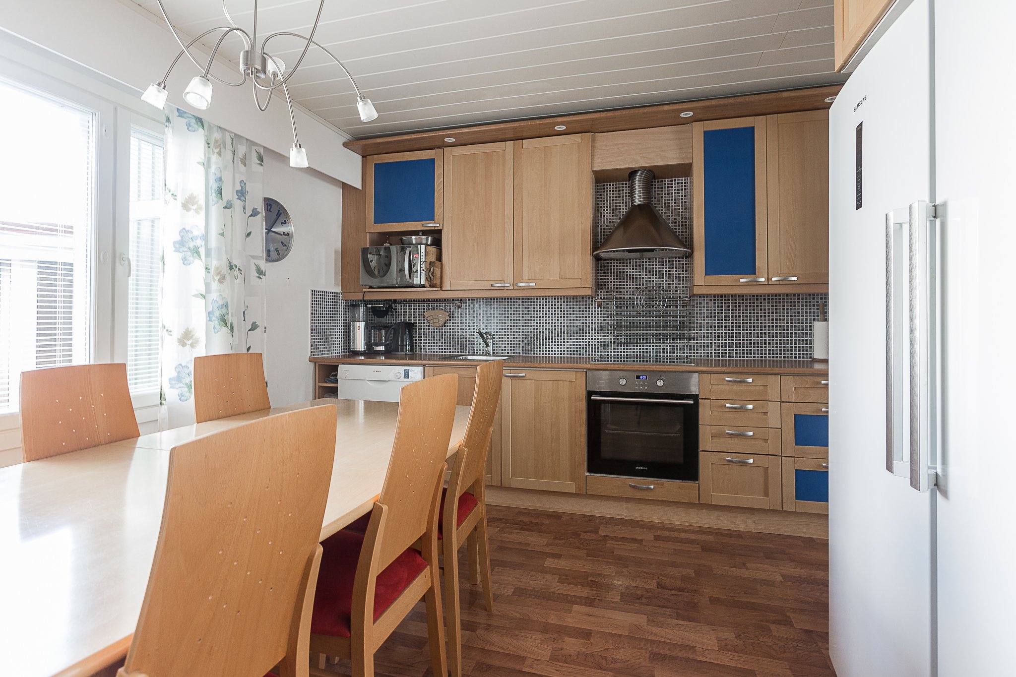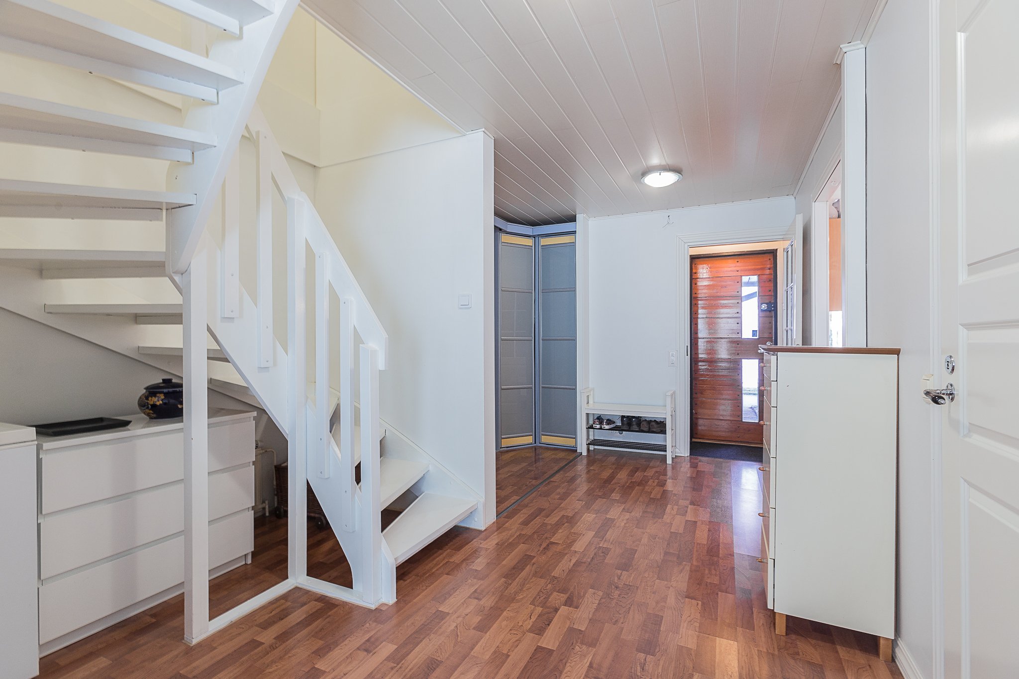 Kotia on remontoitu vuosien varrella: mm. laminaattilattiat, eteisen liukuovikaapisto sekä maalatut portaat, katto- ja seinäpinnat luovat raikkaan ilmeen.