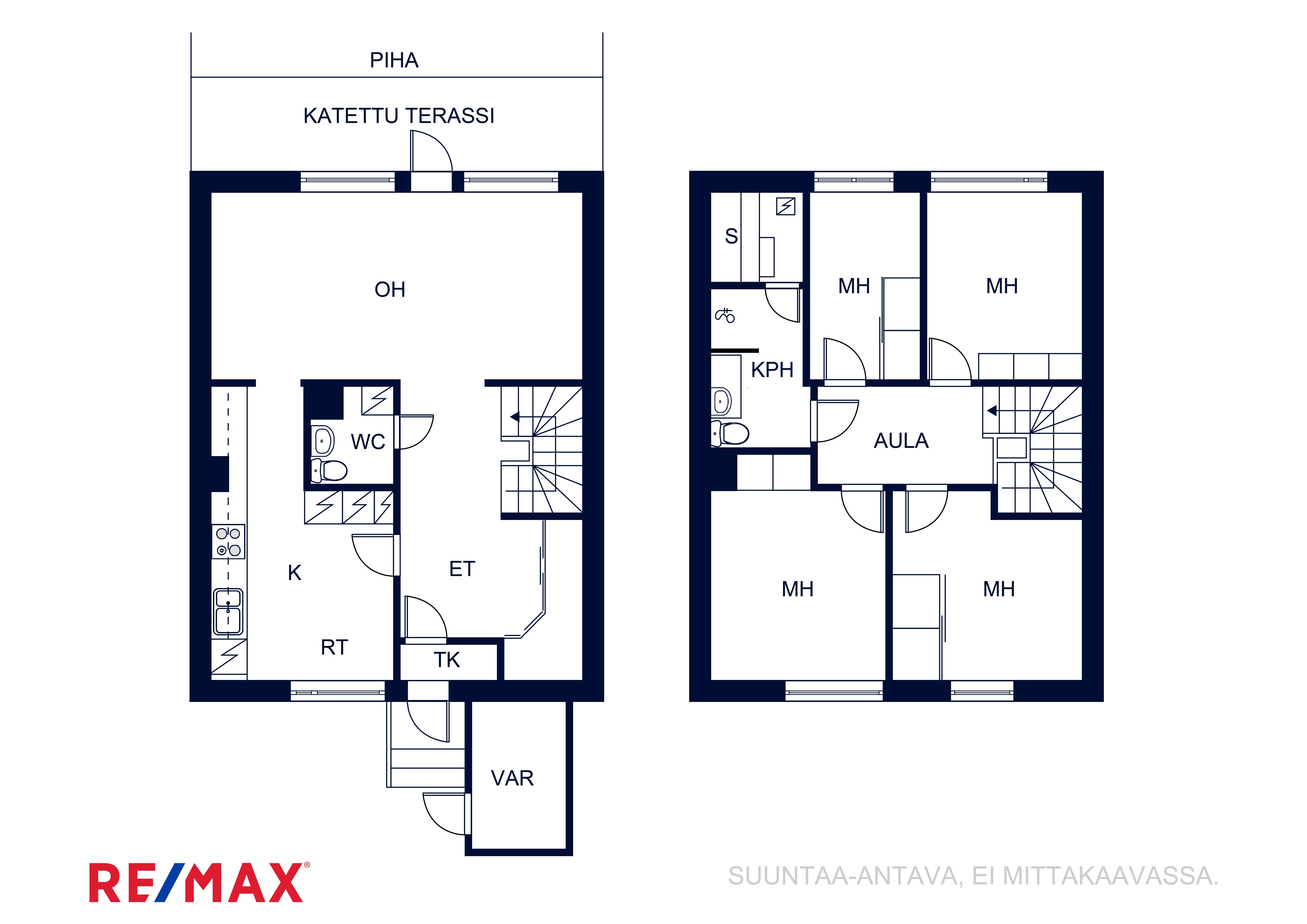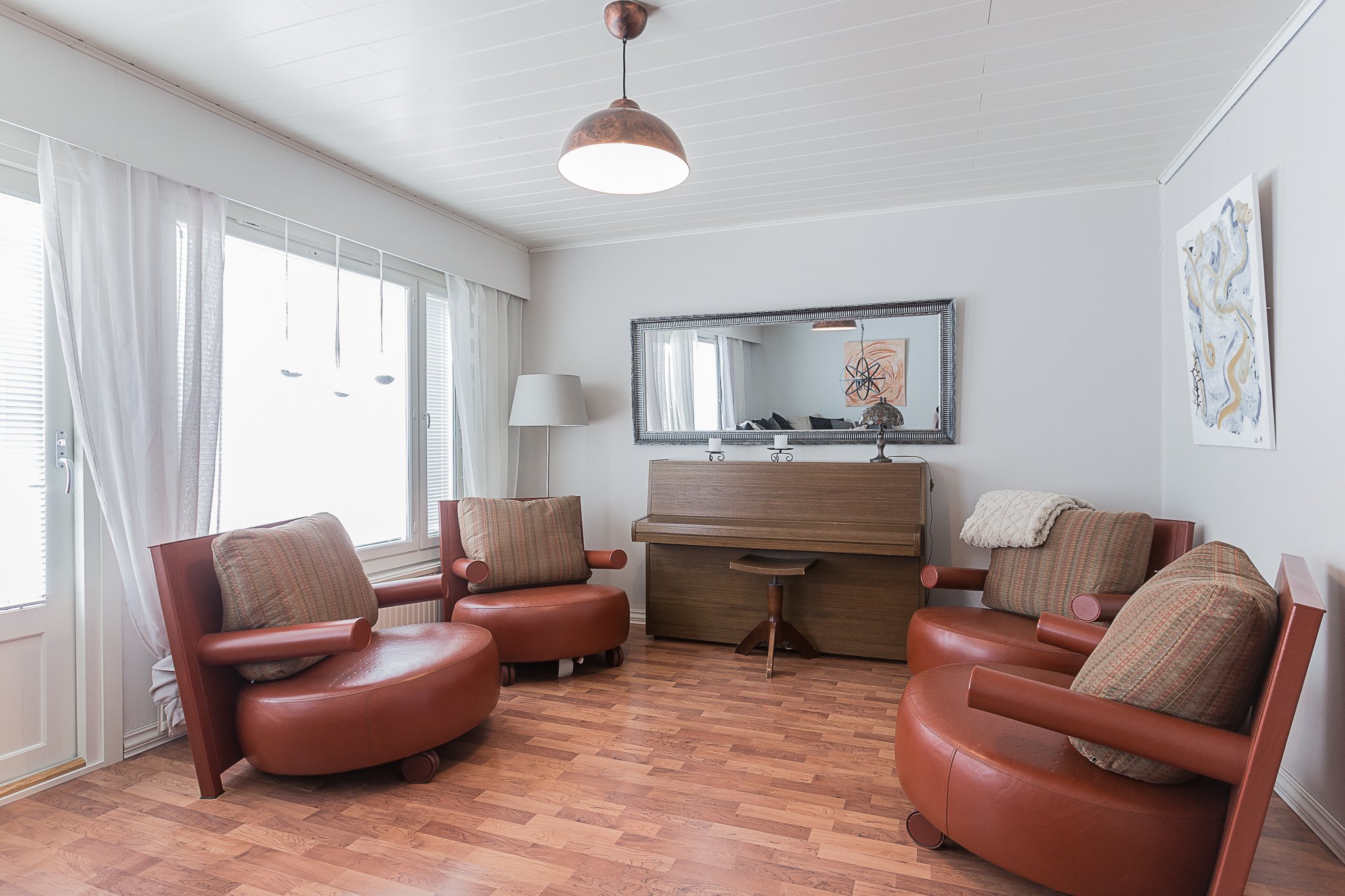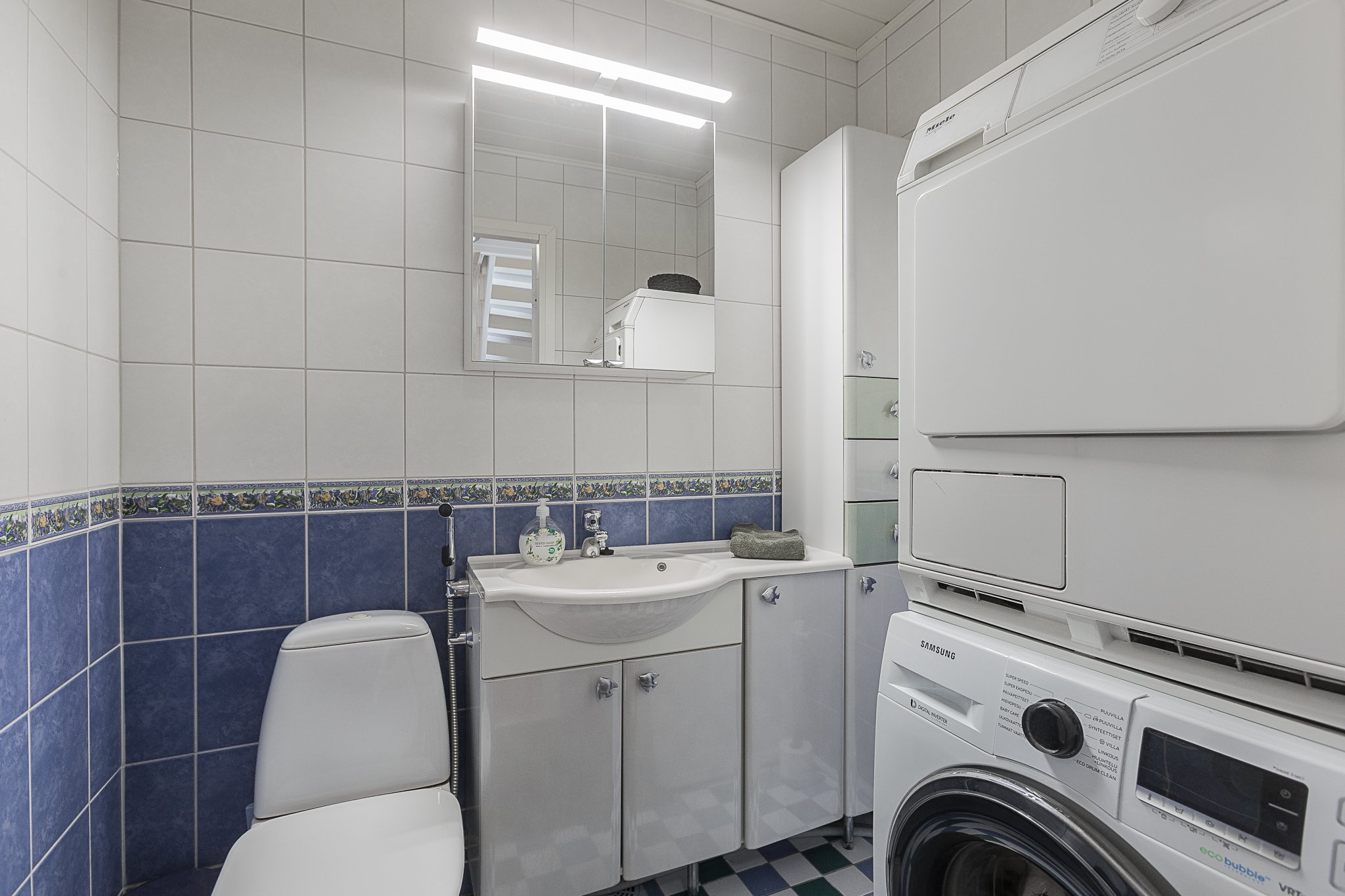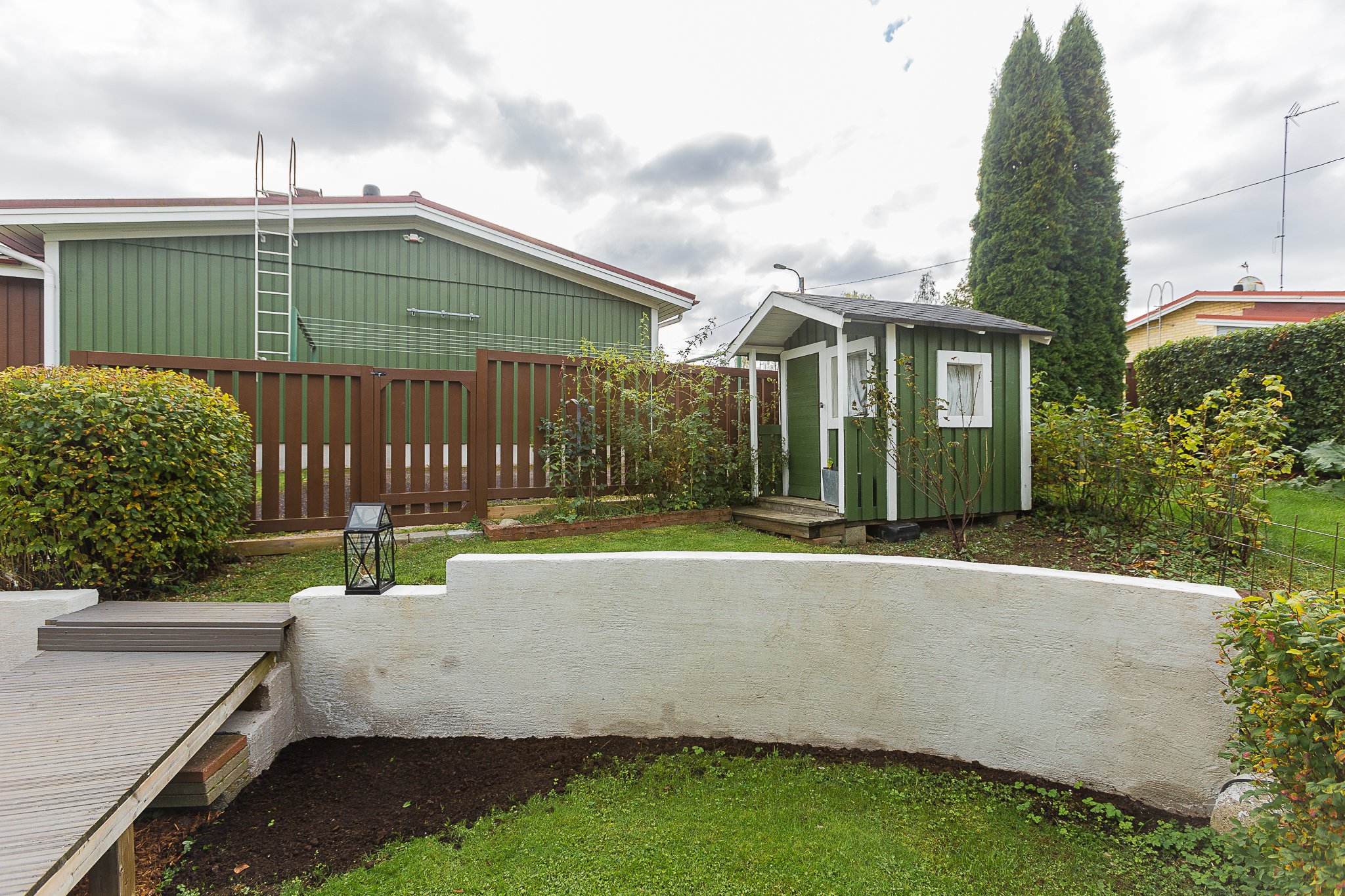 Alakerran avara ja valoisa olohuone kutsuu viihtymään, ja sen kautta on kulku aurinkoiselle takapihalle sekä katetulle terassille. Keittiöön mahtuu ruokailuryhmä, ja lisäksi alakerrasta löytyy erillinen, reilunkokoinen erillinen wc. Toisesta kerroksesta löytyvät makuuhuoneet, pesuhuone sekä sauna, jonka lauteet ja panelointi on äskettäin uusittu.