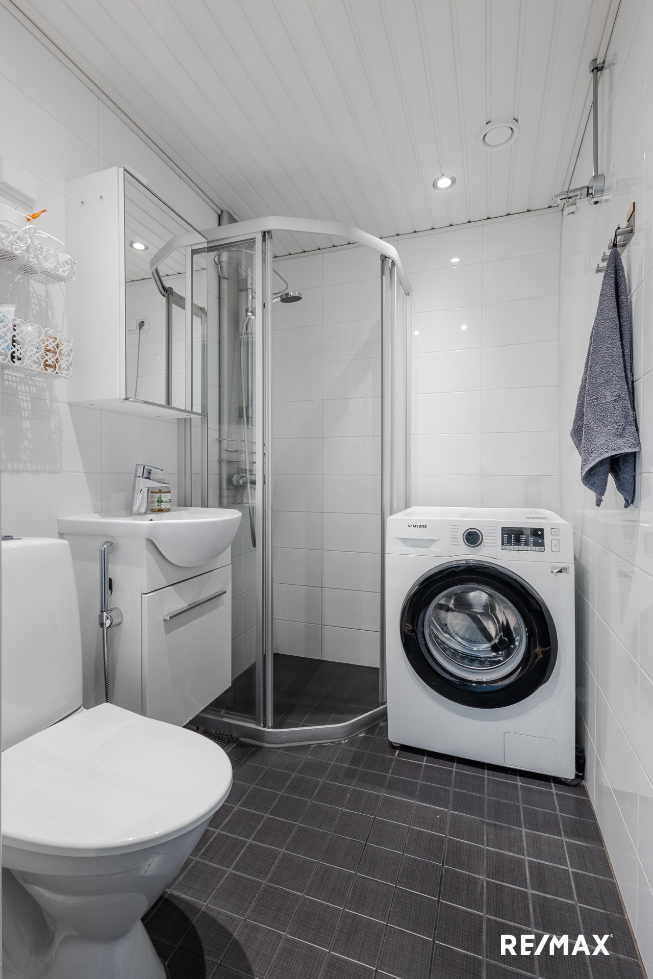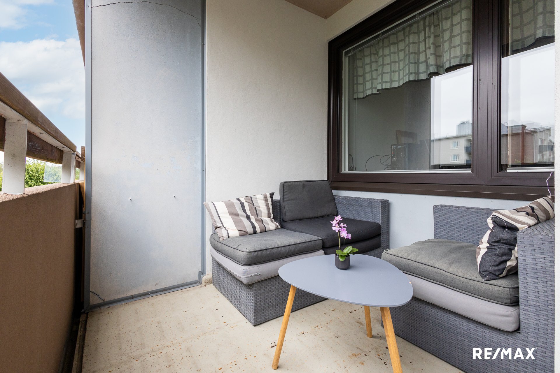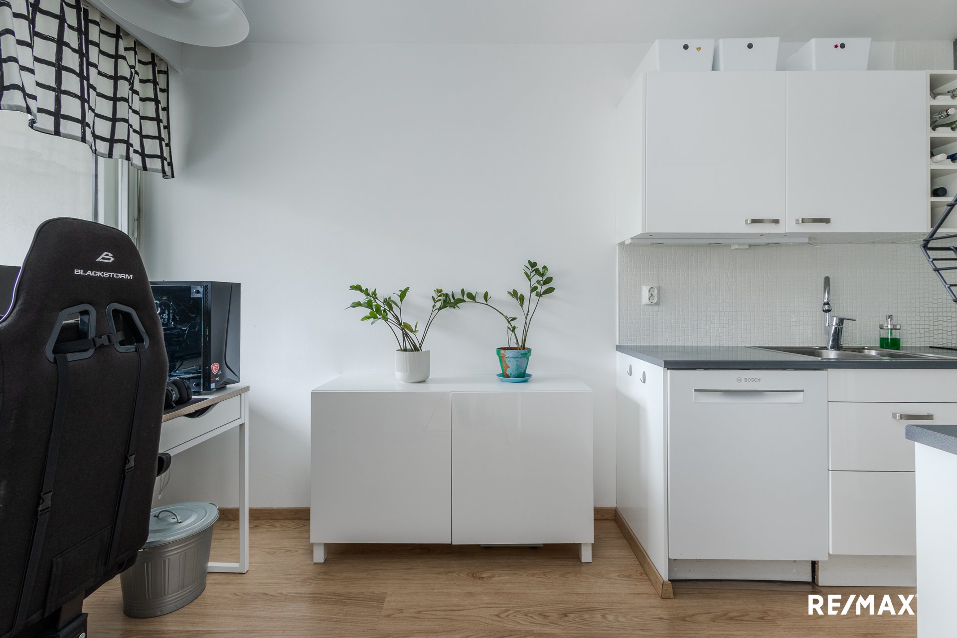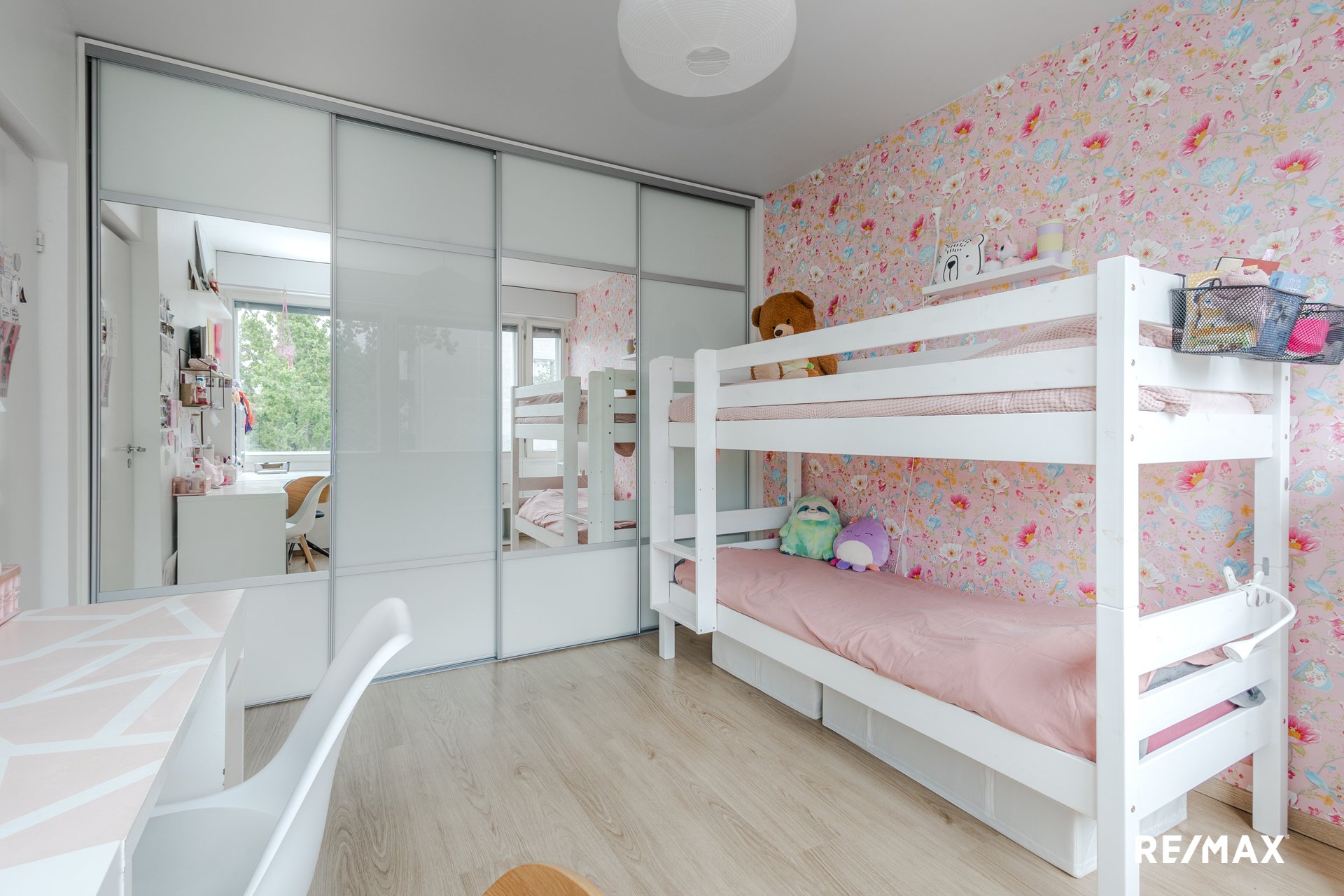 Tähän kotiin astuessa vastassa on luonnonvaloa tulviva avara olohuone. Siitä on kulku suurelle parvekkeelle, jossa on mukava nauttia iltapäivän auringosta työpäivän jälkeen. Vaaleansävyiseen keittiöön mahtuu hyvin ruokailuryhmä ja siitä on näkymä asunnon parvekkeelle. Makuuhuoneista toisessa on koko huoneen levyinen kaapisto ja säilytystilaa löytyy lisää erillisestä vaatehuoneesta.