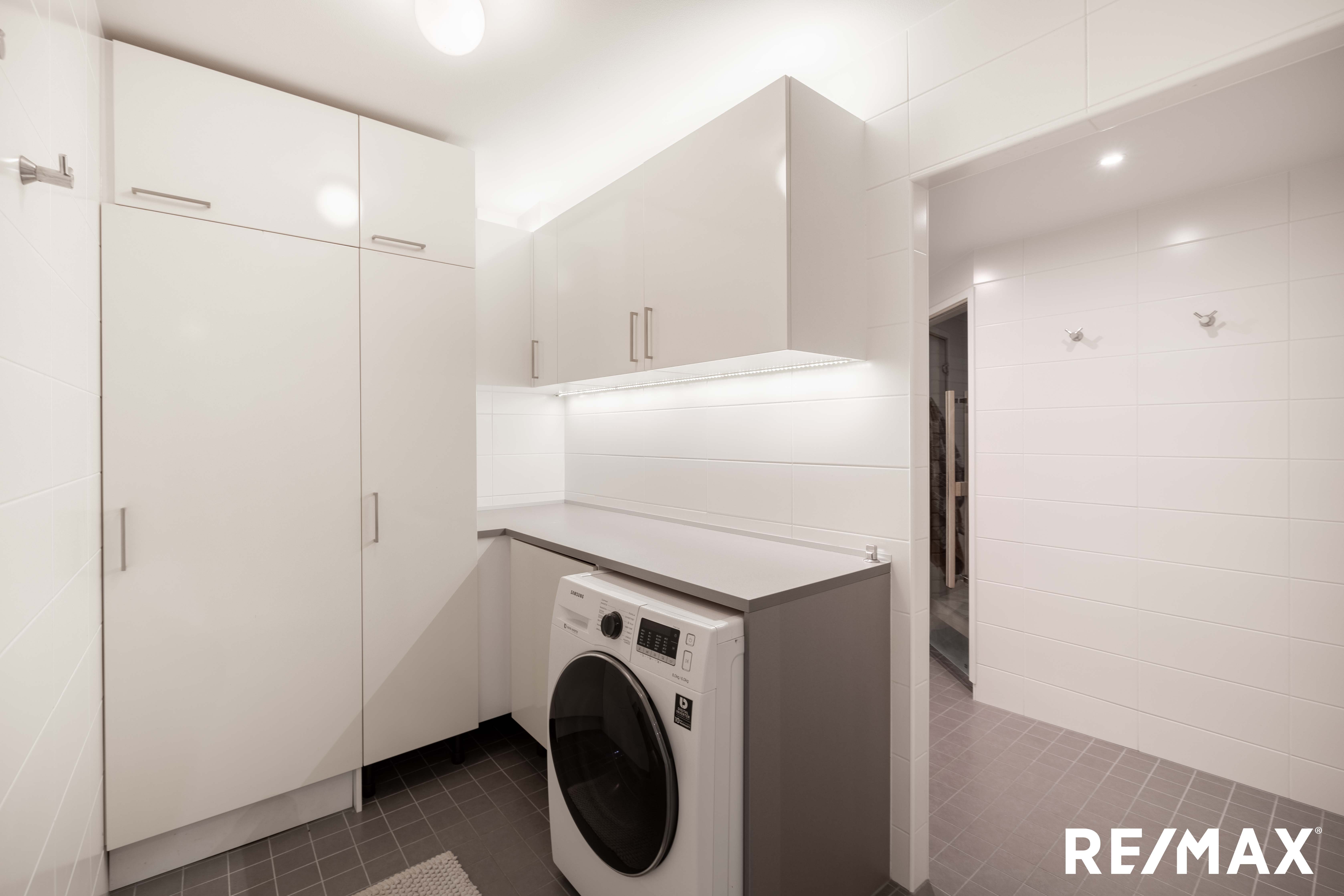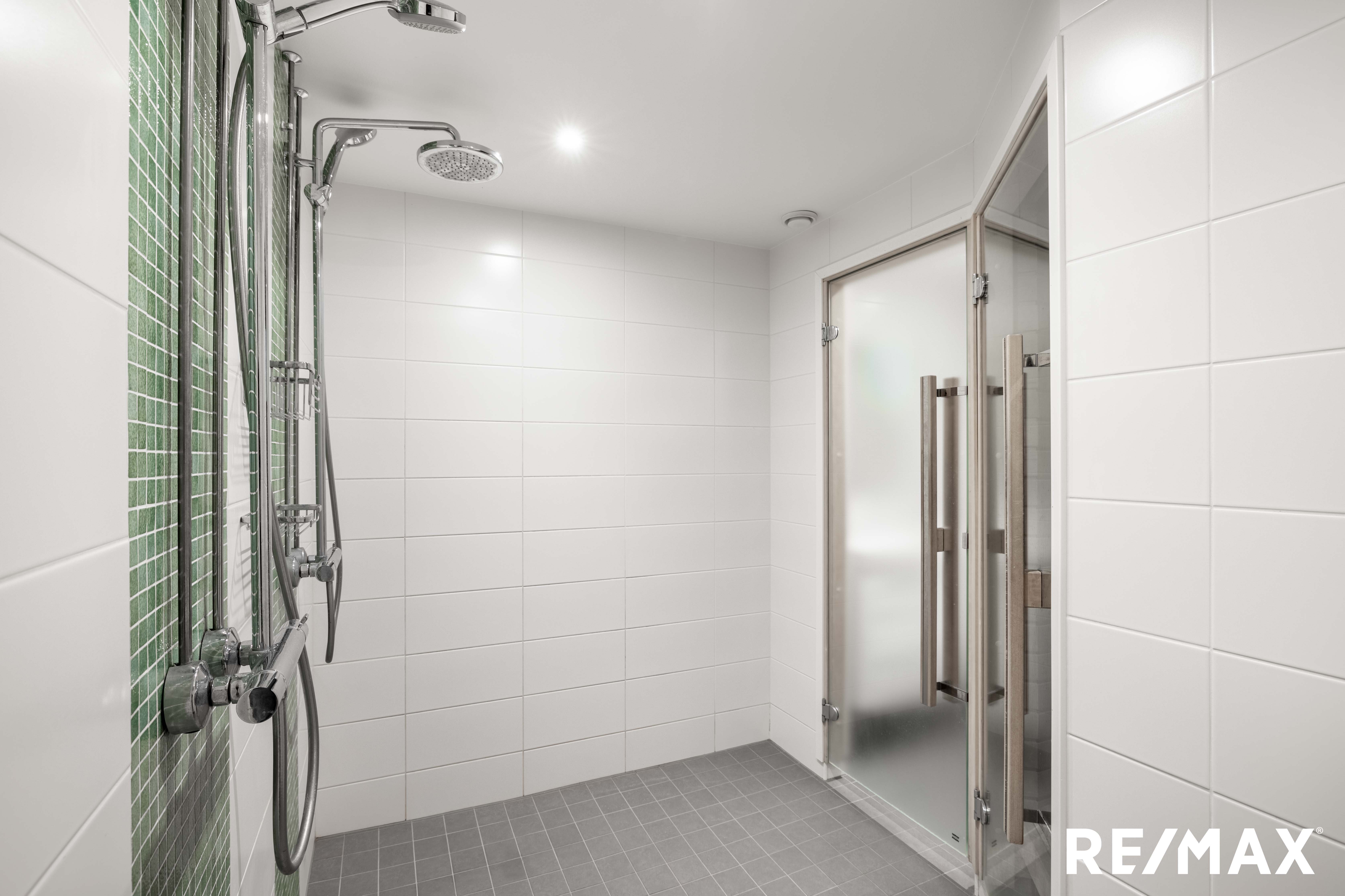 Molemmissa kerroksissa on kylpyhuone lattialämmityksellä, mikä tuo sujuvuutta ja mukavuutta aamutoimiin. Oma sauna tarjoaa rentoutumismahdollisuuden kiireisen päivän jälkeen.