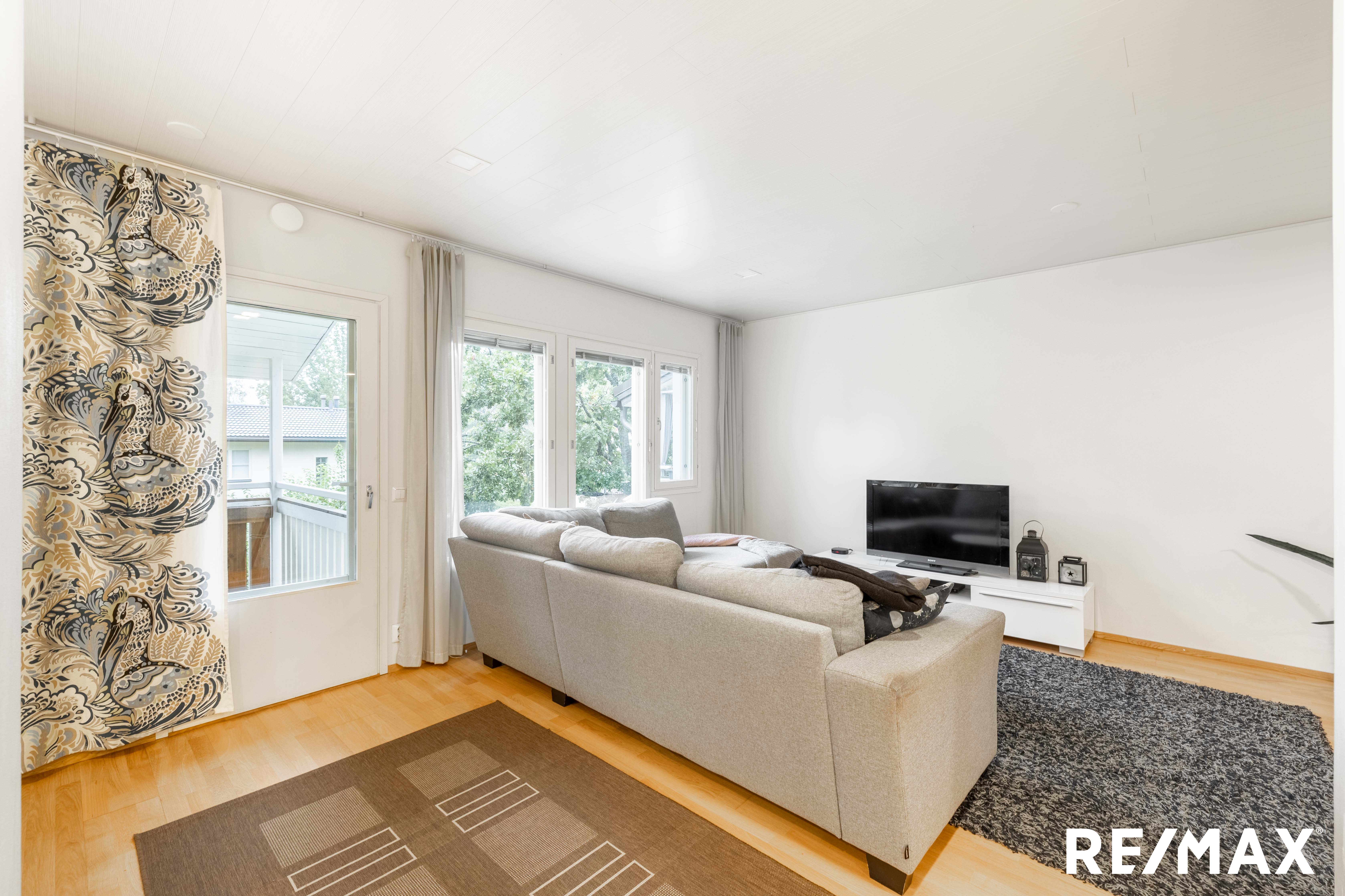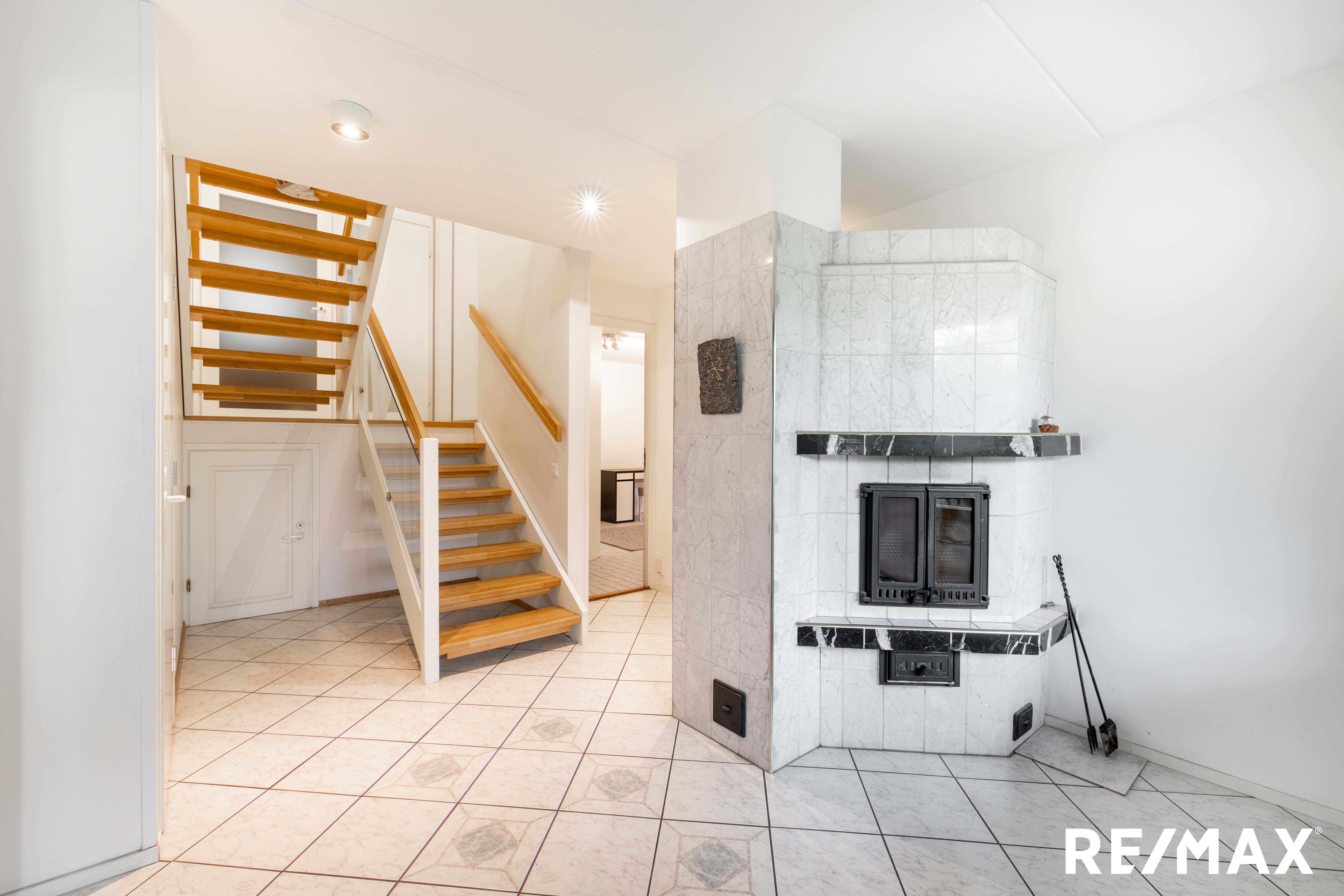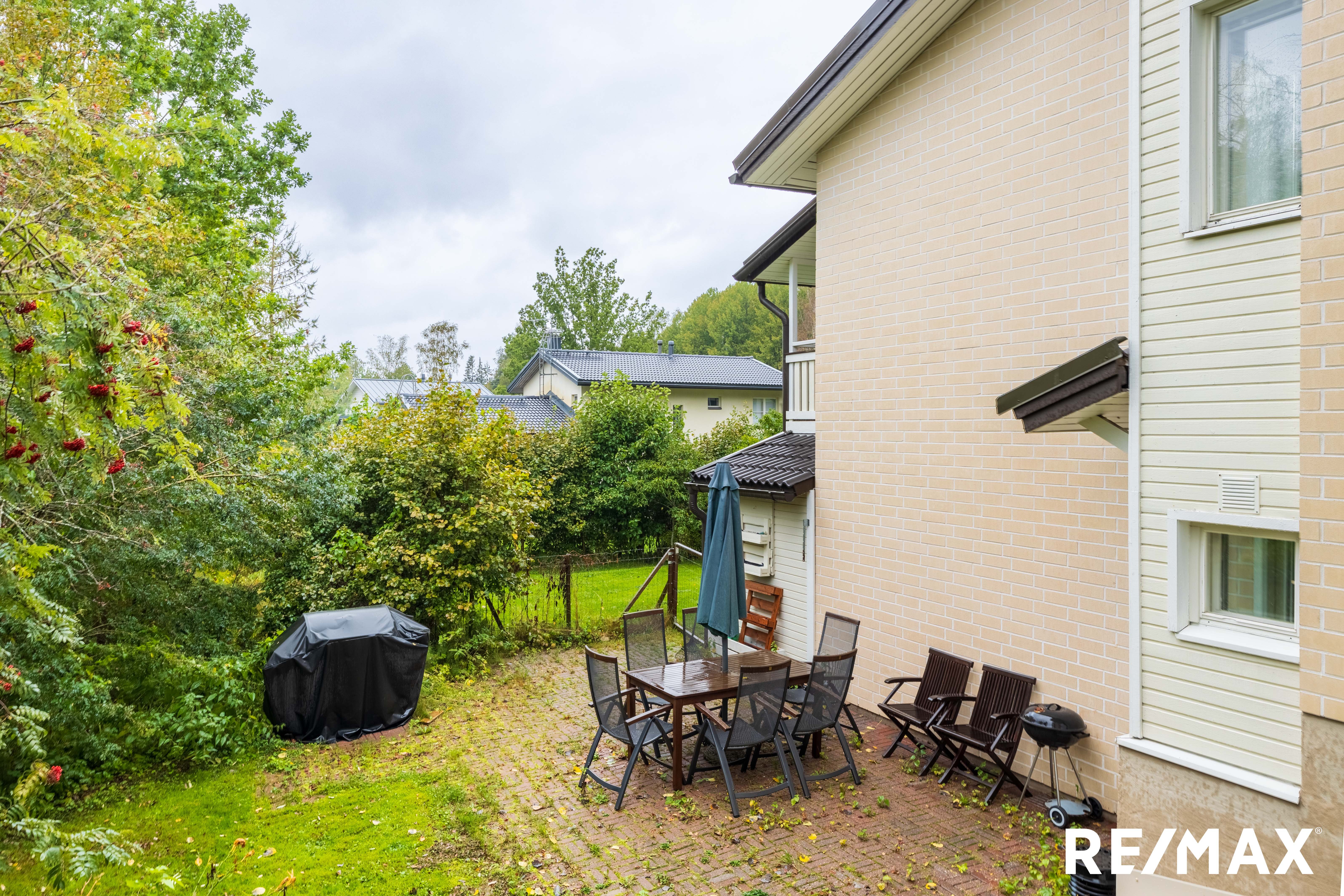 Kaksikerroksinen asunto on rakennettu vuonna 1990 ja on hyvässä kunnossa. Olohuoneesta on käynti parvekkeelle, ja tilava piha tarjoaa runsaasti mahdollisuuksia ulkoiluun ja vapaa-ajan viettoon. Alakerran sydämenä toimii lämpöä varaava takka, joka luo tunnelmaa ja lämpöä viileinä iltoina. Keittiössä on kaikki tarvittava arjen sujuvuuteen: täyskorkeat kylmälaitteet, astianpesukone ja induktioliesi.