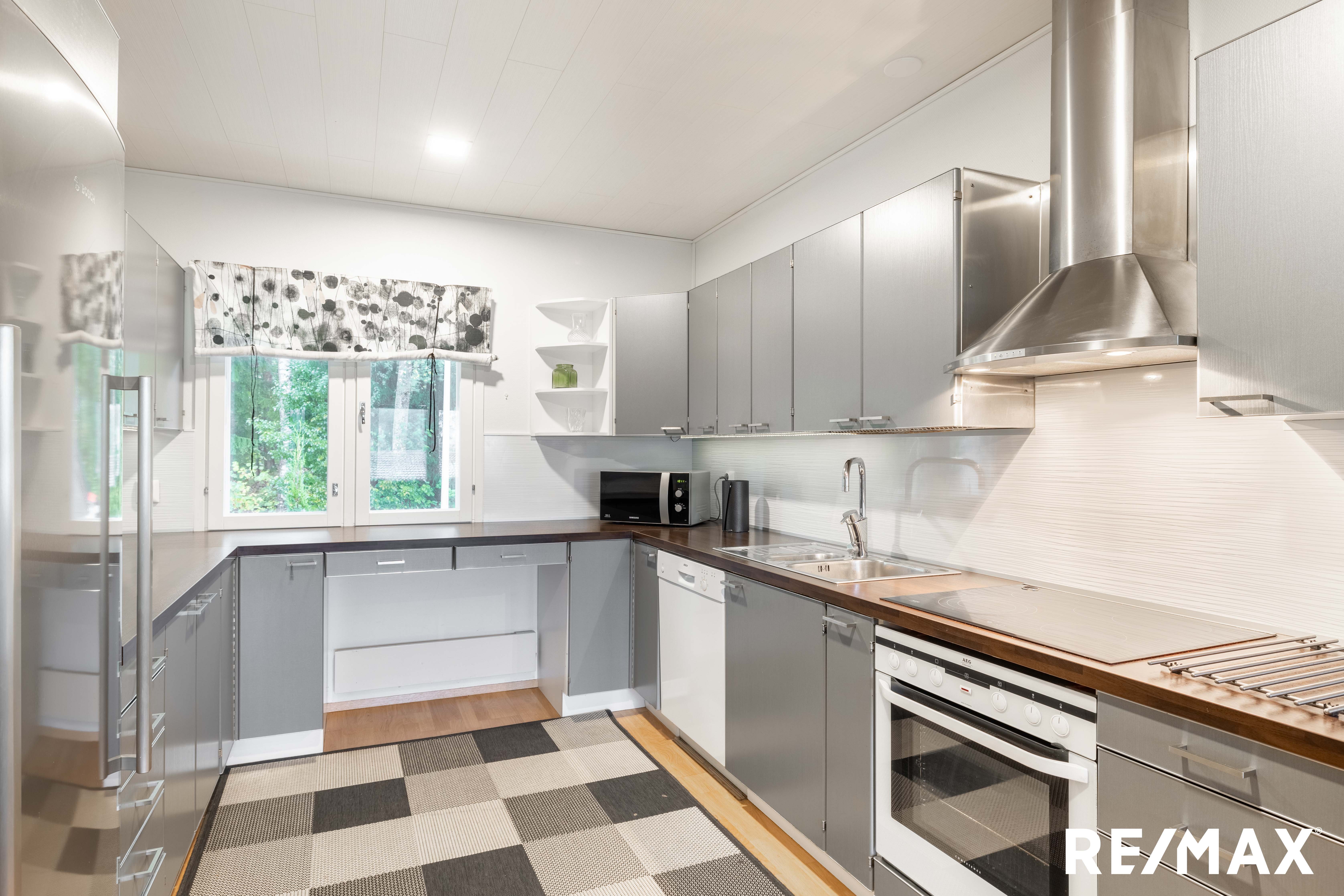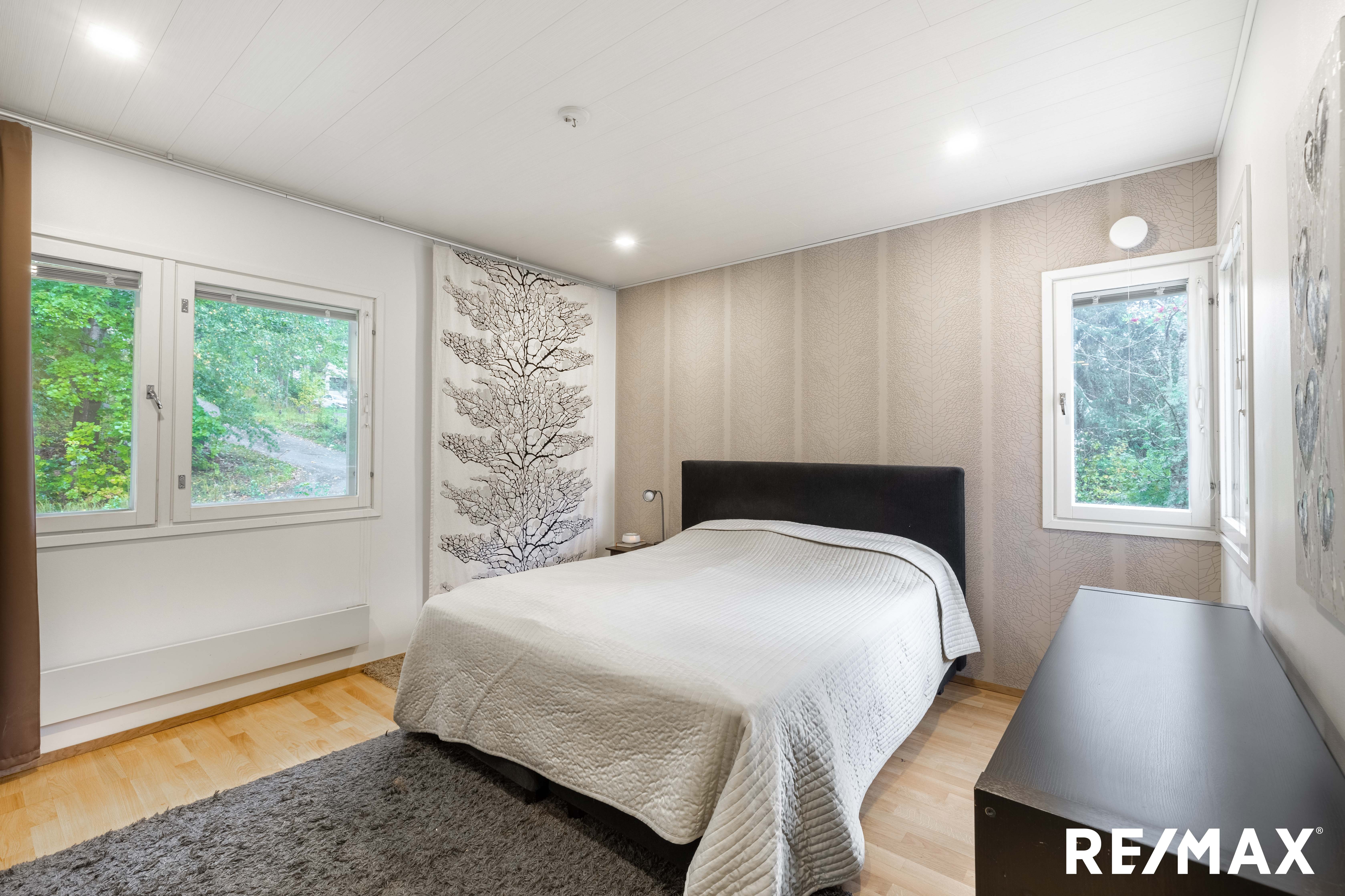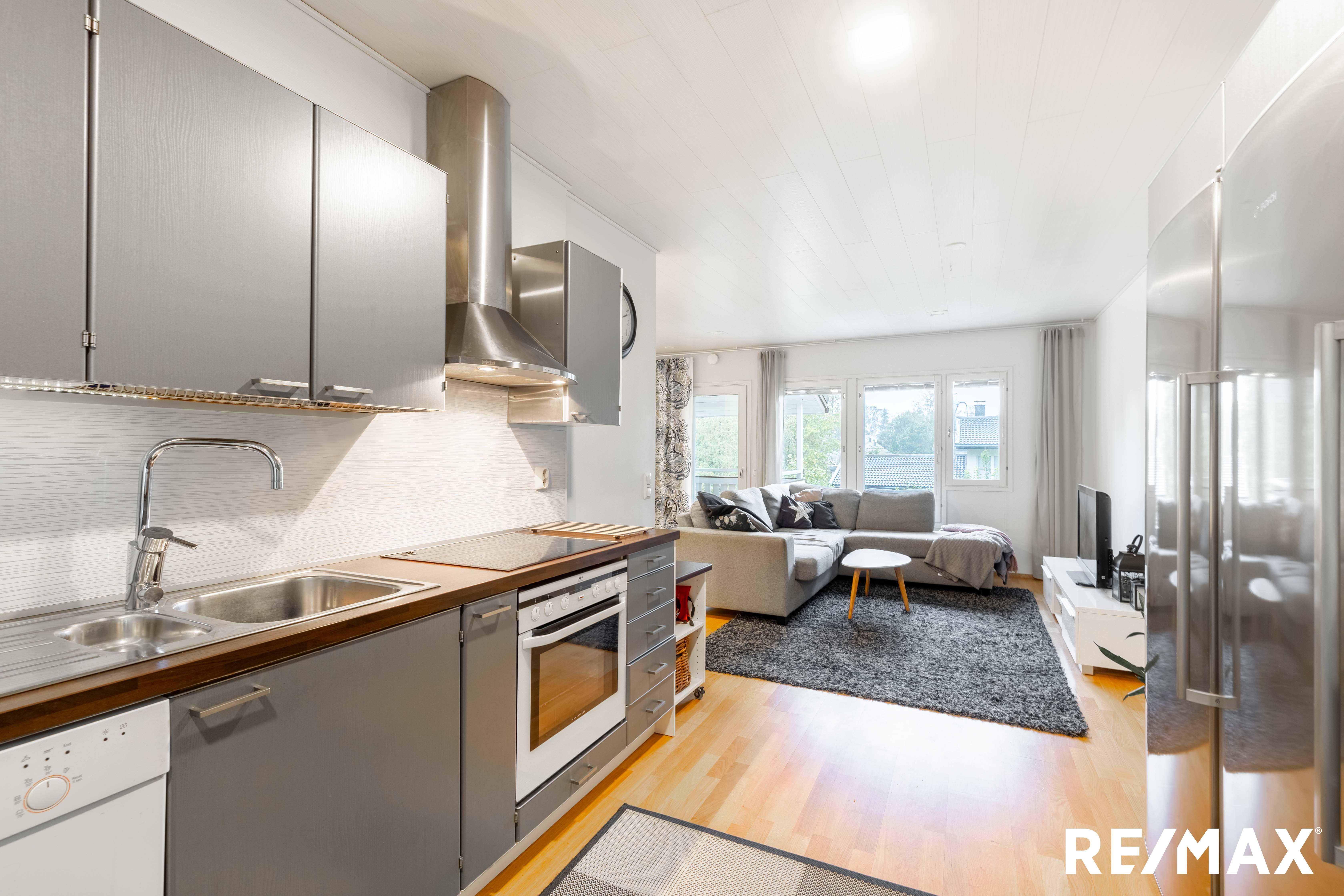 Kaksikerroksinen asunto on rakennettu vuonna 1990 ja on hyvässä kunnossa. Olohuoneesta on käynti parvekkeelle, ja tilava piha tarjoaa runsaasti mahdollisuuksia ulkoiluun ja vapaa-ajan viettoon. Alakerran sydämenä toimii lämpöä varaava takka, joka luo tunnelmaa ja lämpöä viileinä iltoina. Keittiössä on kaikki tarvittava arjen sujuvuuteen: täyskorkeat kylmälaitteet, astianpesukone ja induktioliesi.