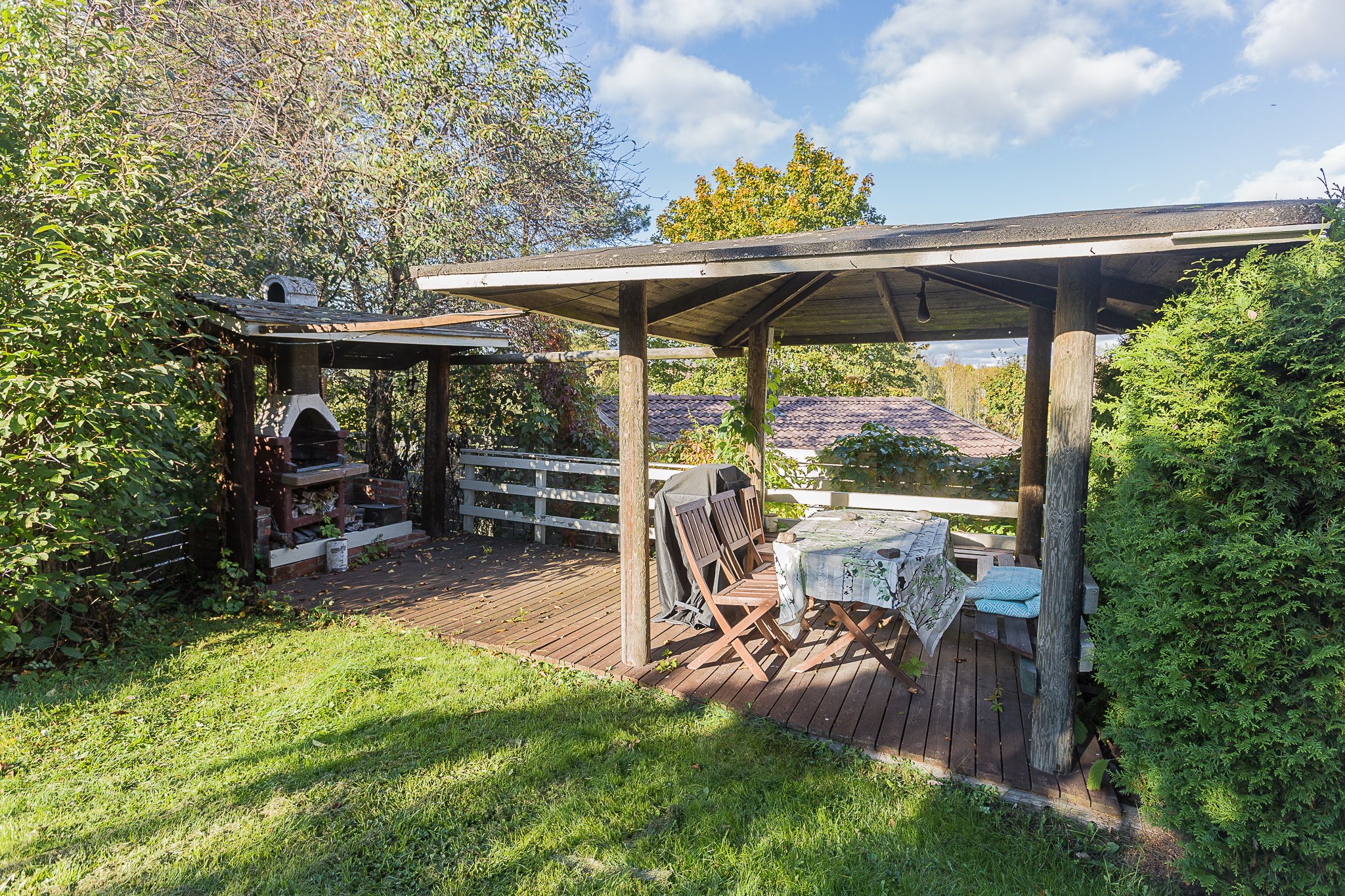 Arjen toimivuutta lisäävät vaatehuone, varaava takka, ilmalämpöpumppu, käyttöullakko, ulkovarasto, autopaikka ja autokatospaikka sekä grillikatos, joka tekee kesäpäivistä entistä viihtyisämpiä. Päätyasunnon sijainti tarjoaa lisärauhaa, valoa ja yksityisyyttä.