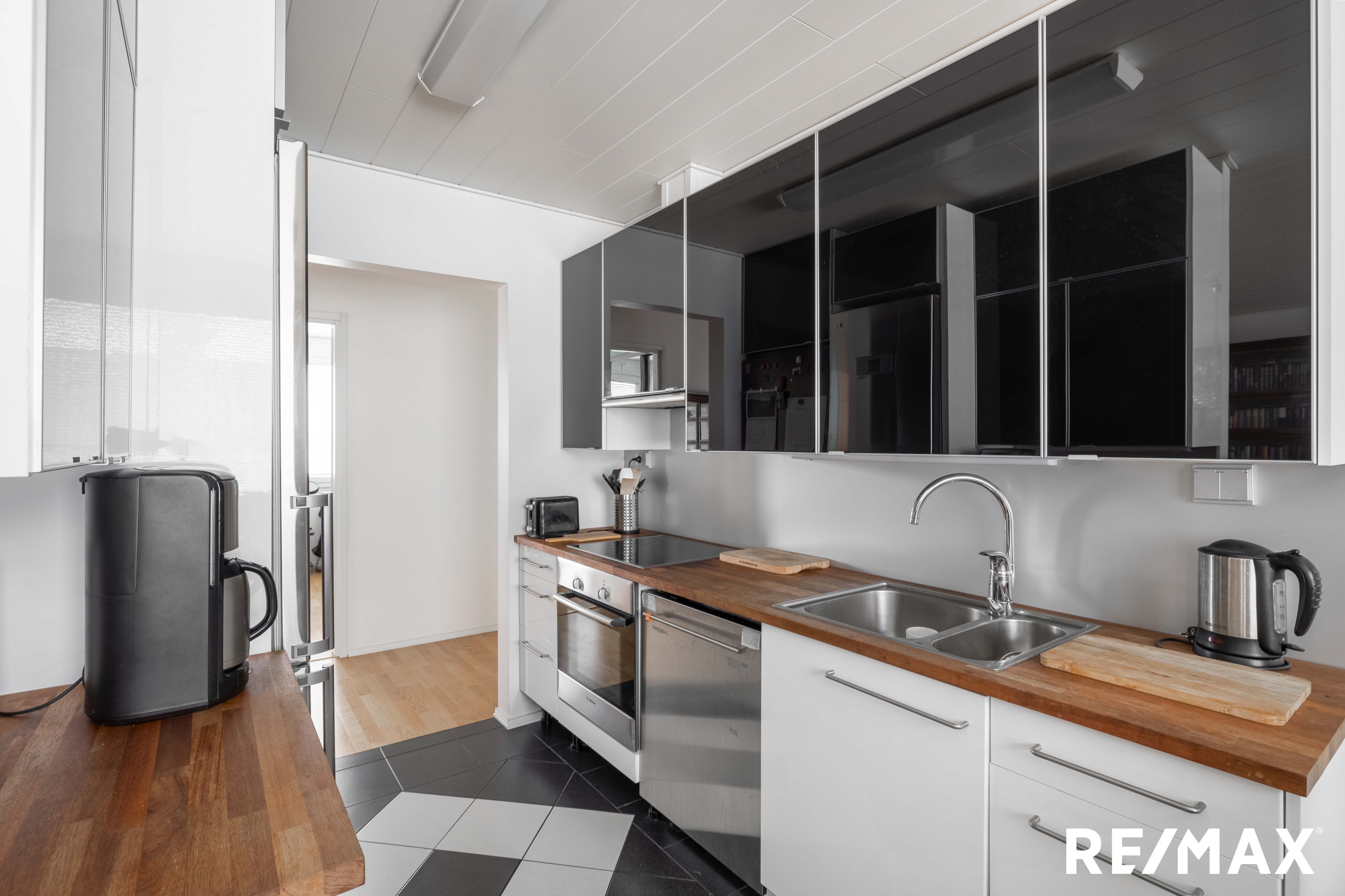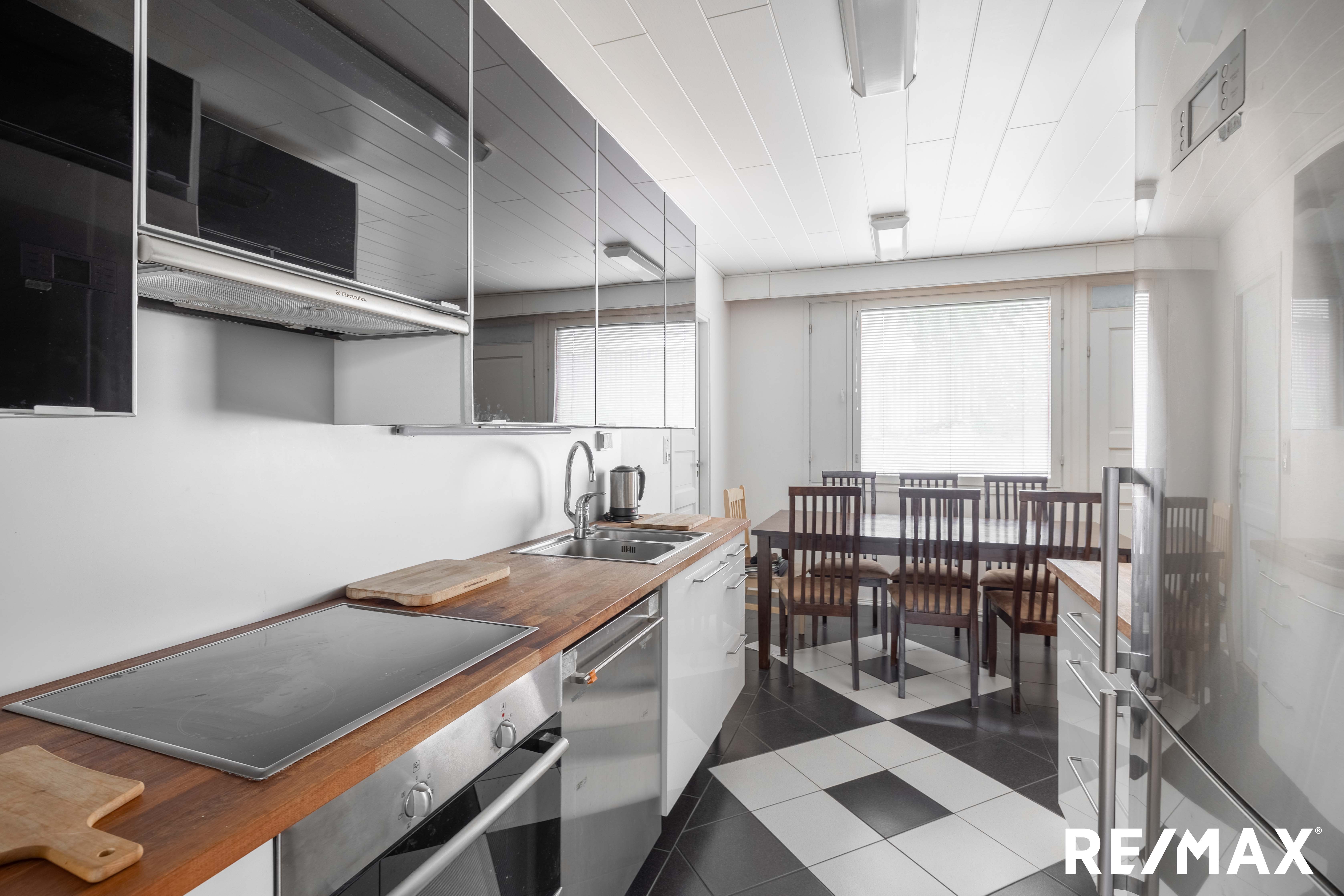 Talon sydän on lämpöä varaava takka, joka luo tunnelmaa ja lämpöä olohuoneeseen. Keittiö on remontoitu käytännölliseksi, ja sieltä löytyy kaikki tarvittavat laitteet, kuten induktioliesi ja astianpesukone. Neljä makuuhuonetta tarjoavat mukavasti tilaa perheelle tai vieraille.