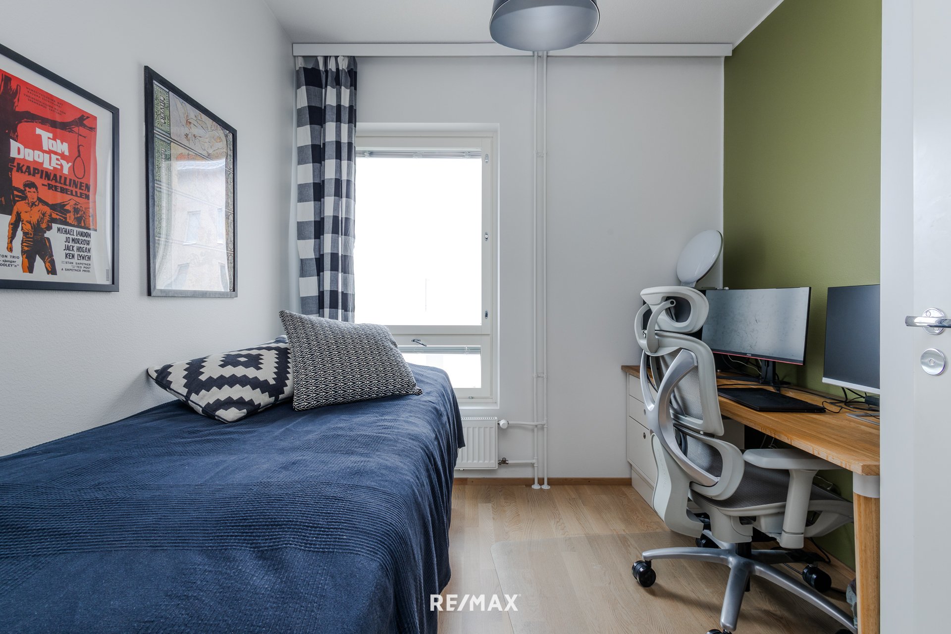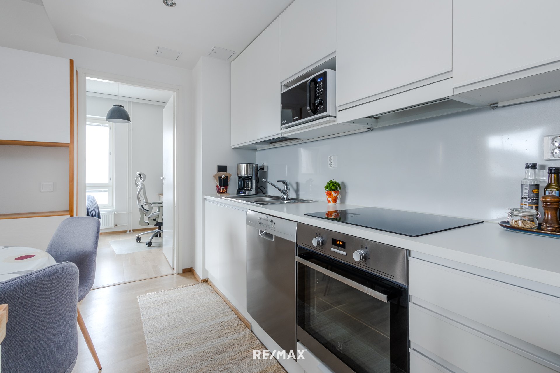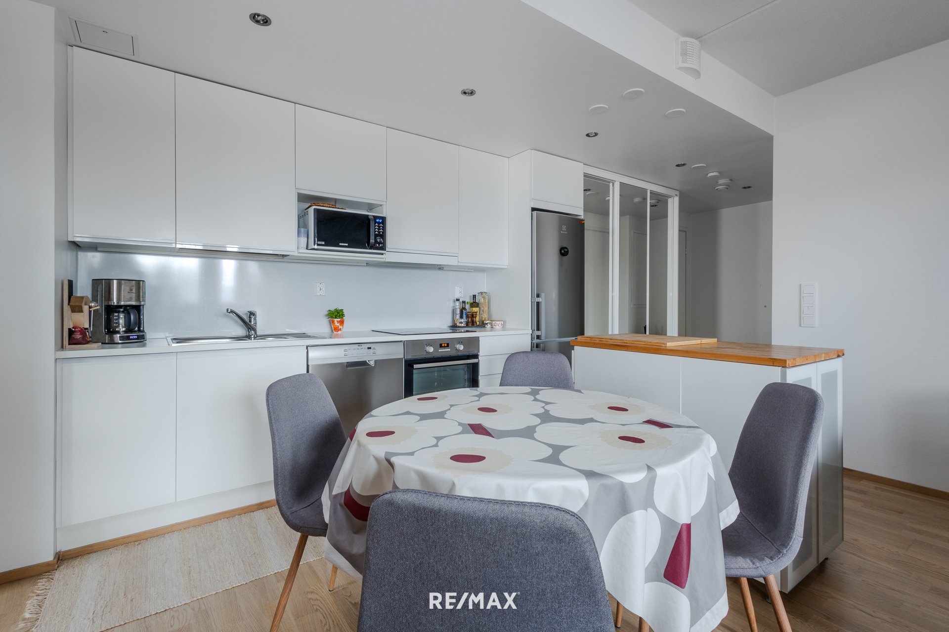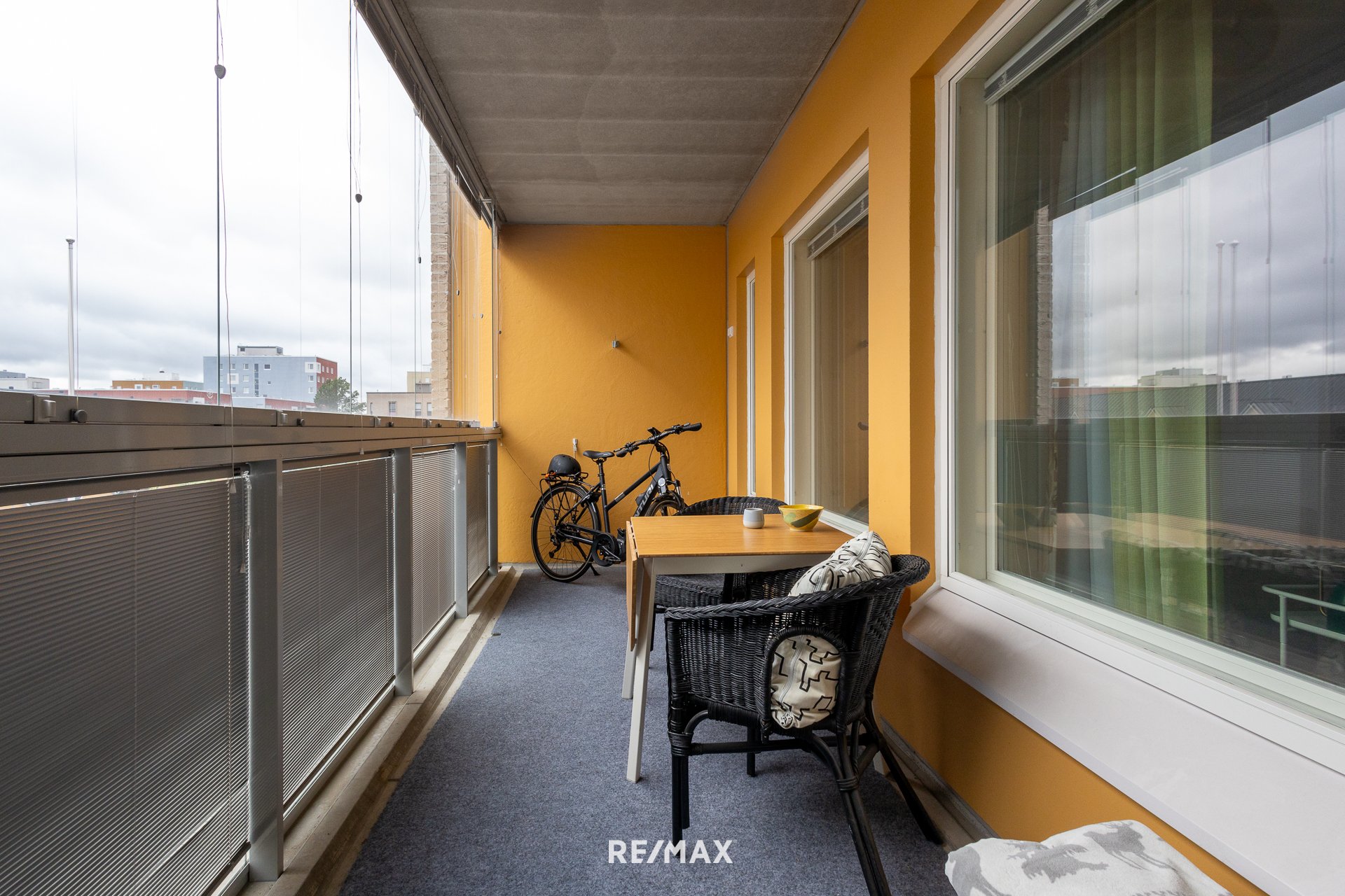 Keittiö on varustettu nykyaikaisilla kodinkoneilla ja makuuhuoneissa sekä eteisessä on runsaasti säilytystilaa vaatekaapistojen ansiosta. Olohuoneesta on käynti etelään suuntautuvalle tilavalle, lasitetulle parvekkeelle, joka tarjoaa mukavan lisätilan oleskeluun. Asunnon extralisä on alkovi, jota voi loistavasti käyttää esim. työtilana/harrastetilana. Kylpyhuoneessa on lattialämmitys, joka tuo lisämukavuutta arkeen.
