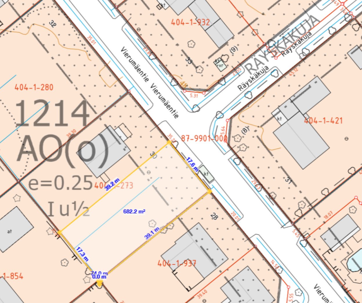 Tälle noin 682 m2 määräalalle voi rakentaa yhden asuinrakennuksen, jossa yksi asunto. Asuinrakennuksen pinta-ala voi olla 150 k-m2, jonka lisäksi taloustilaa 30 k-m2. Rakennusoikeutta varten tarvitsee tehdä poikkeuslupamenettely nykyisen noin 0,1364 ha tontin jakamiseksi kahdeksi.