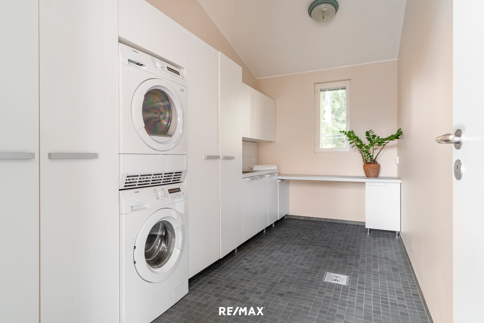 Tässä talossa arki on toimivaa muun muassa kodinhoitohuoneen ja kolmen erillisen wc:n ansiosta.