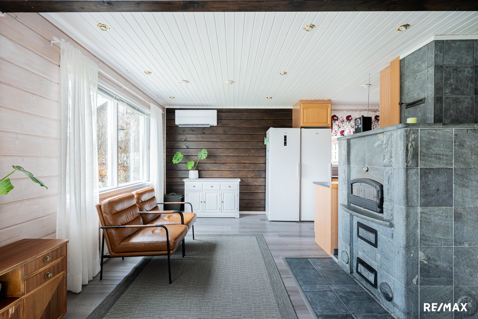Lämmityksenä on sähkölämmitys, kaksi ilmalämpöpumppua ja varaava takka leivinuunilla.