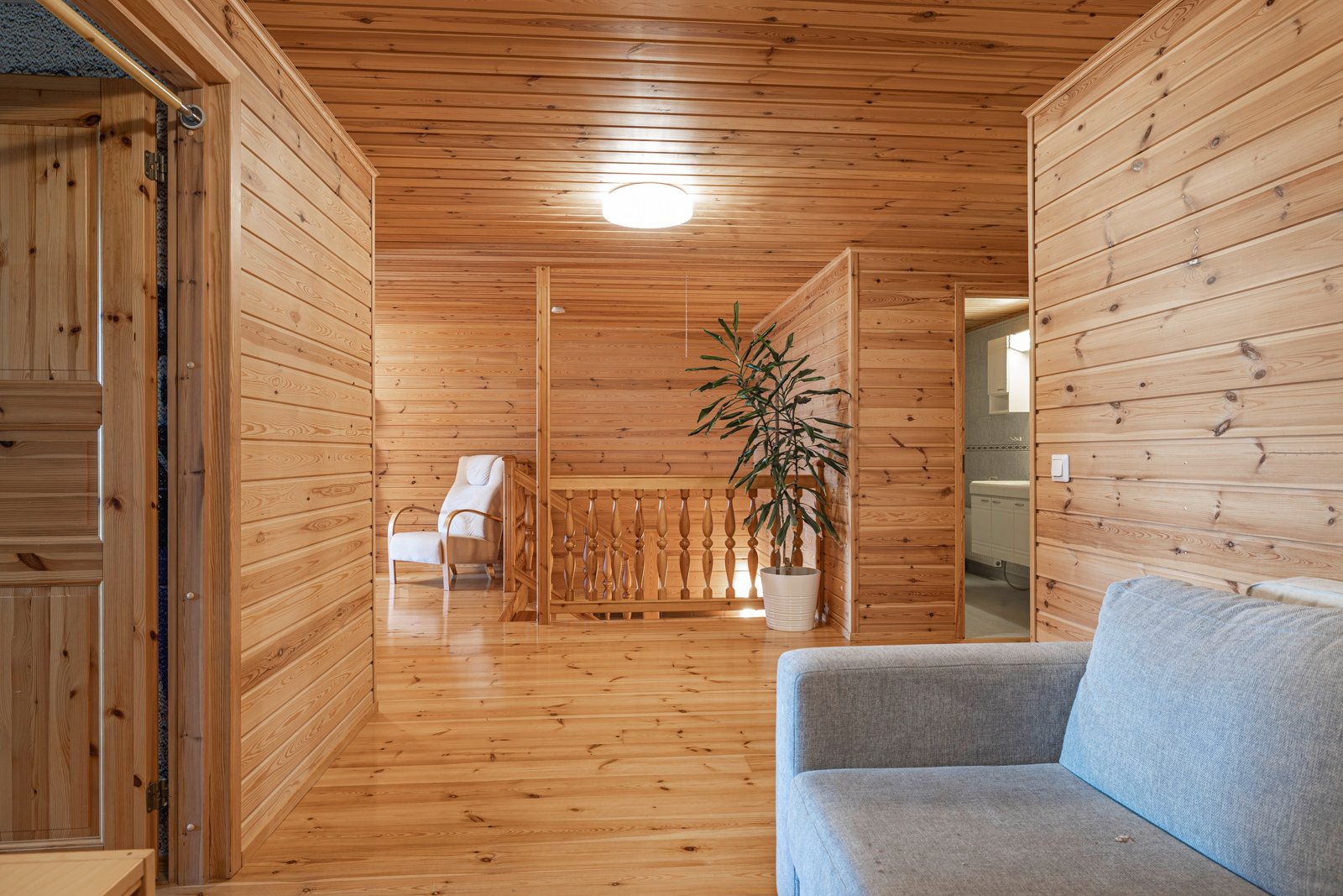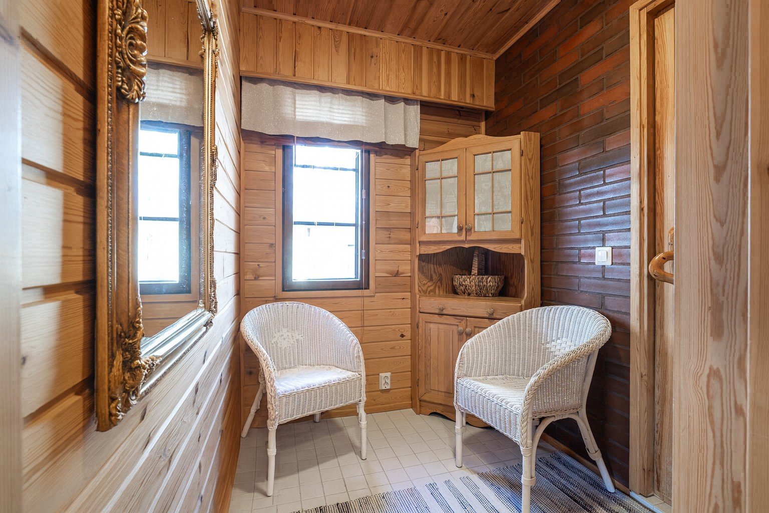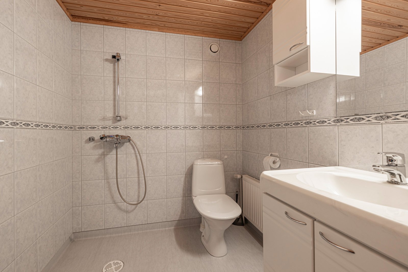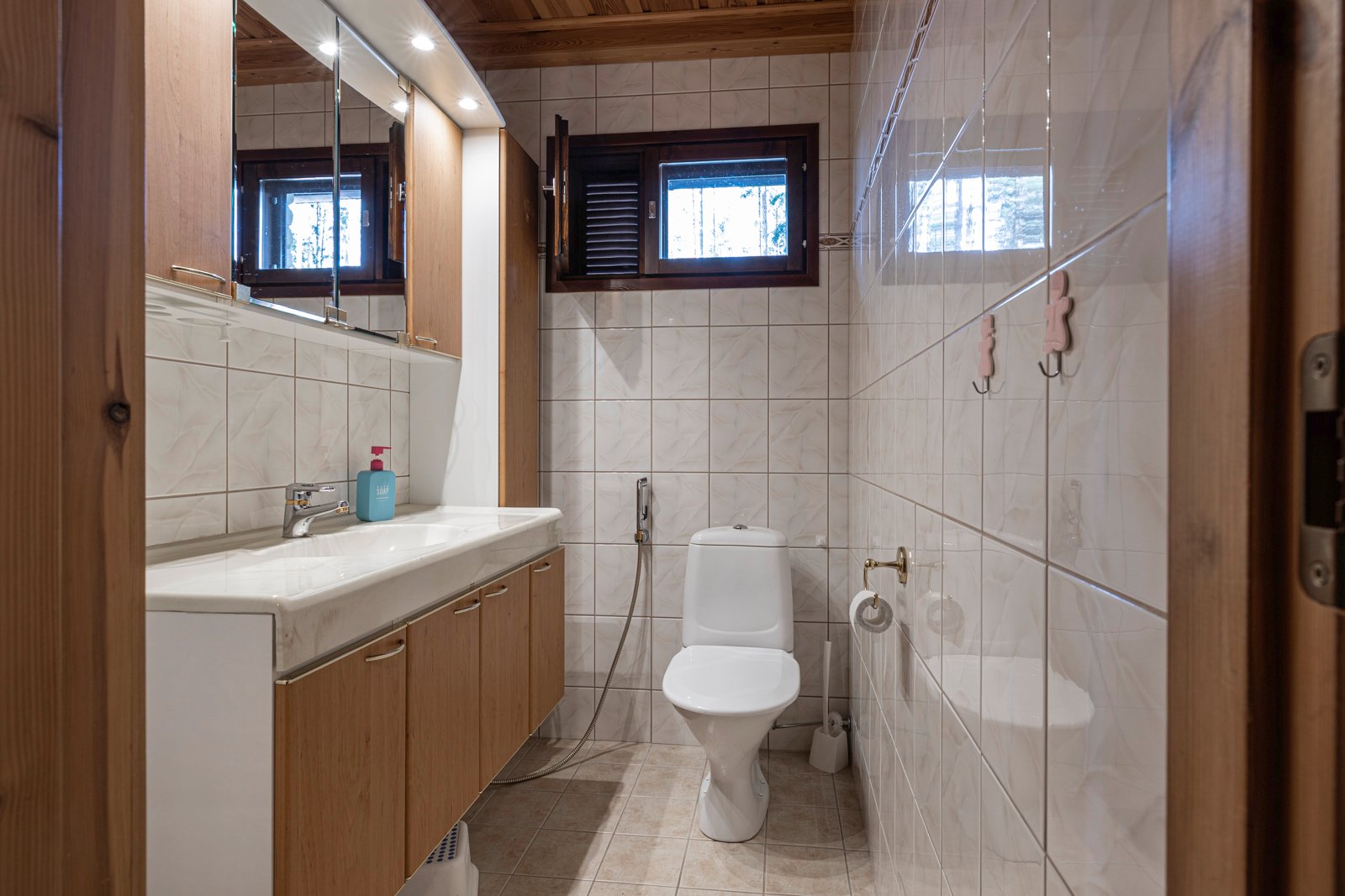 Talossa on molemmissa kerroksissa kylpyhuone sekä WC mikä tuo arkeen ihan ripauksen sujuvuutta. Sauna tarjoaa rentouttavat löylyt pitkän päivän päätteeksi. Kodinhoitohuone on tilava ja siinä on oma uloskäynti, mikä helpottaa arjen askareita.