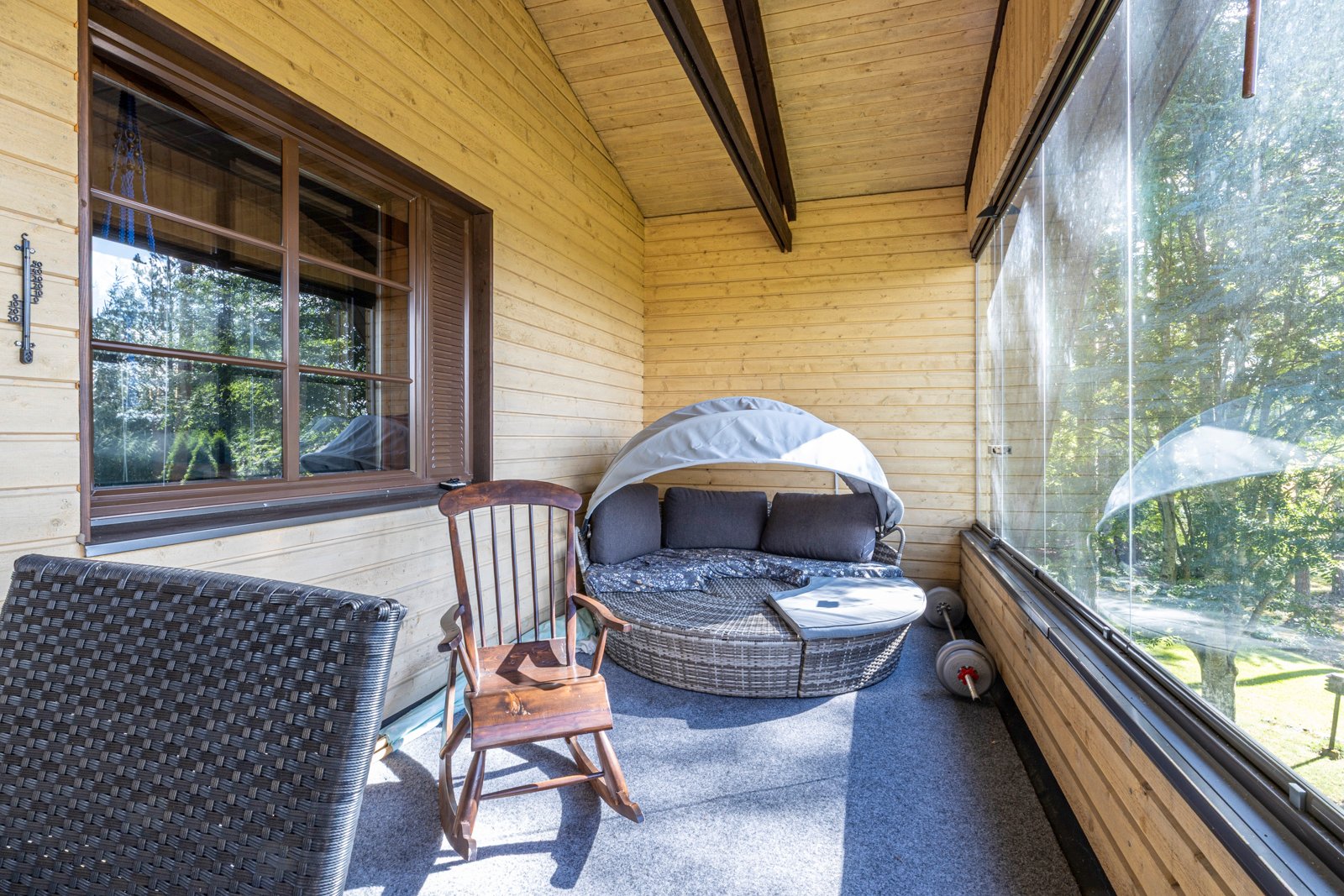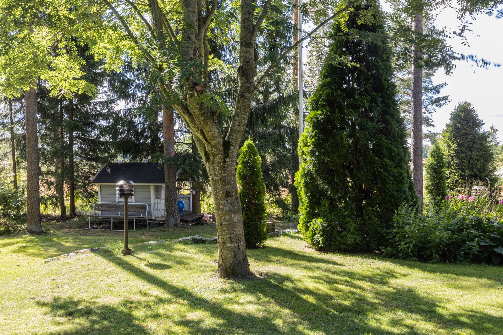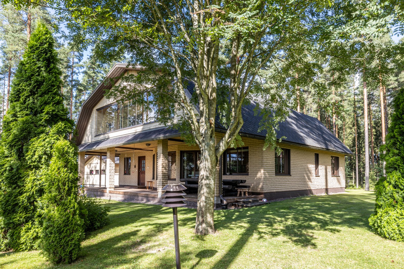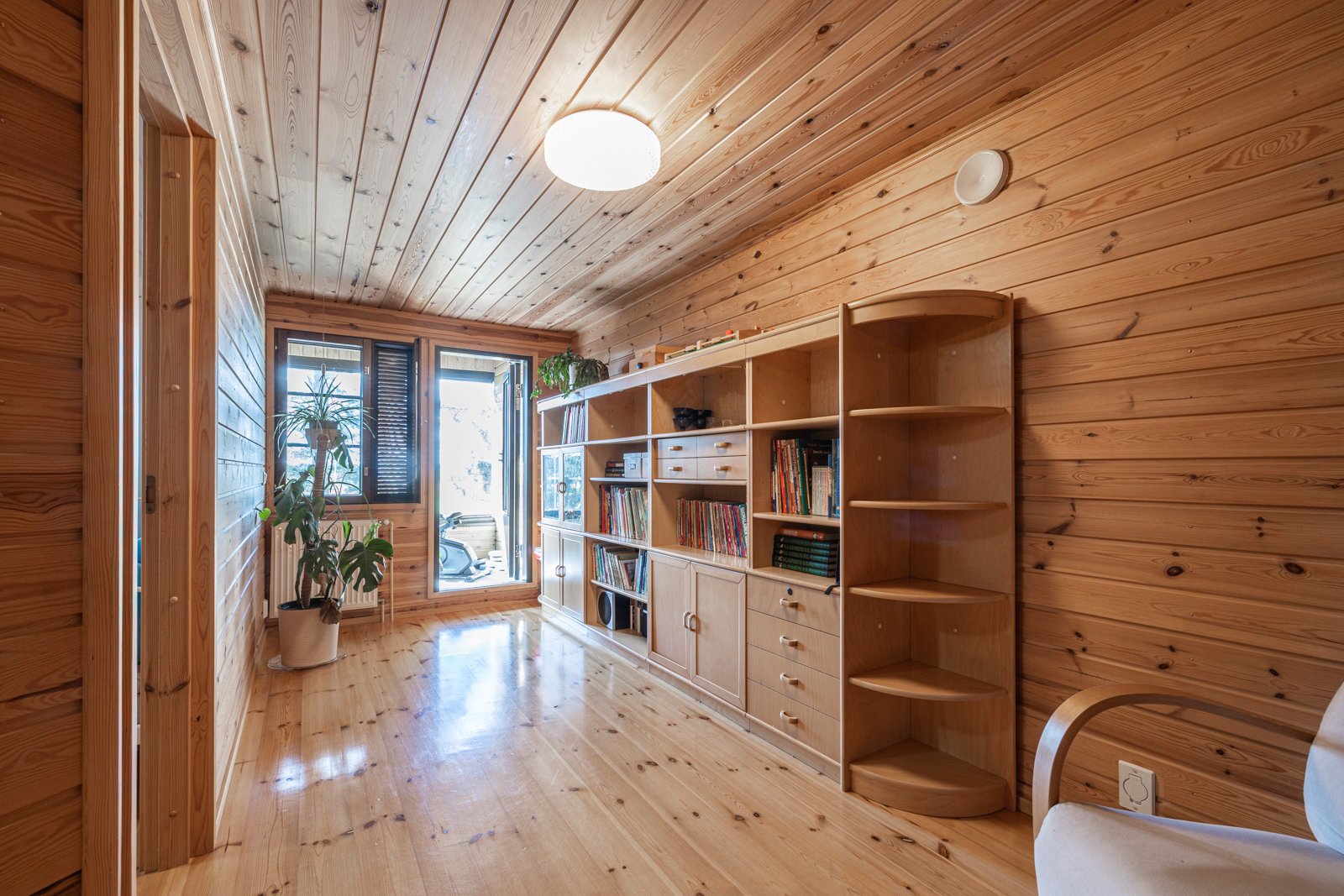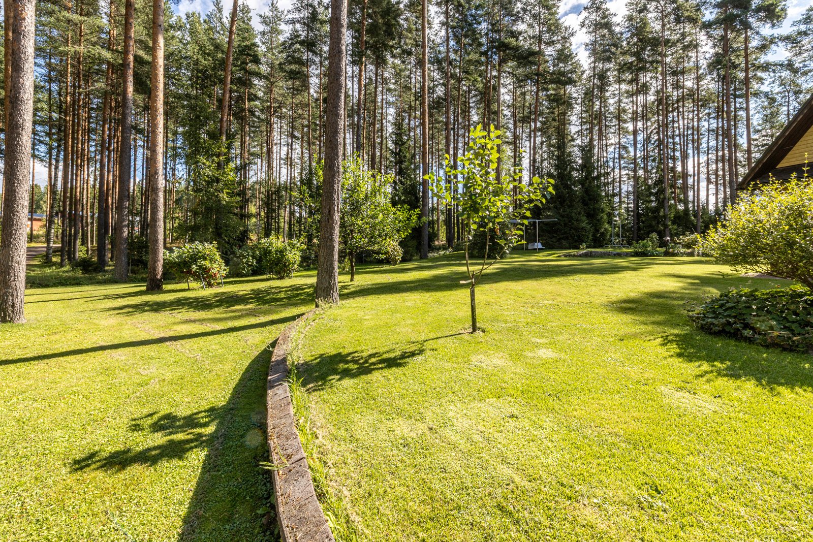 Etelään avautuva parveke tarjoaa oivan paikan nauttia auringosta ja kauniista metsämaisemista. Säilytystilaa on runsaasti, sillä talosta löytyy vaatehuone, kaapistot sekä autotalli.