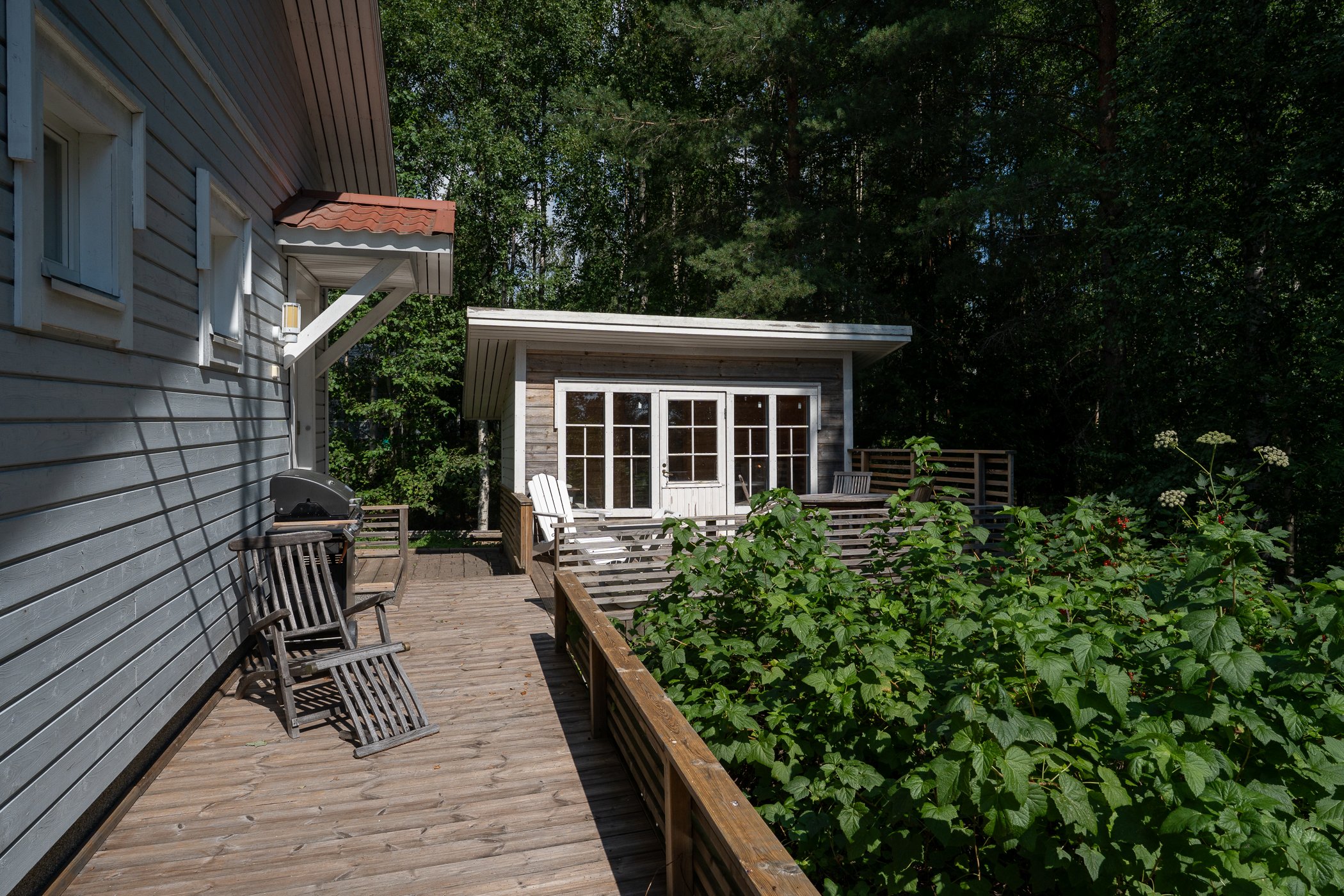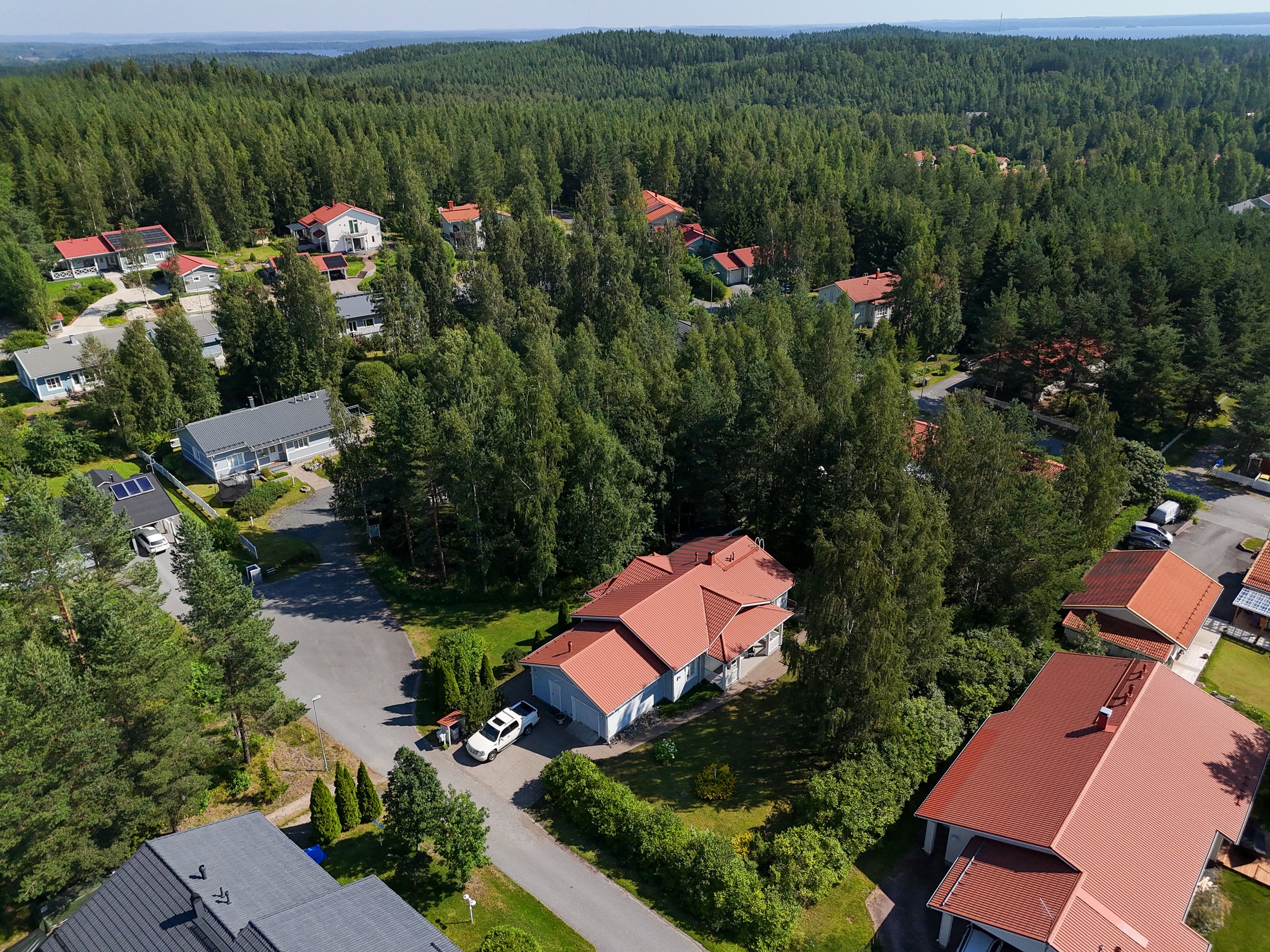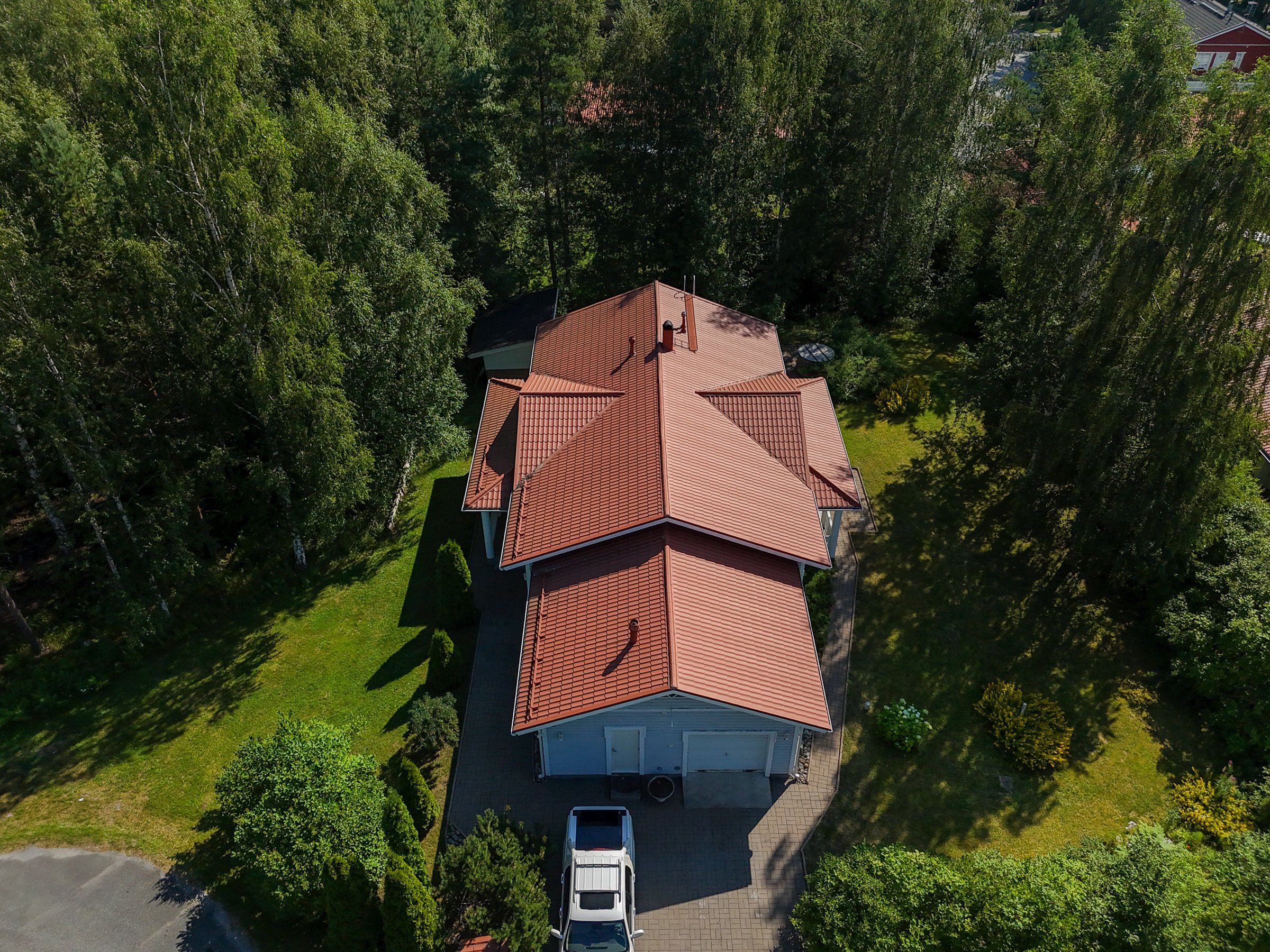 Talo on valmistunut vuonna 2005. Oma tasamaatontti on kivan kokoinen, 1113 m2, siellä on tilaa rentoutumiseen. lasten leikeille - ja vaikkapa koirallekin. Täältä löytyvät myös terassialueet, sekä huvimaja. Yhdelle autolle on paikka nosto-ovellisessa tallissa ja sen edustalla on lisätilaa.