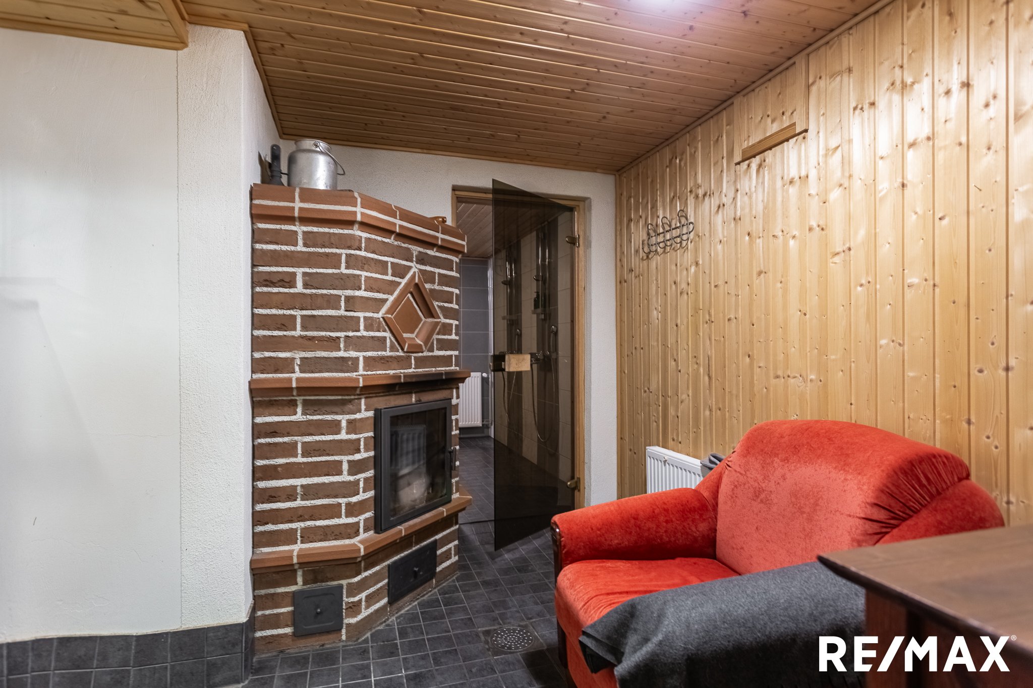 T Saunaosasto on saneerattu, ja siellä on perinteinen puukiuas, joka tarjoaa rentouttavia saunahetkiä. Kylpyhuoneessa on kaksi suihkua, mikä helpottaa arjen kiireitä.saunaosaston yhteydessä pieni takkahuone.